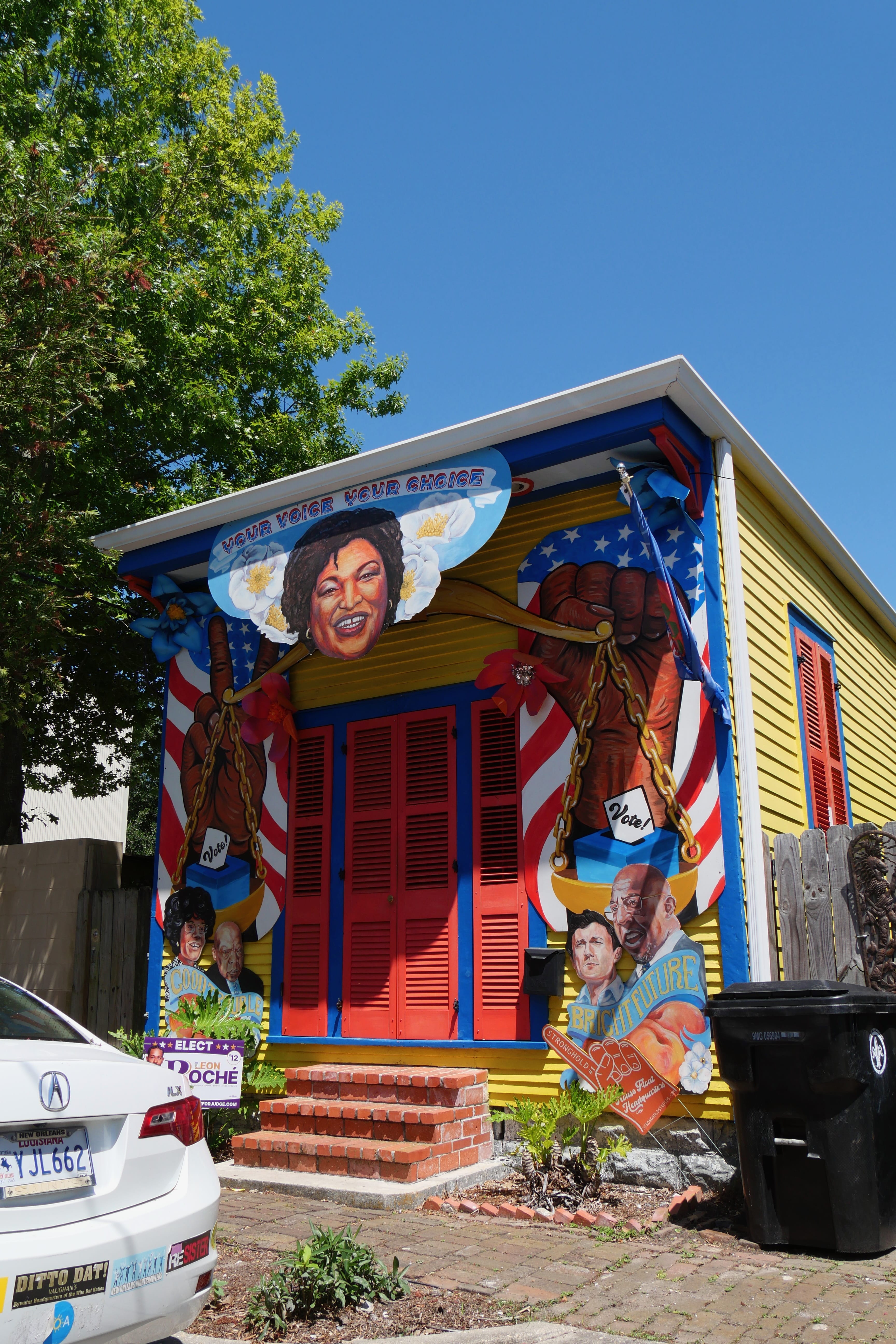 Après un nouveau déjeuner au bord du Mississippi et un autre arrêt face à la cathédrale pour écouter le groupe de la veille (partiellement modifié, au rythme des disponibilités de chacun), nous décidons de reprendre la voiture pour aller faire le tour d’autres quartiers de la ville comme Bywater et Tremé. Comme dit précédemment, nous regrettons de ne pas avoir pu faire ces visites avec un guide afin d’en apprendre plus et de mieux comprendre les tenants et les aboutissants de l’histoire d’hier et d’aujourd’hui de chacun de ces quartiers.