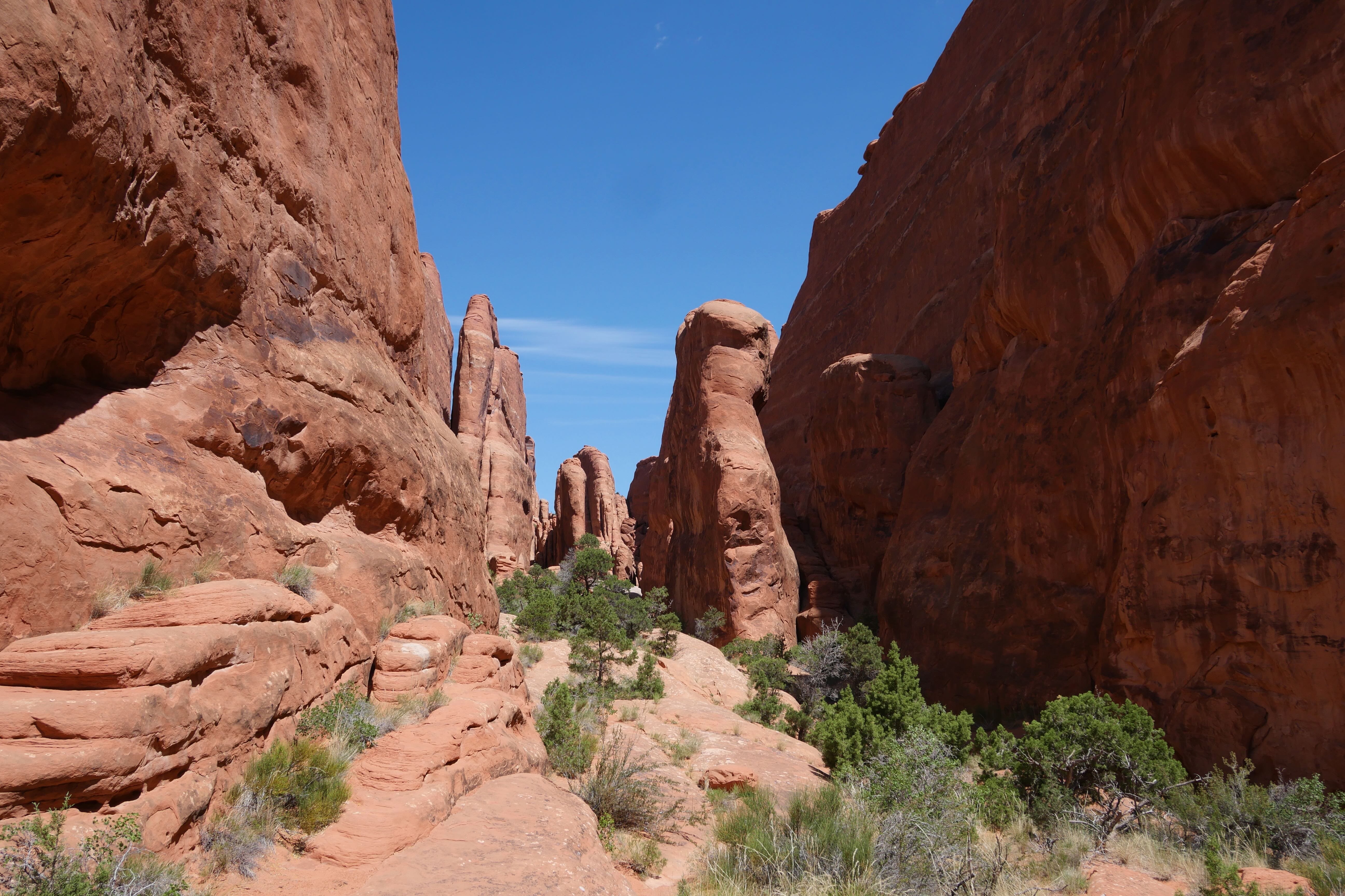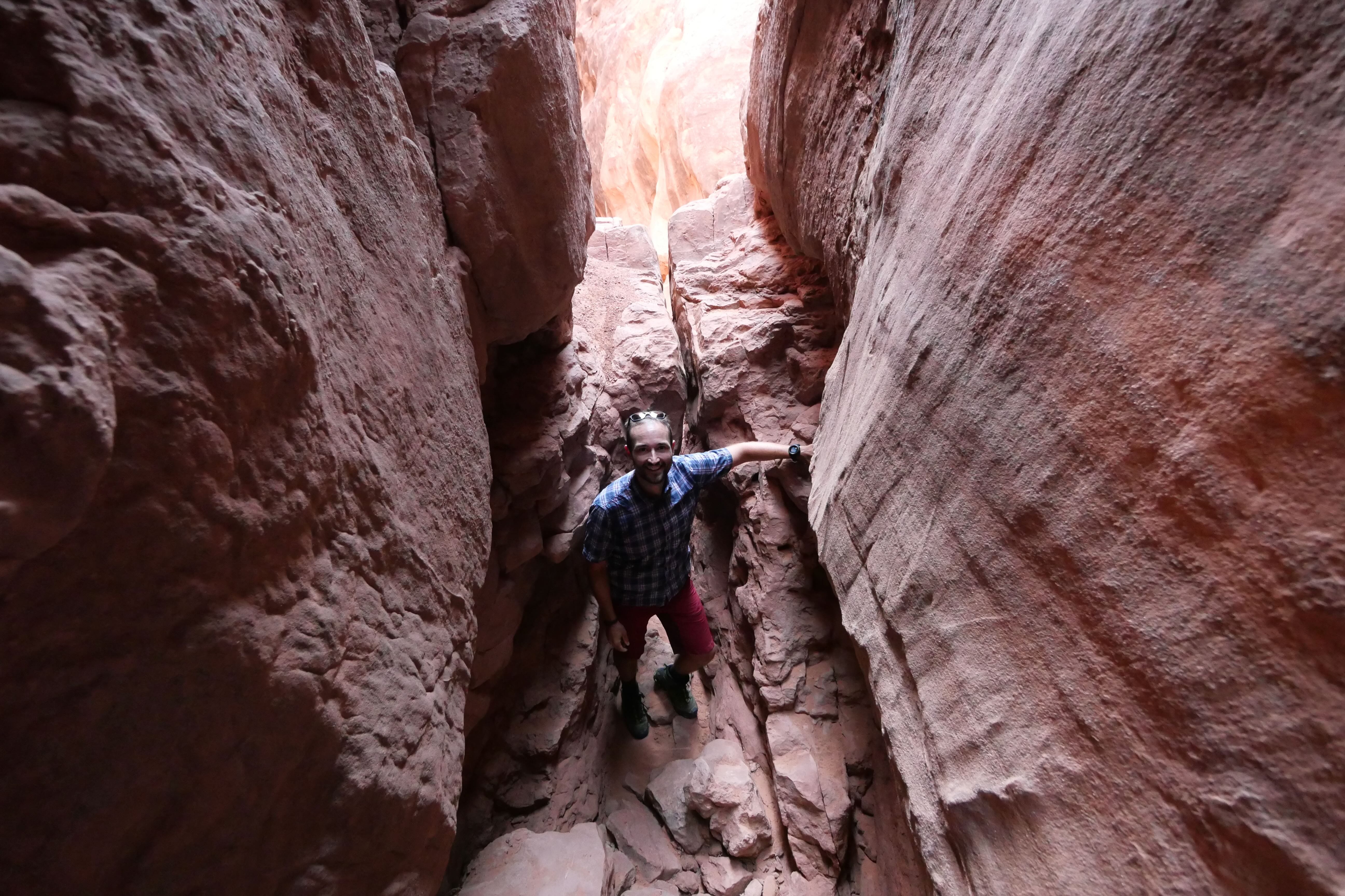 Pour Arches, nous avions réservé un Ranger Tour, celui de Fiery Furnace. Nous ne pouvons que le répéter mais rien ne vaut plus qu’une visite guidée, surtout dans des endroits comme ceux-là. Comprendre ce que l’on voit, être impliqué dans la découverte, et réfléchir à la nature qui nous entoure apporte énormément plus que de juste passer de point en point, prendre quelques clichés, et repartir. Bien évidemment, ce n’est pas possible partout, mais lorsque des occasions d’avoir une explication se présentent, nous essayons de les saisir. Ici, le tour d’environ 2h nous a autant permis de descendre dans la Fiery Furnace, passant par des passages étroits, quelques points techniques à « escalader » ou enjamber, que de faire la connaissance d’un groupe d’horizons divers, et d’échanger avec eux sur des thématiques en lien avec l’observation de la nature, de la préservation de l’environnement, et l’expérience personnelle de chacun. Nous en ressortirons avec beaucoup de positif, prêts à poursuivre notre découverte plus linéaire du reste du parc. Pour réserver, ça se passe sur recreation.gov