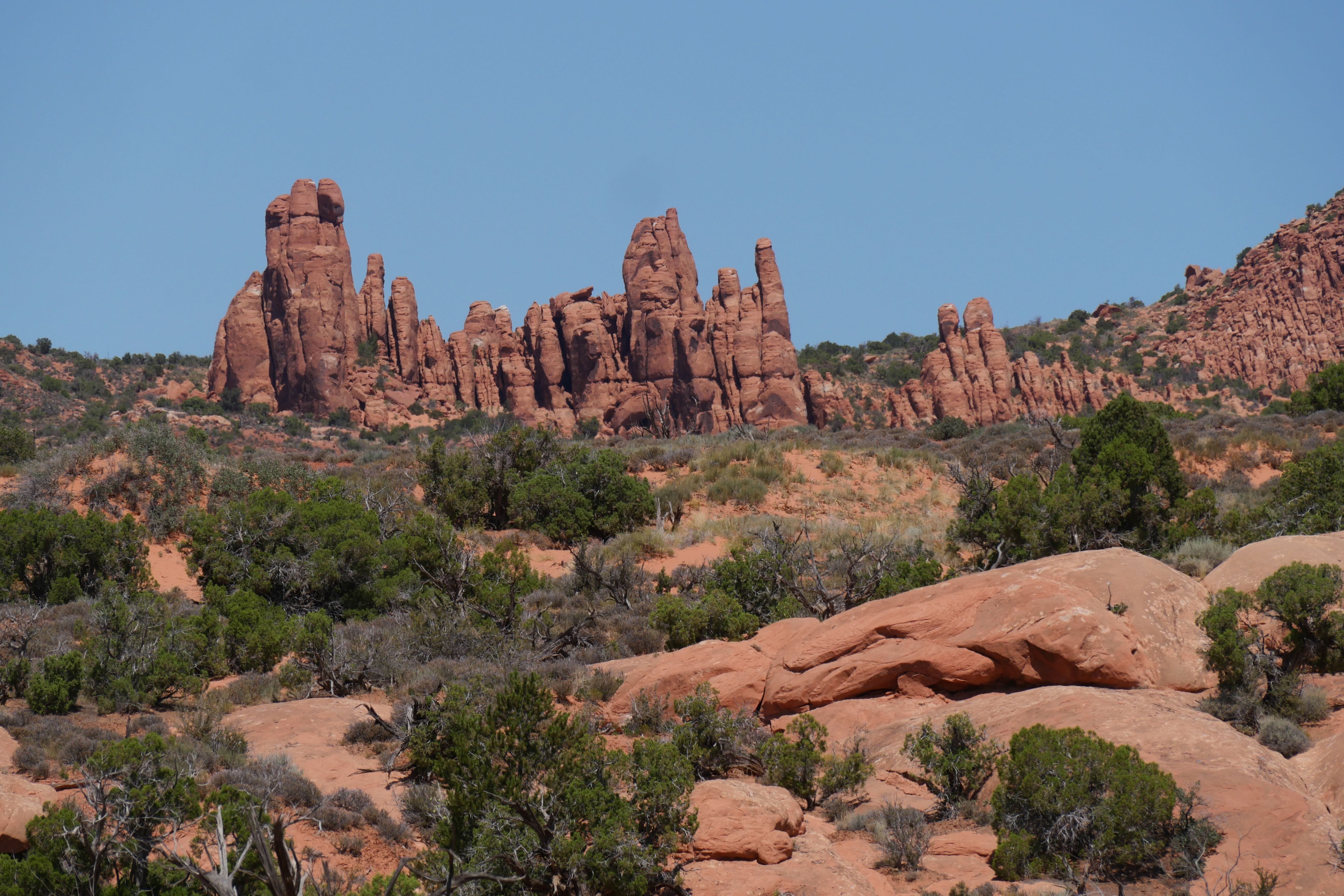 Parmi les inédits de ce voyage, nous avions placé les parcs de Arches et Canyonlands, nous ayant filé entre les doigts, inaccessibles en 2019, malgré notre visite de Monument Valley plus courte que prévue cette fois-là. Cette année, impossible de passer à côté, surtout que notre retour vers le Sud nous faisait passer à proximité. On sentait d’ailleurs bien que les températures n’avaient plus rien à voir avec nos visites plus au Nord. Ici, il fallait être prévoyant, et planifier intelligemment sa journée pour ne pas se retrouver à tellement souffrir lors de la visite que plus aucun plaisir n’émanerait de la découverte de ces paysages uniques.