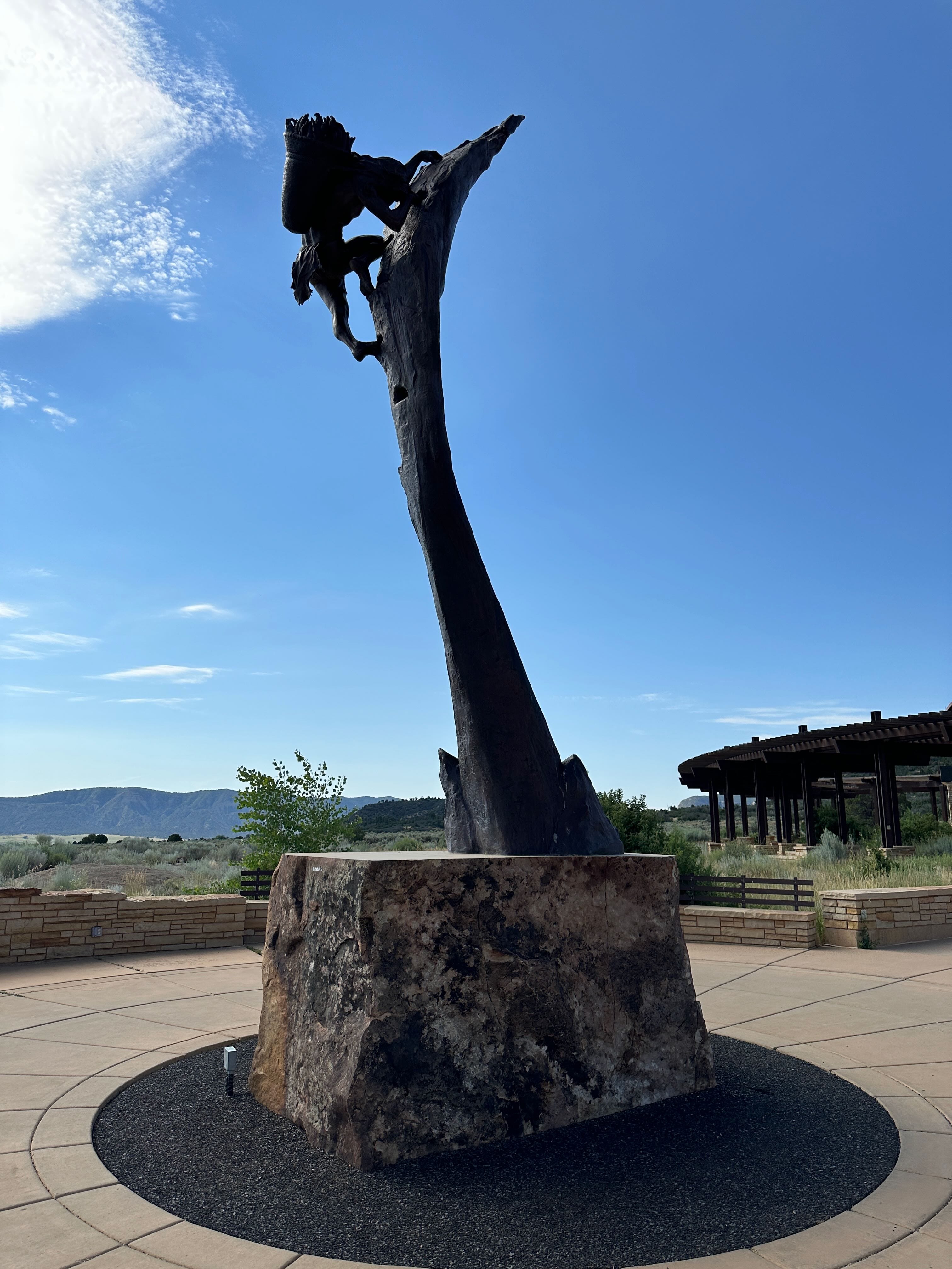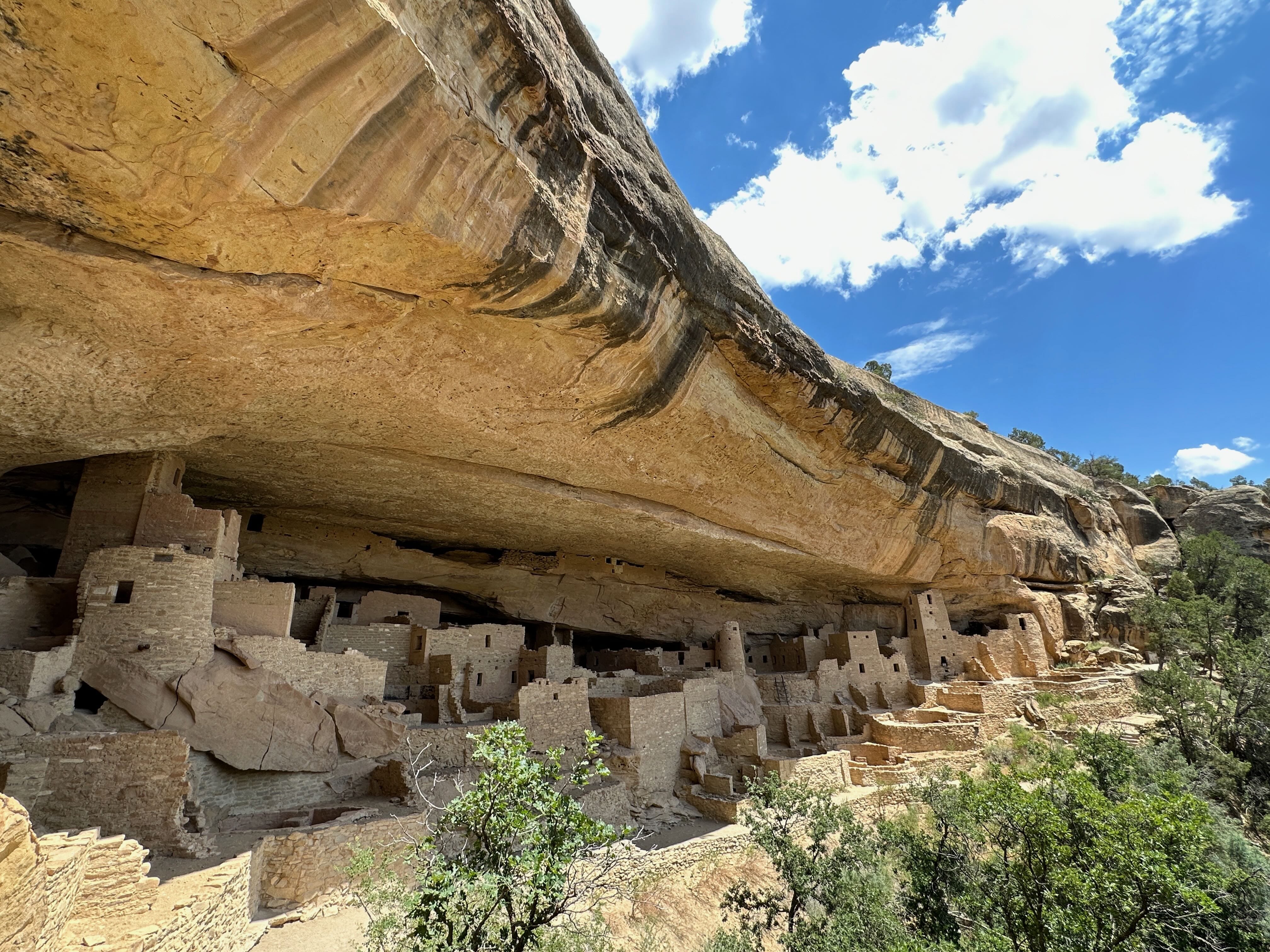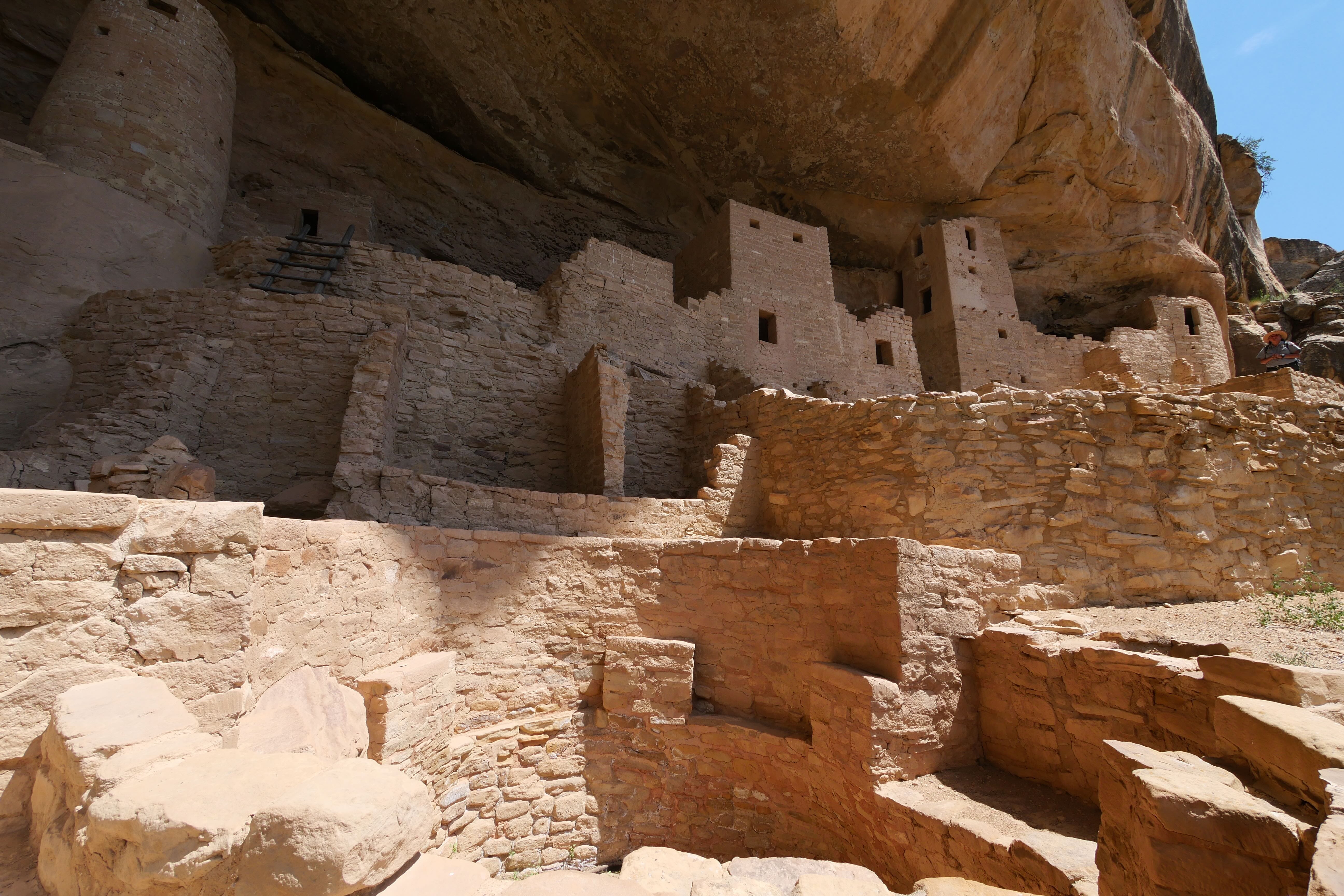 C’est pour entamer notre dernière semaine que nous avions prévu de visiter le parc national de Mesa Verde. Il nous aura donc, pour cela, fallu repartir un peu vers l’Est dans le sud du Colorado. Comme d’autres parcs du réseau des parcs nationaux américains, celui de Mesa Verde est inscrit au patrimoine mondial de l’UNESCO. Il est notamment réputé pour être le premier et seul parc américain à protéger les traces préhistoriques laissées par les Pueblos : des Amérindiens dont les différentes tribus vivaient dans des maisons juxtaposées en pierre. Le peuple qui a vécu à Mesa Verde est celui des Anasazi qui y ont vécu pendant plus de 750 ans avant d’en disparaître de façon mystérieuse.