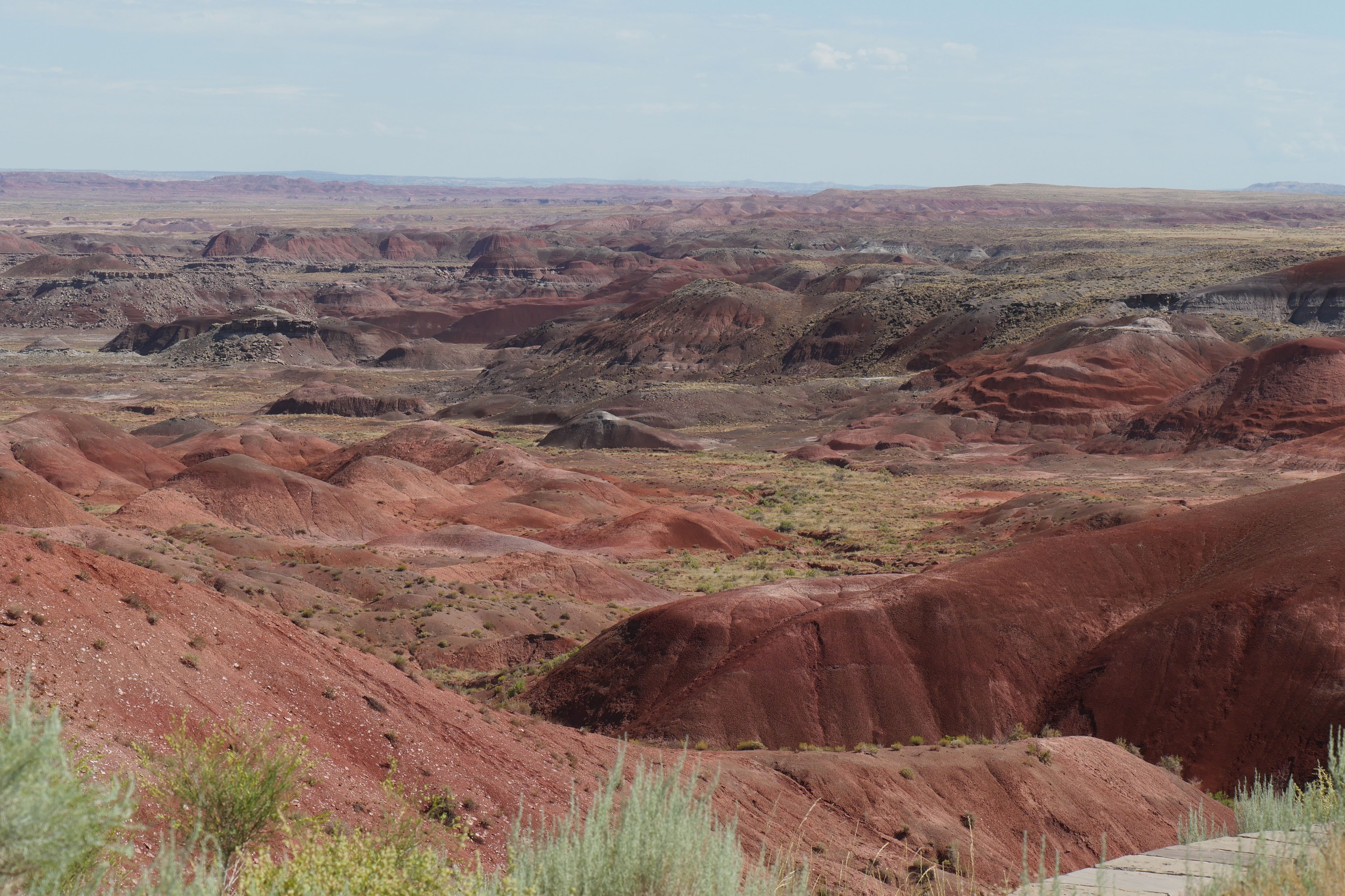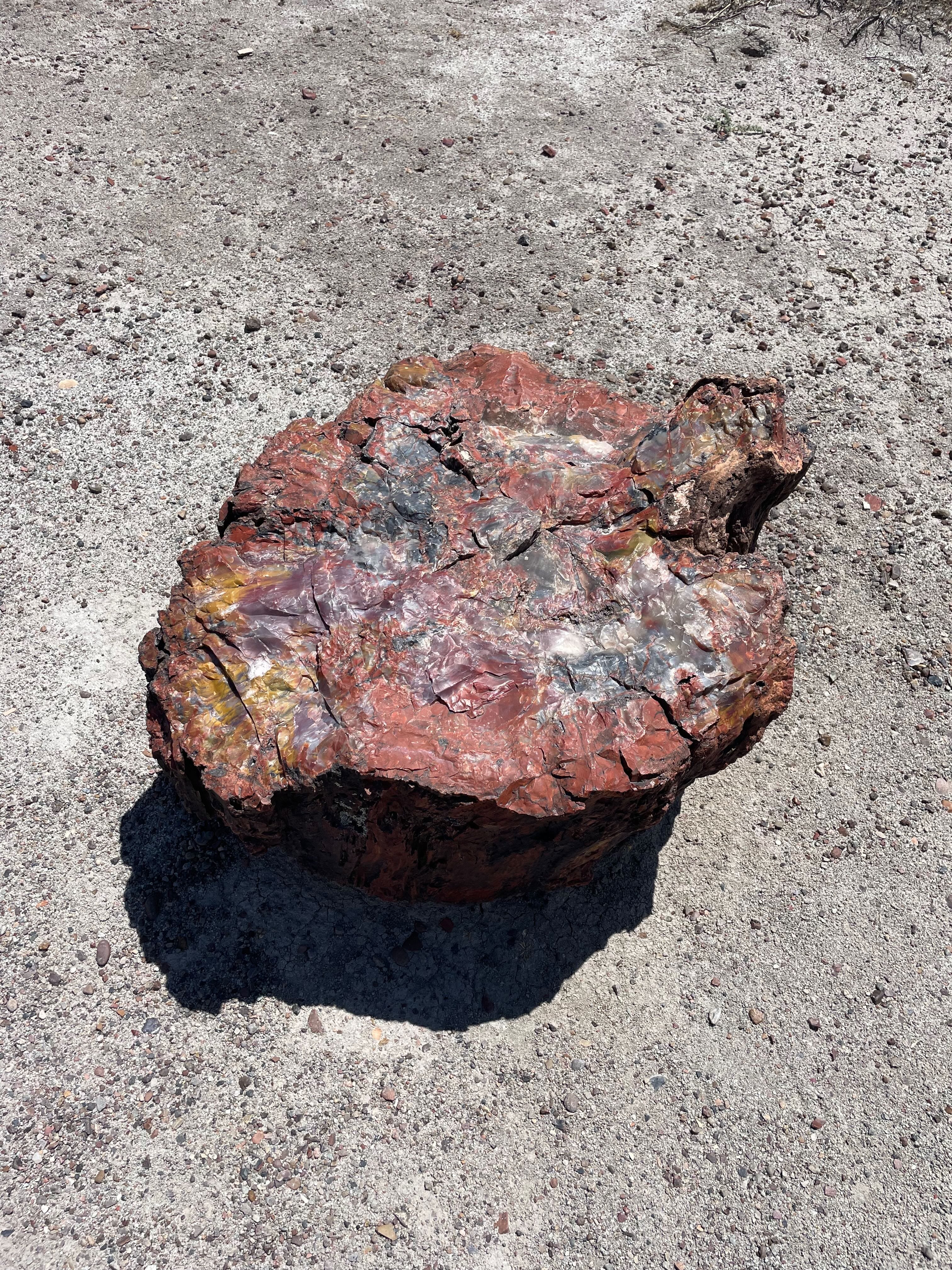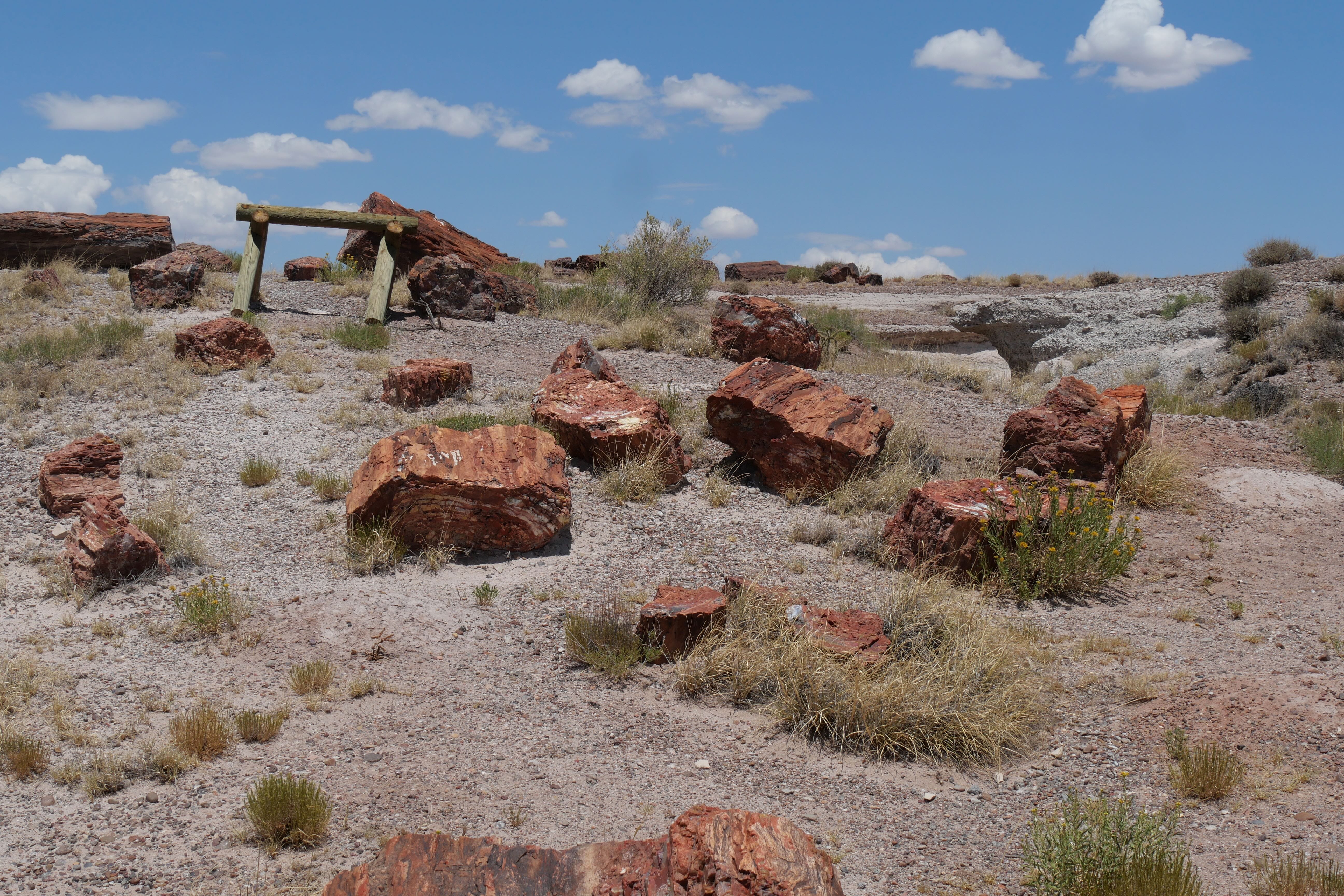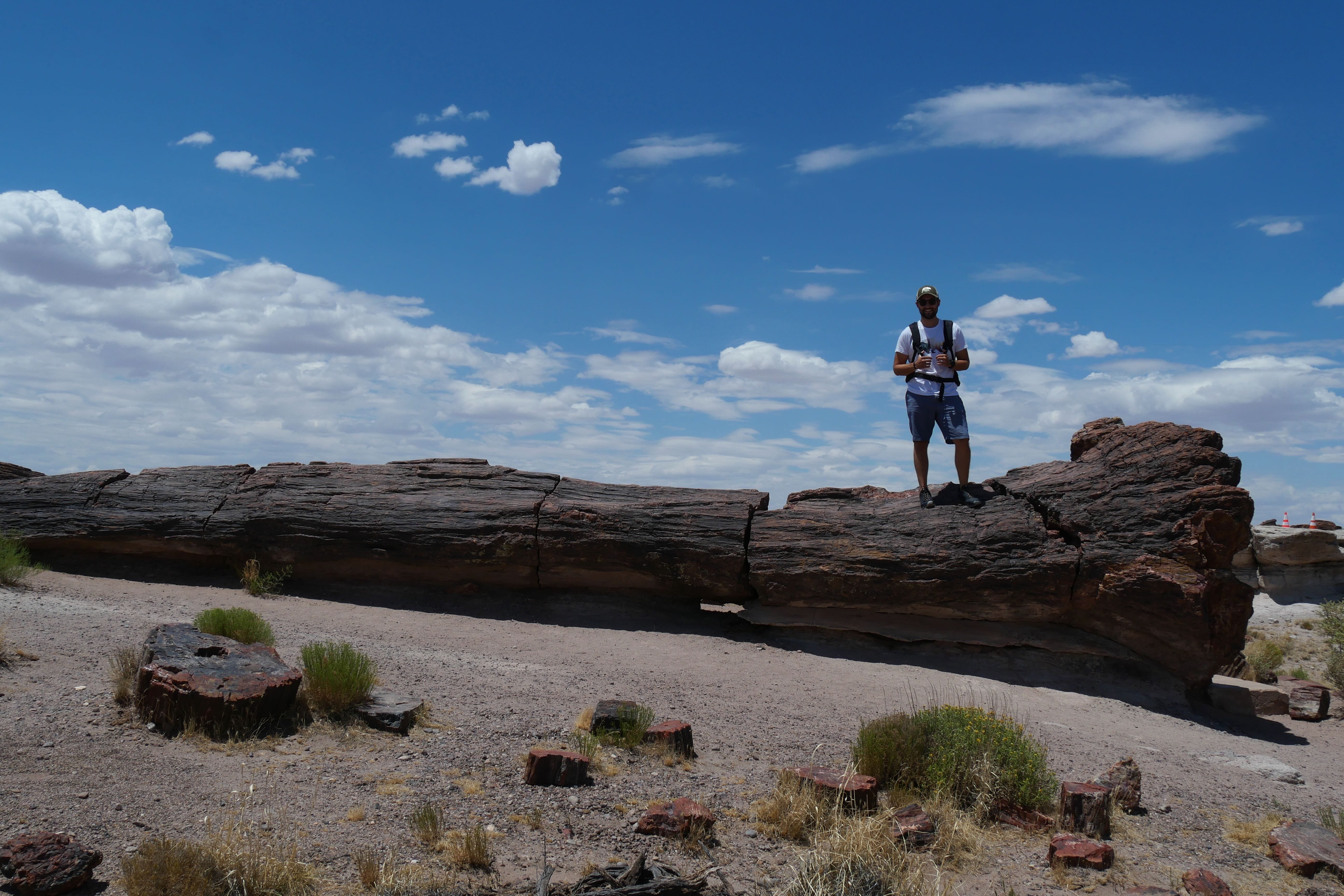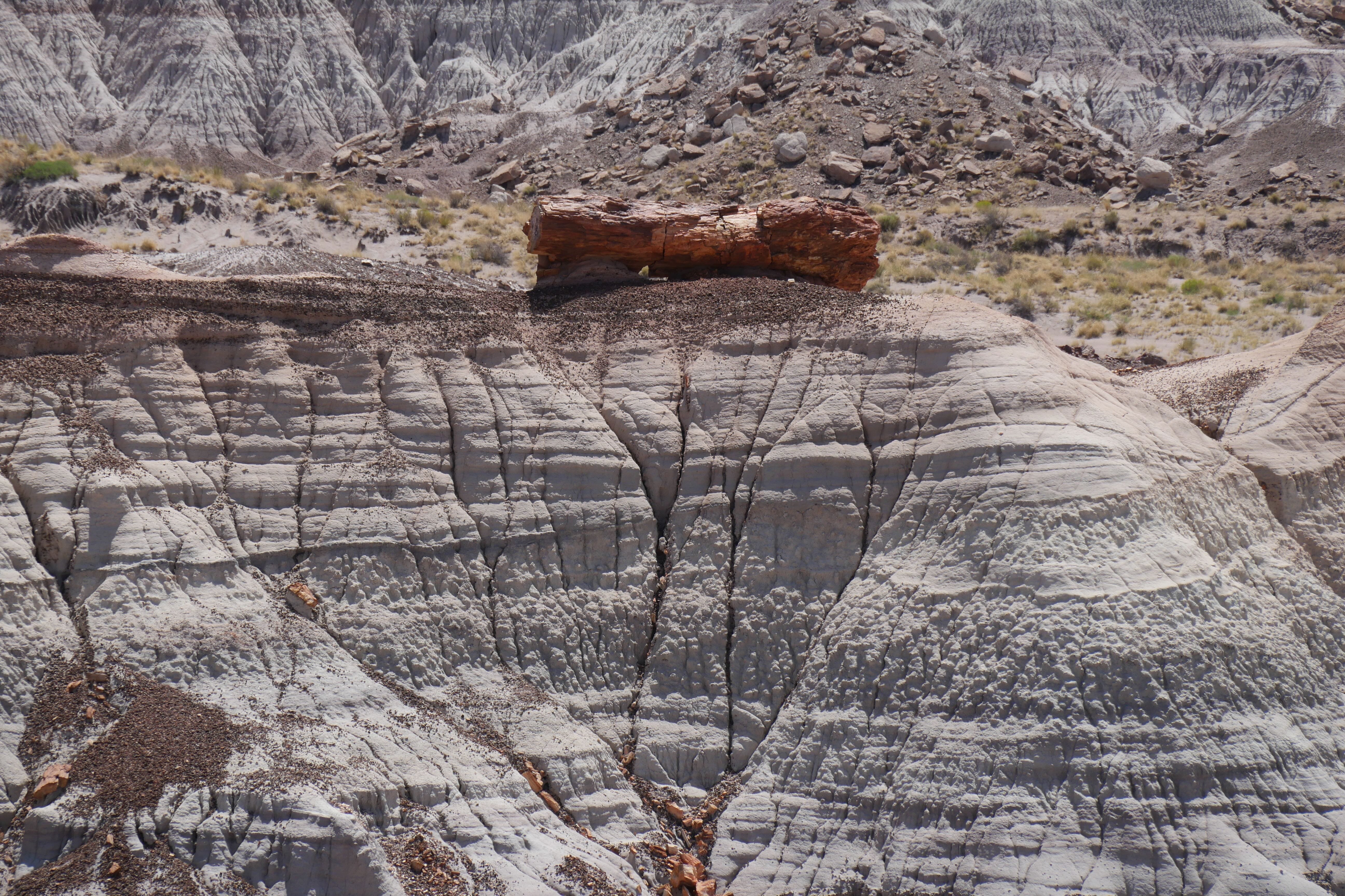 Nous ferons ensuite deux autres courtes randonnées : Crystal Forest Trail et Giant Logs Trails qui comme leurs noms l’indiquent sont pour l’une, une forte concentration de troncs pétrifiés brillant tels des cristaux; et pour l’autre d’immenses troncs pétrifiés. La chaleur, associée à la fatigue de ce début de troisième semaine, et la nuit difficile que nous avions passée, nous aurons convaincu de nous arrêter là. On aura en tout cas apprécié que plus notre découverte avançait, plus les arbres pétrifiés étaient impressionnants, ne nous donnant pas l’impression d’avoir vu le meilleur au début du parc, et nous poussant ainsi vers le point suivant.