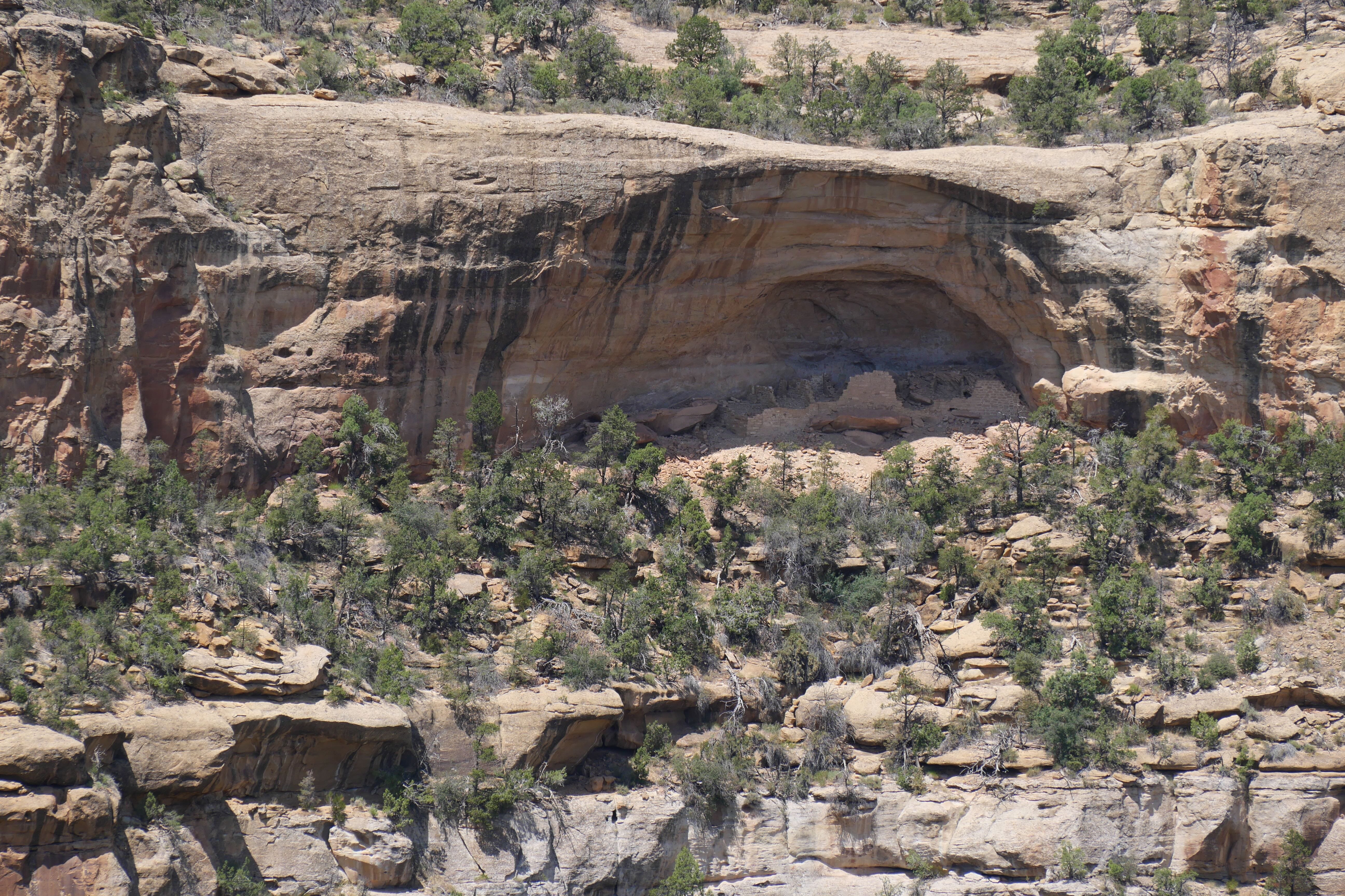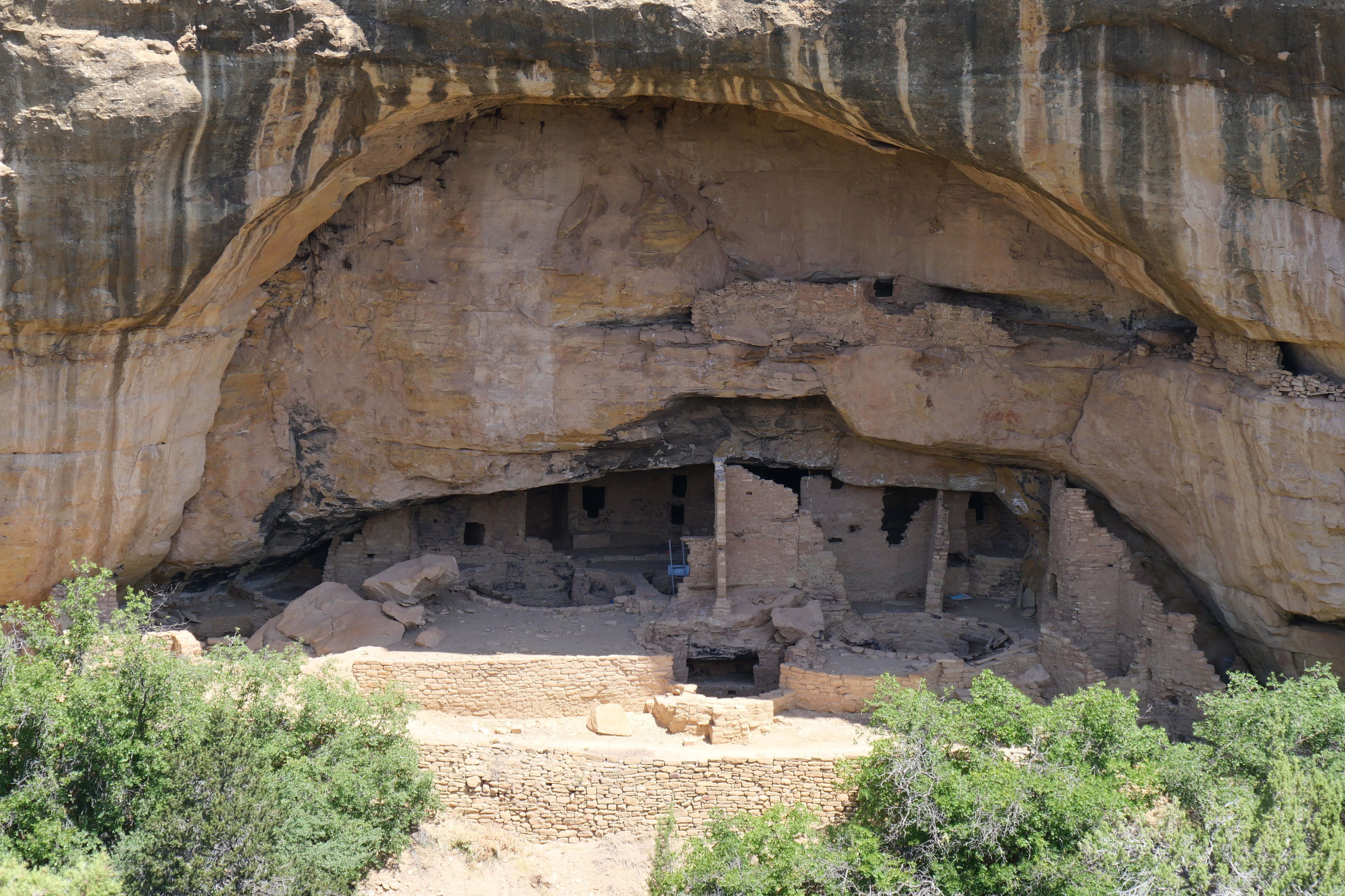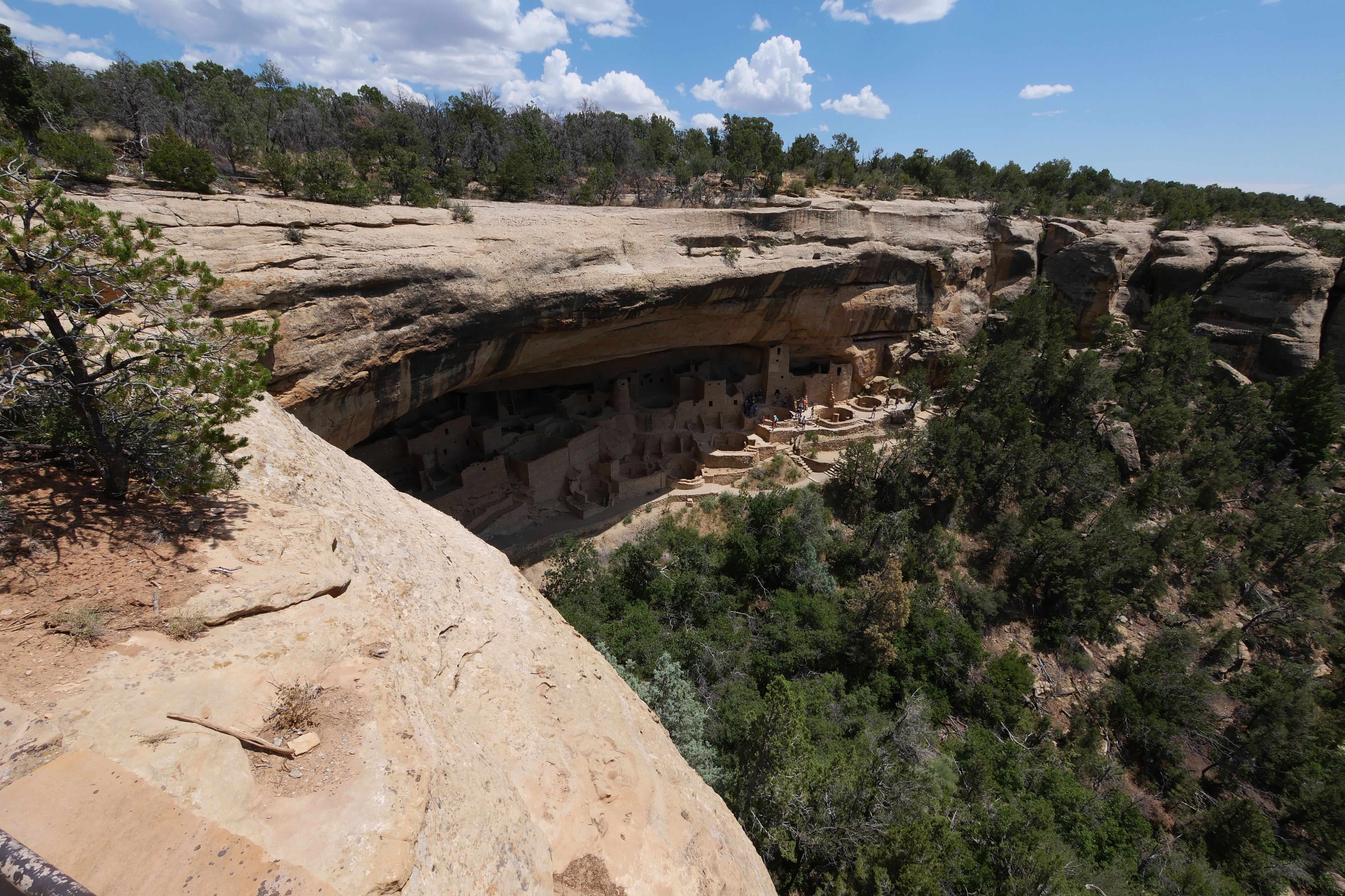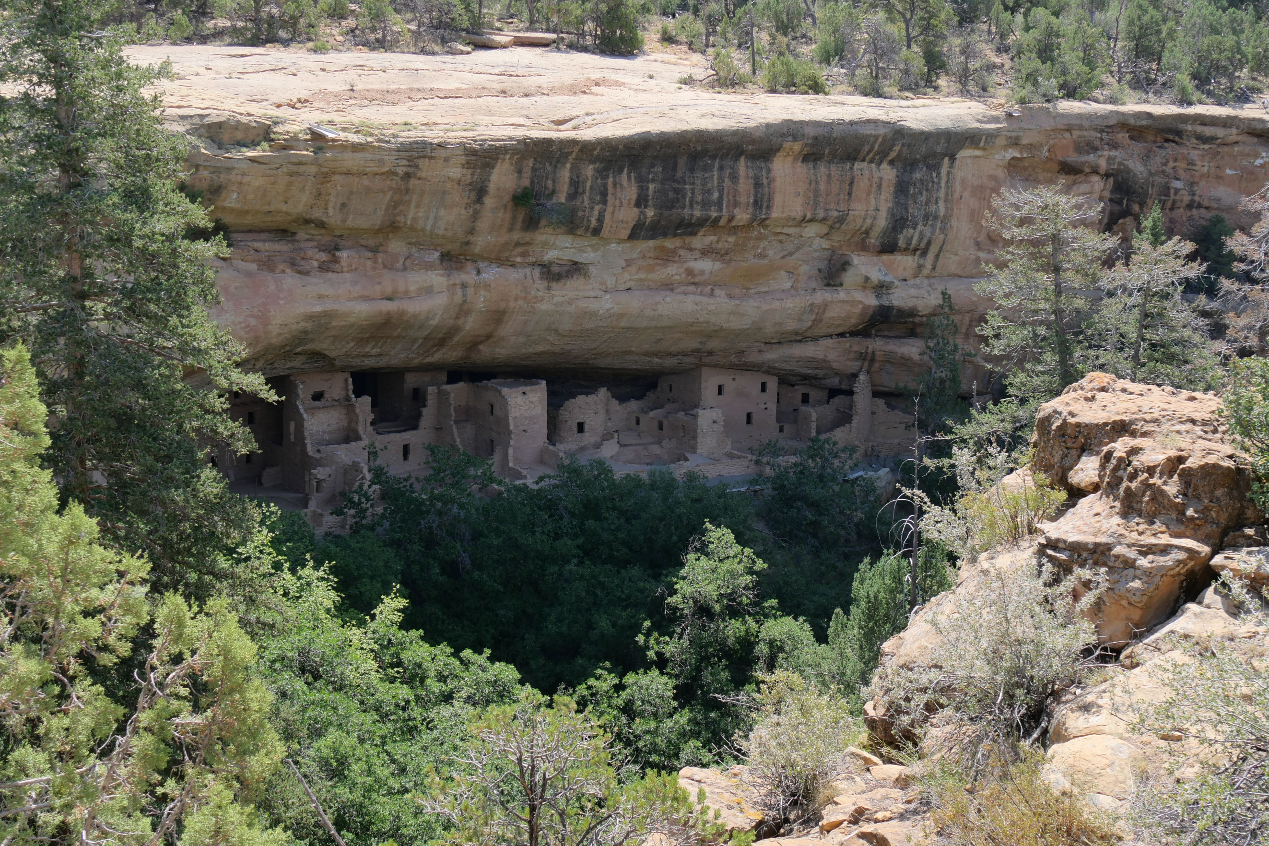 La partie la plus intéressante du parc se trouve à l’extrême Sud du secteur de Chapin Mesa. Nous en commencerons la découverte par un arrêt à Spruce Tree House. Là se trouve également le Chapin Mesa Museum qui permet de découvrir des objets ayant été retrouvés lors des différentes fouilles archéologiques mais également, les modes de vie des Pueblos y ayant vécu. Un petit sentier descend ensuite progressivement jusqu’à arriver face à la Spruce Tree House, notre première découverte des complexes troglodytiques de Mesa Verde. Etant donné la chaleur écrasante et notre fatigue grandissante, nous choisirons de ne pas nous aventurer davantage sur le sentier qui aurait permis de se rendre sur le site directement. D’autant que nous avions une visite guidée de prévu peu de temps après, dans un autre complexe.