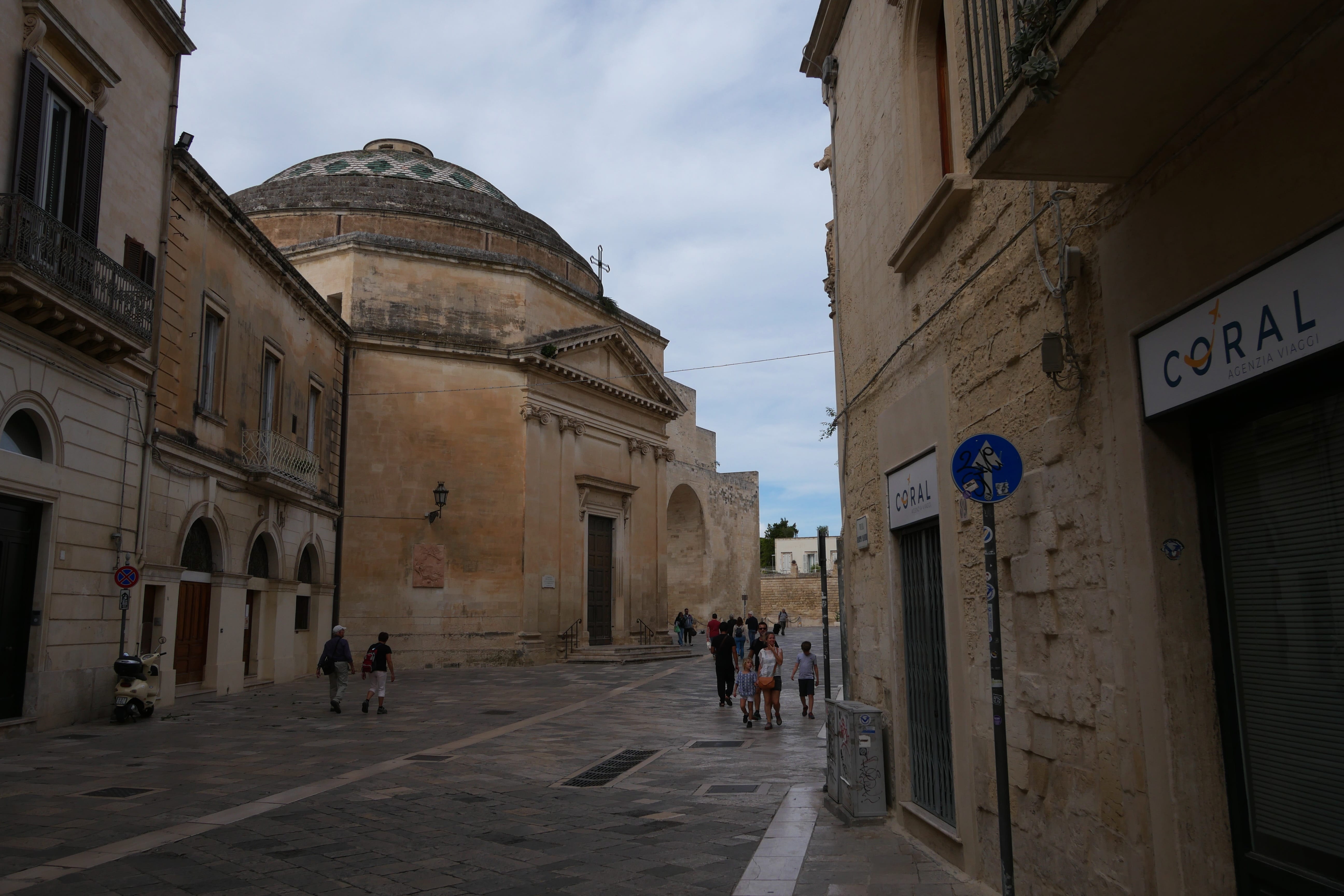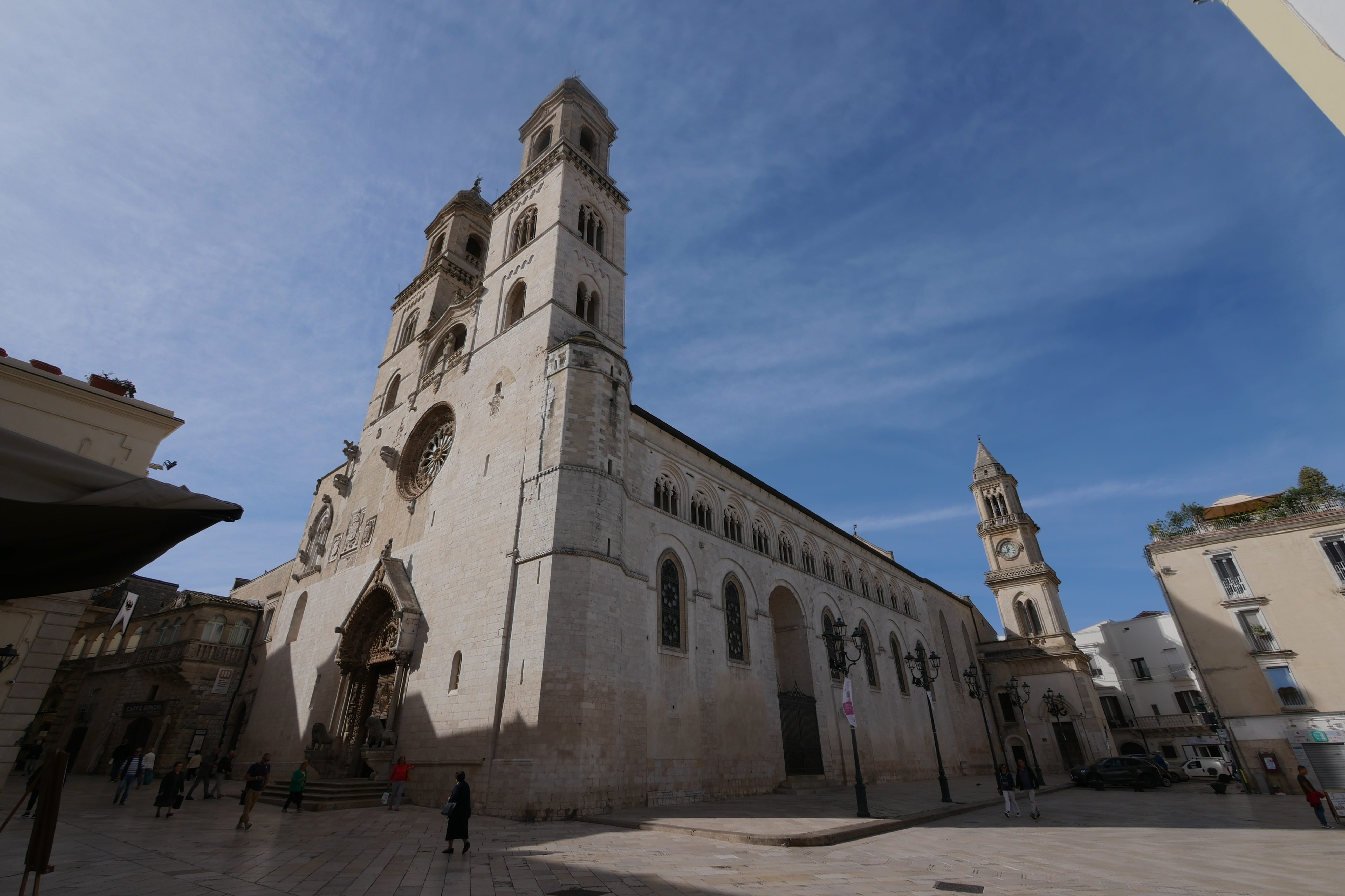 Sur la route de Matera depuis Bari, Altamura est un arrêt intéressant, et une visite facilement accessible depuis les parkings autour de la vieille ville. En ce qui nous concerne, dès que nous avons quitté la voiture, c’est par la Porta Bari que nous sommes entrés dans les charmantes ruelles du cœur historique. On tombe ainsi rapidement sur de beaux bâtiments tels que la Chiesa di San Biagio, la Chiesa di San Nicola dei Greci et enfin la Cattedrale di Santa Maria Assunta, aussi belle de l’extérieur qu’à l’intérieur. Mais le charme de la ville ne s’arrête pas à cette rue principale, et on dira même qu’il commence dans toutes les ruelles adjacentes. Au fil de nos déambulations, nous passerons sous l’Arco Basso, l’une des « plus petites arches d’Italie »…! Vous trouverez aussi des endroits préservés, notamment des petites boulangeries dans lesquelles est réalisé le Pain AOP d’Altamura, cuit à l’ancienne dans de vieux fours à bois. De retour sur la Piazza Duomo, nous prendrons le temps de déguster les « foccacie farcite », spécialités locales achetées un peu plus tôt à l’Antico Forno Santa Chiara (sans pour autant goûter le fameux pain local – une grosse boule de pain à l’ancienne – le boulanger ne voulant pas nous en vendre un morceau raisonnable, et n’ayant que faire d’autant de pain), sous un magnifique soleil d’automne. Nous reprendrons ensuite la route vers Matera, notre seule parenthèse en dehors des Pouilles, mais quelle parenthèse ! Comptez ainsi environ deux heures pour découvrir brièvement Altamura, une grosse demi-journée si vous y prévoyez des visites éventuelles.