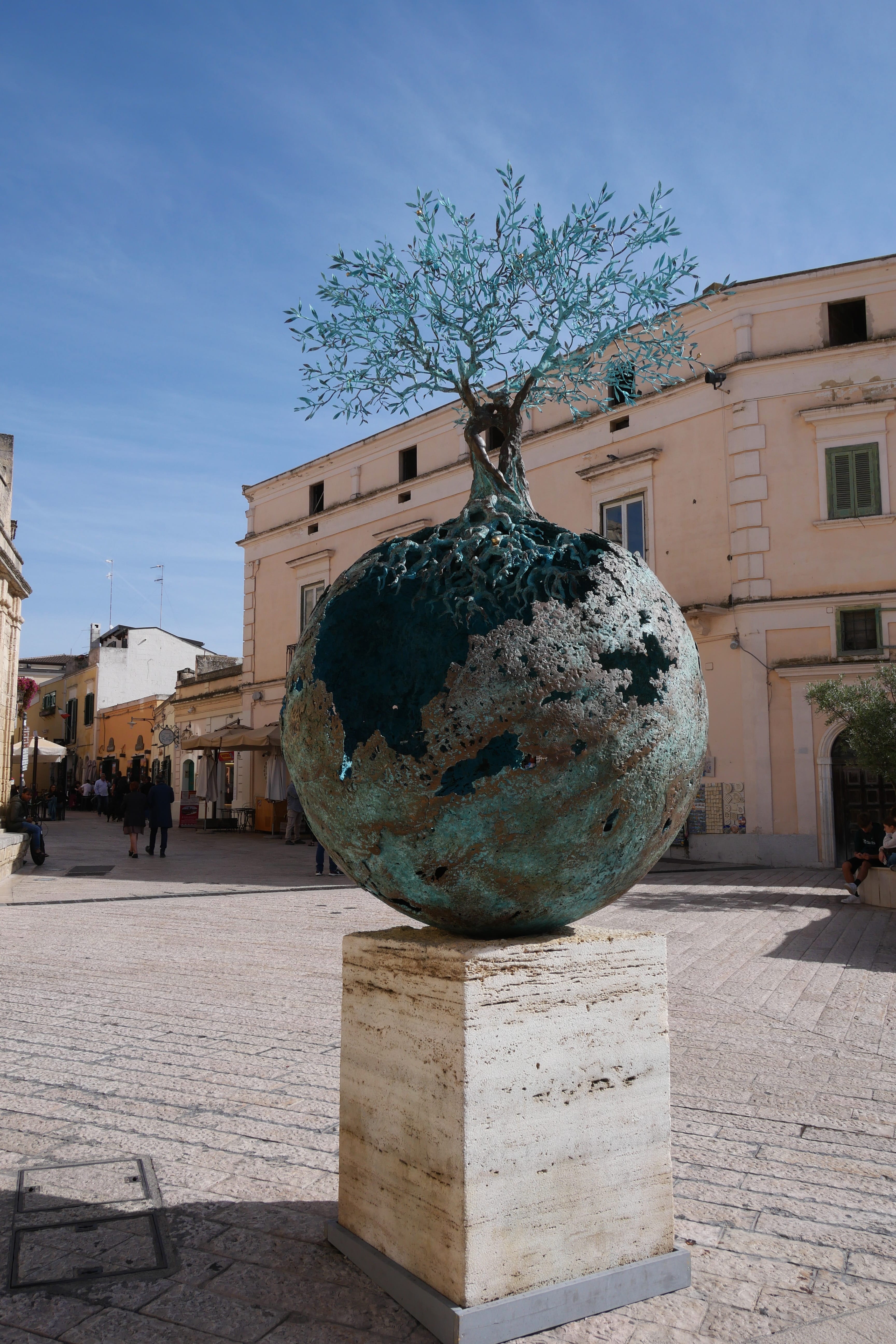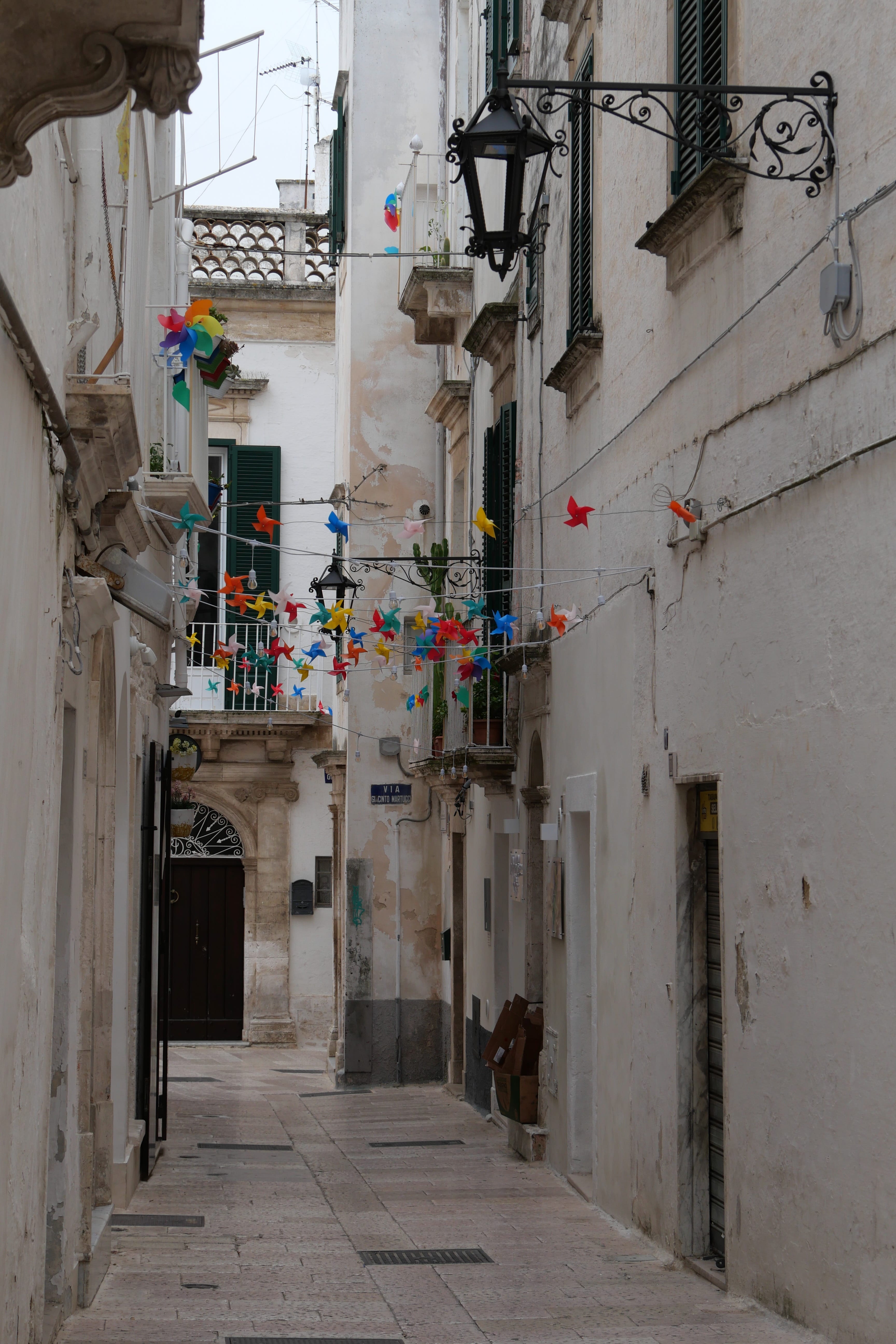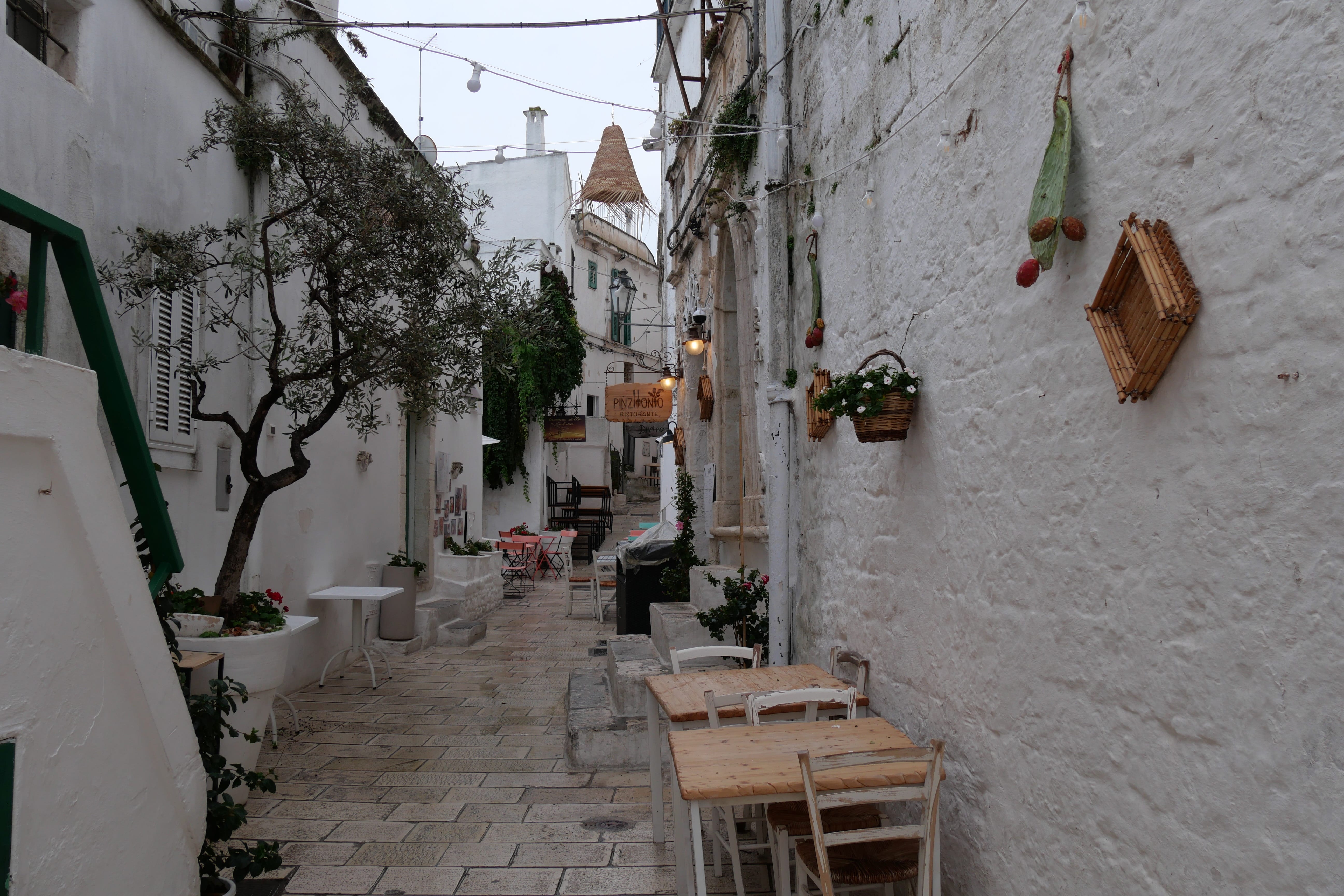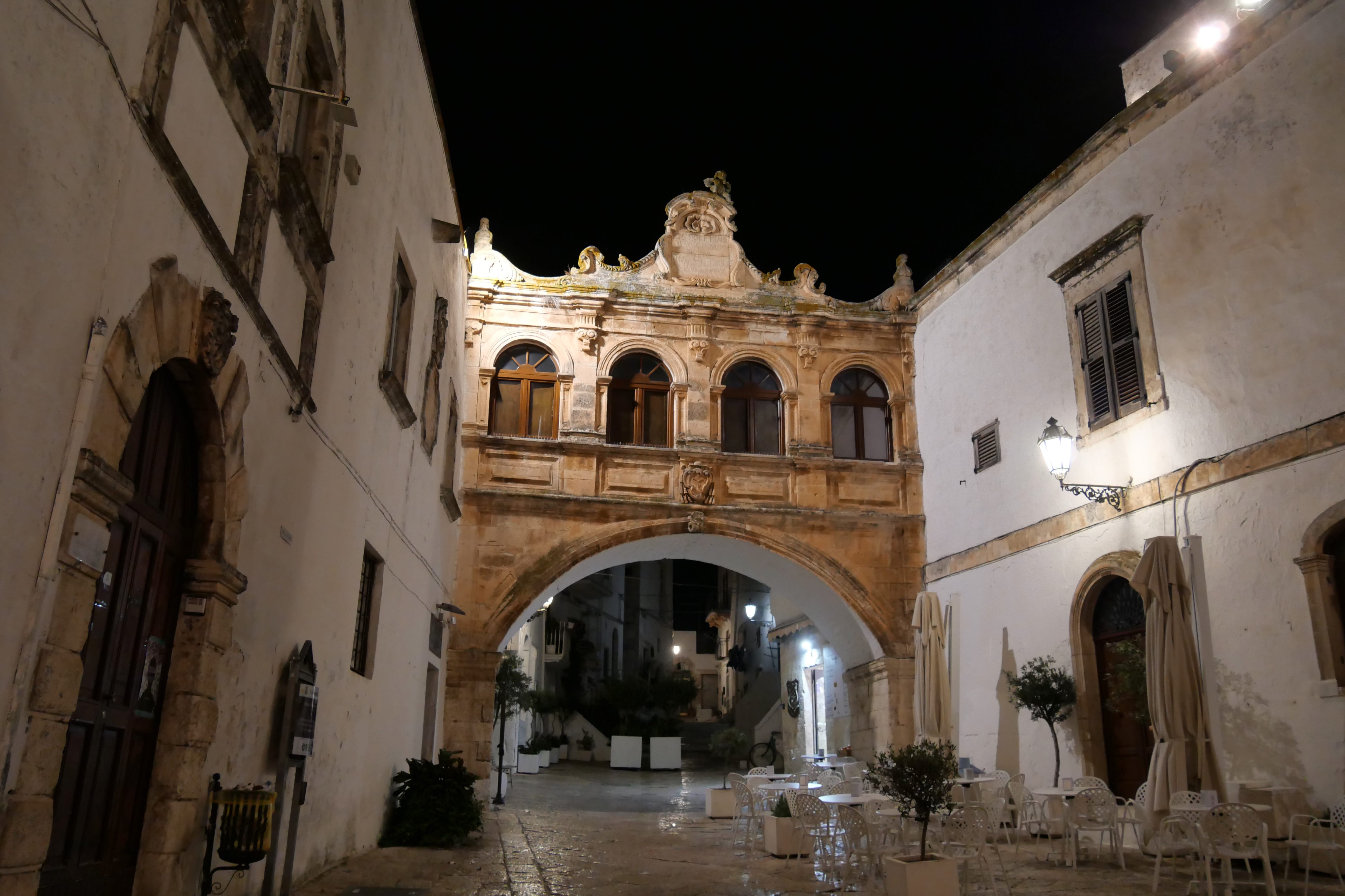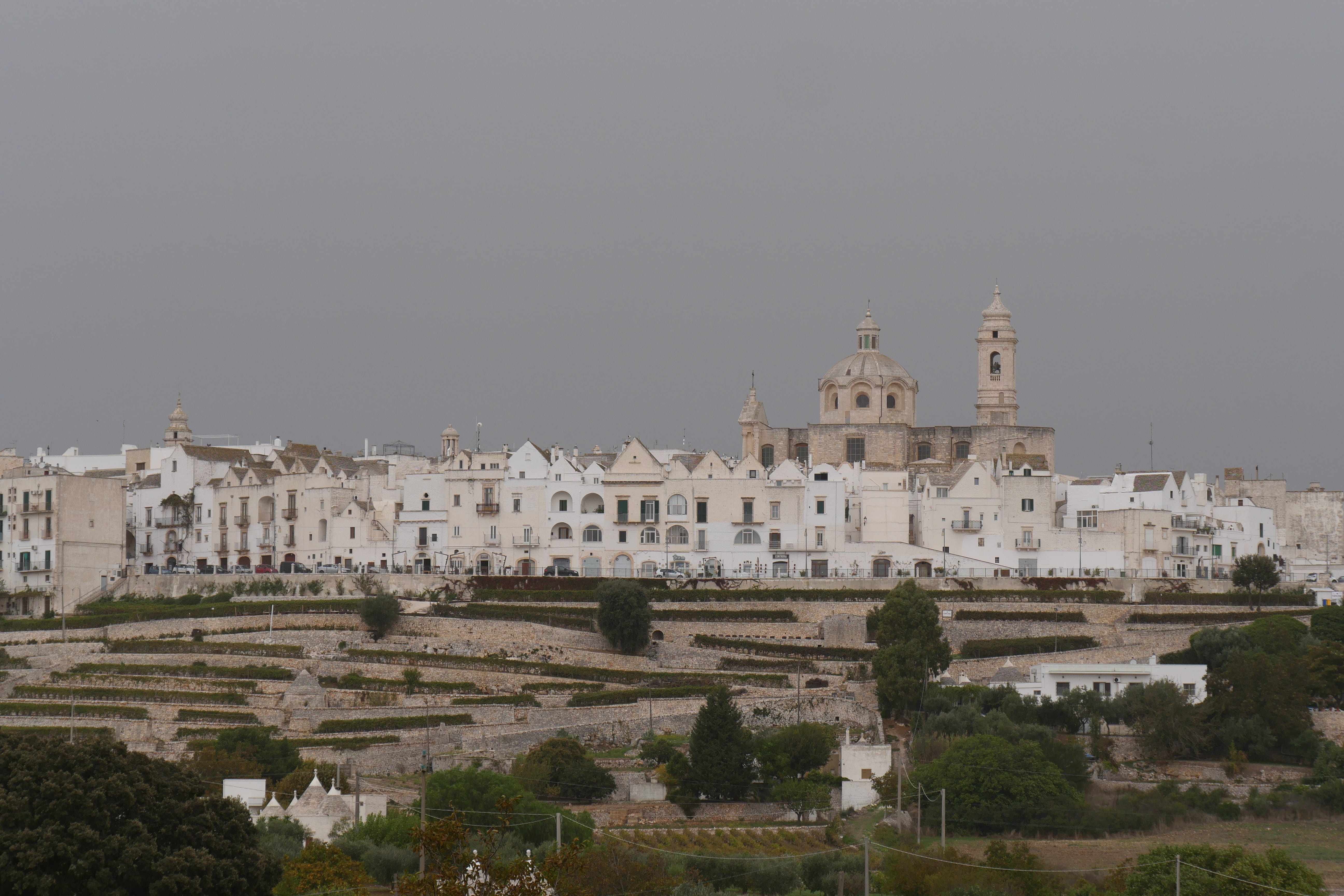 Tous les guides sur les Pouilles vous diront d’aller visiter cette ville qui tient son nom de l’organisation circulaire de son centre-ville. Pour être honnête, nous avons plus apprécié la vue sur la ville depuis la route – car son emplacement au sommet d’une colline était plutôt photogénique – que la visite du centre en lui-même. C’est évidemment très mignon, avec des façades blanchies à la chaux qui laissent présager ce que nous pourrons voir plus tard à Alberobello, mais nous ne lui avons rien trouvé de très particulier et n’y aurons passé que quelques dizaines de minutes. Si vous avez un emploi du temps serré, vous pouvez faire l’impasse selon nous.