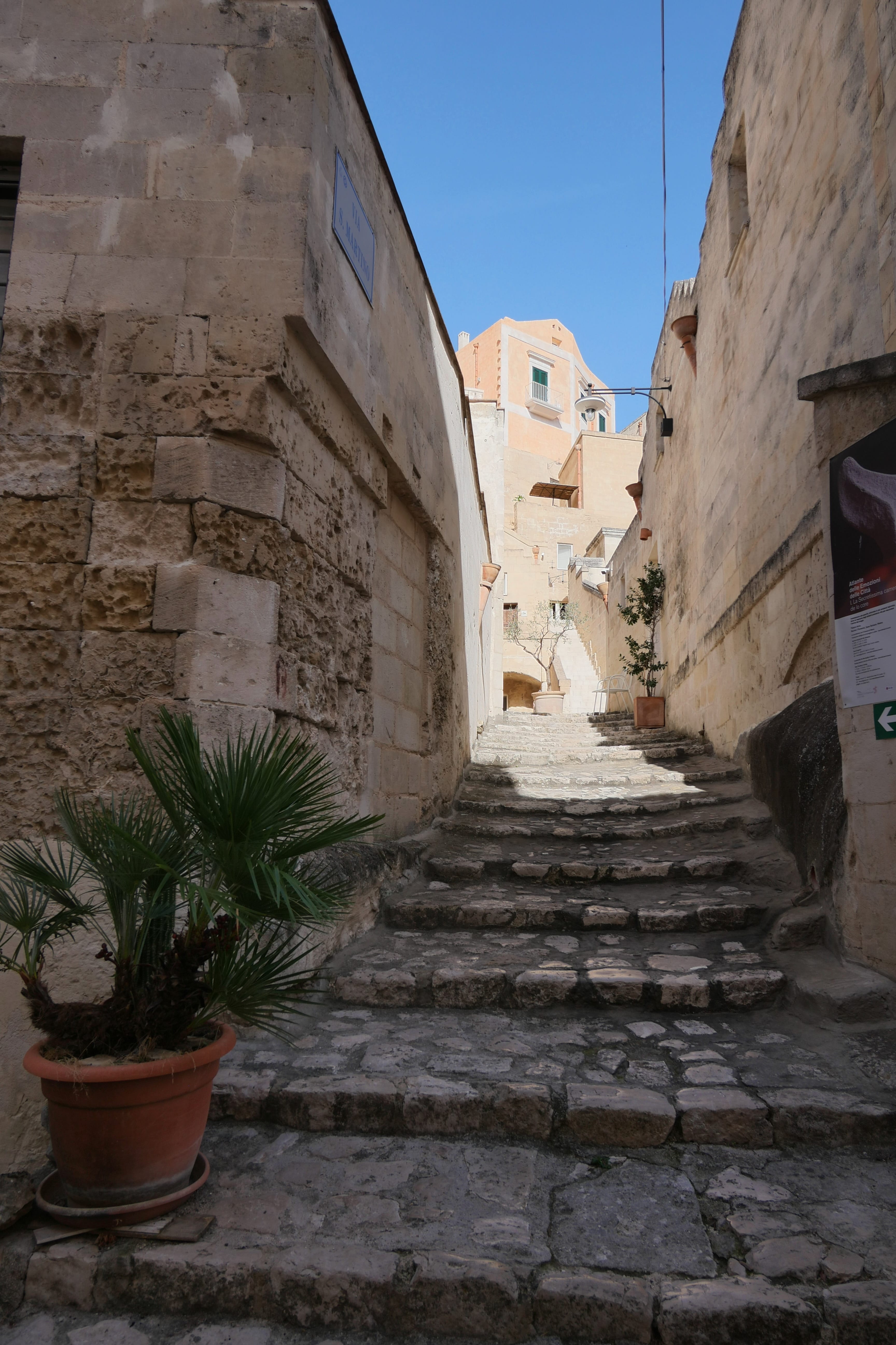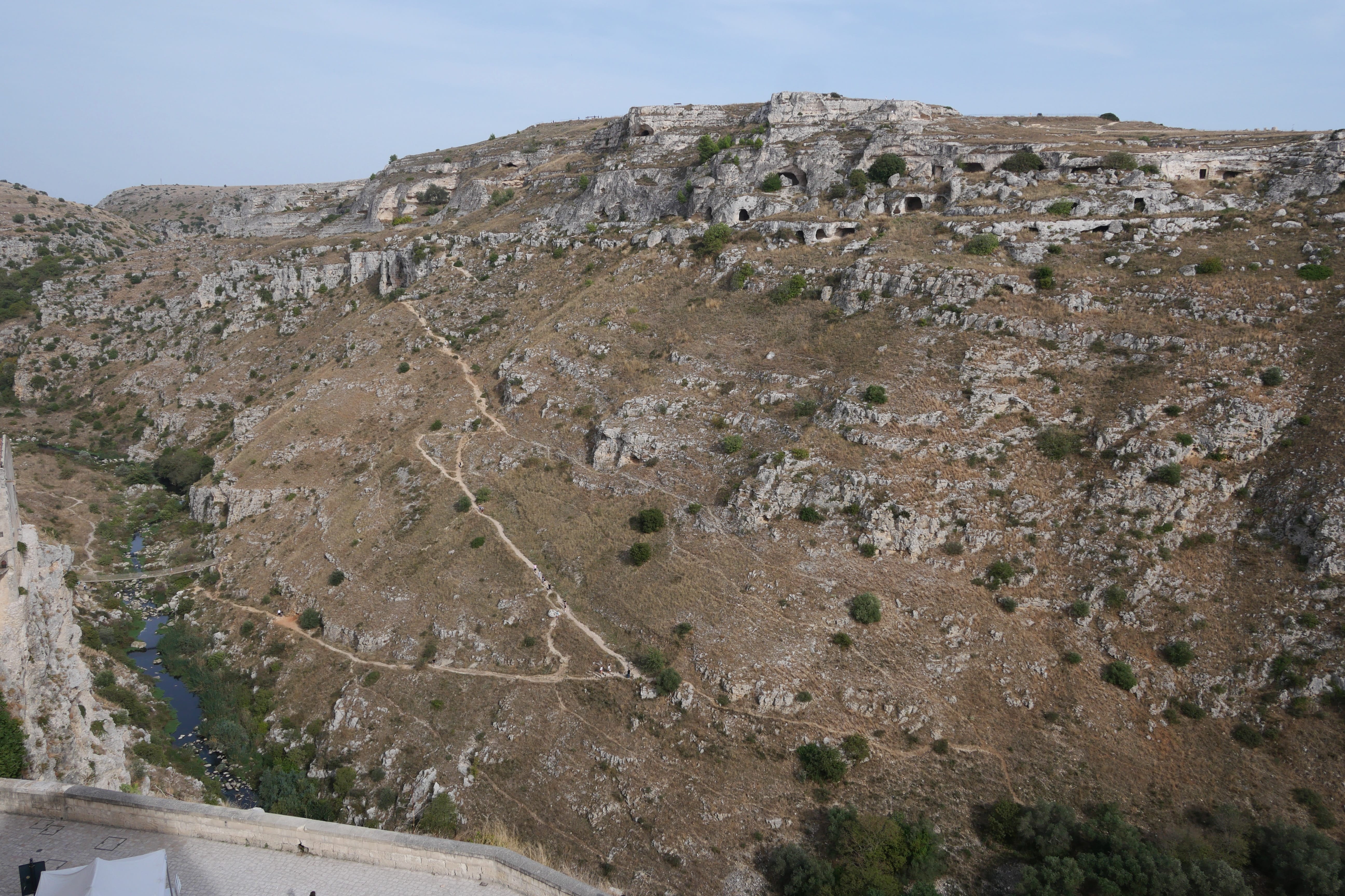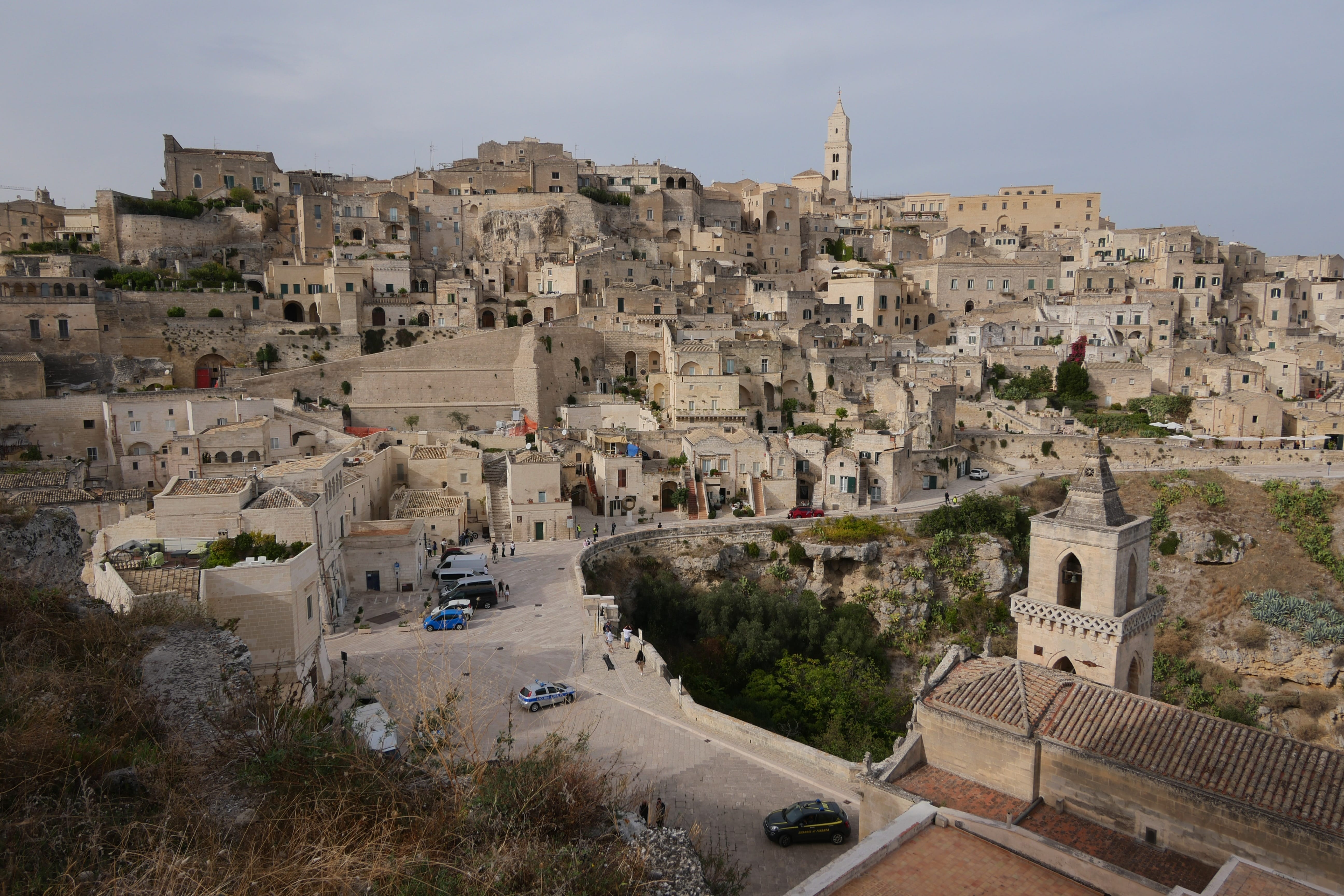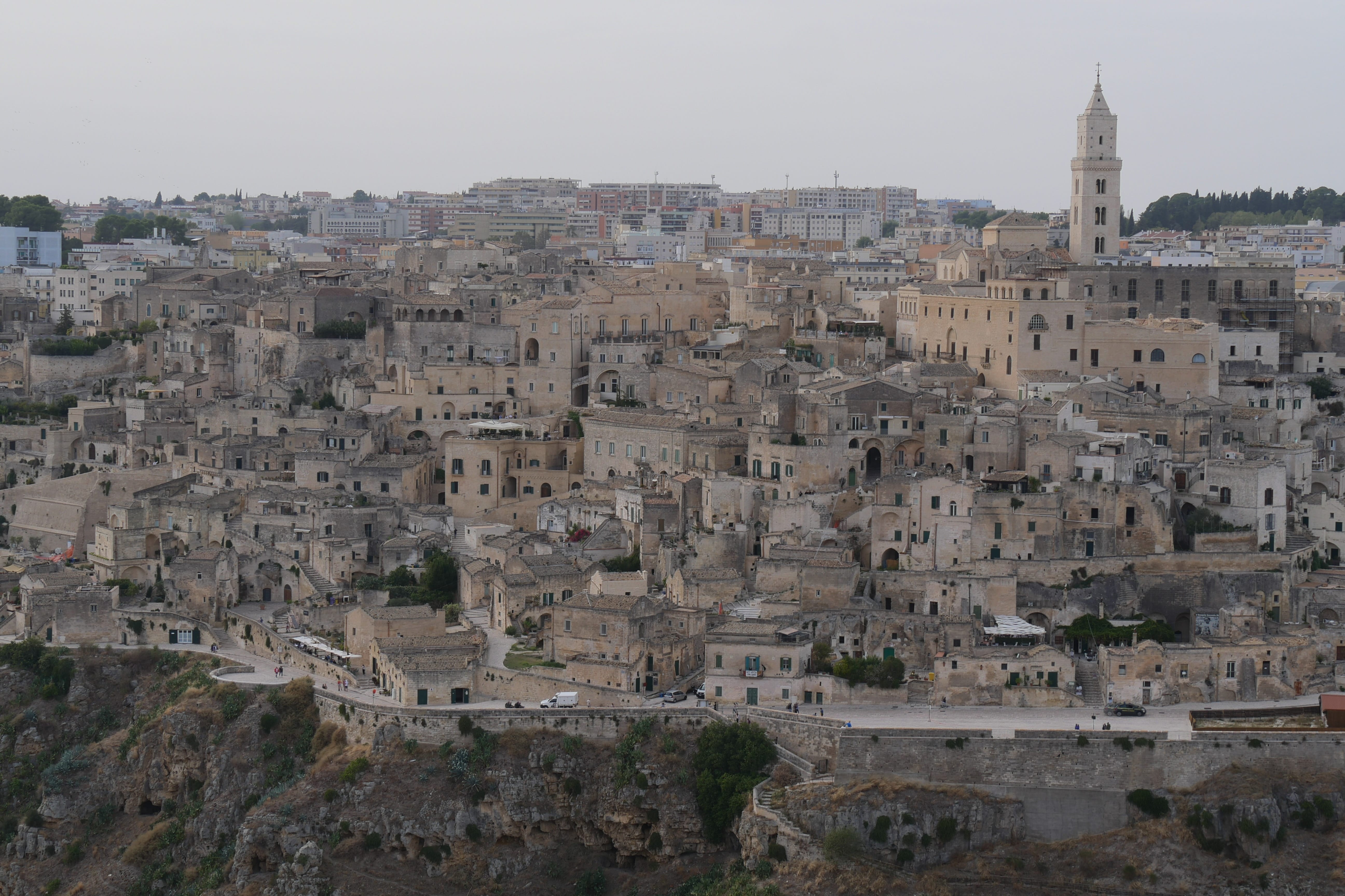 Il, n’avait jamais entendu parler de Matera avant d’en découvrir certaines de ses ruelles dans James Bond : Mourir peut attendre. Elle, connaissait déjà un peu de nom avant de planifier ce RoadTrip. Maintenant vous saurez qu’il s’agit de la plus vieille ville d’Italie et de la 2ème au monde après Jericho et qu’elle ne se résume pas qu’à ça évidemment. Comptez une demi-journée pour un bon aperçu, une journée complète si vous souhaitez en explorer tous les recoins, et encore davantage si vous y prévoyez des arrêts insolites. On pense par exemple à ce café intégré dans la roche qu’on a traversé pour rejoindre un point de vue sur la ville, mais qu’on serait bien incapable de replacer tellement la ville est étriquée et vos déplacements conditionnés à un bon sens de l’orientation, et un peu de chance parfois, pour ne pas tomber sur une impasse. Matera, c’est en résumé une très belle ville, composée de deux Sassi, le Sasso Caveoso plus préservé et témoin encore actuel du mode de vie des habitants, et le Sasso Barisano, plus amplement rénové et où il est possible de boire un verre ou de se restaurer. Elle ne démérite pas non plus sur le plan des jolis lieux, avec la Piazza Vittorio Veneto, mise en valeur par une œuvre intitulée l’arbre de la paix lorsque nous y étions, et la Basilica Cattedrale, qui obligera les plus aventuriers à descendre dans le Sasso pour la rejoindre et ainsi mieux comprendre pourquoi Matera est assurément un crochet incontournable. Pour un aperçu de la vieille ville dans son ensemble, il faudra reprendre la voiture et rejoindre le Belvedere Murgia Timone. Une belle façon de finir cette journée.