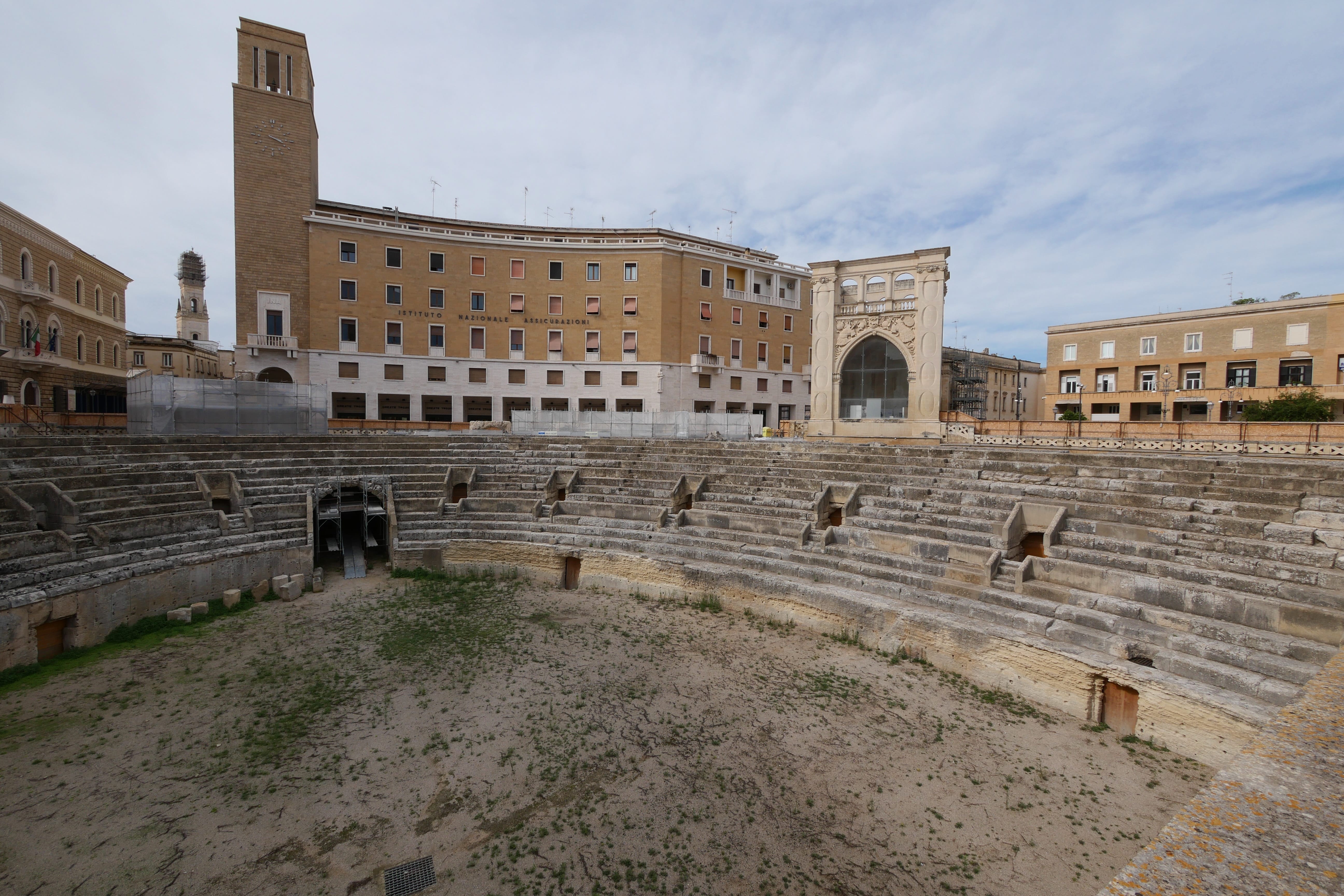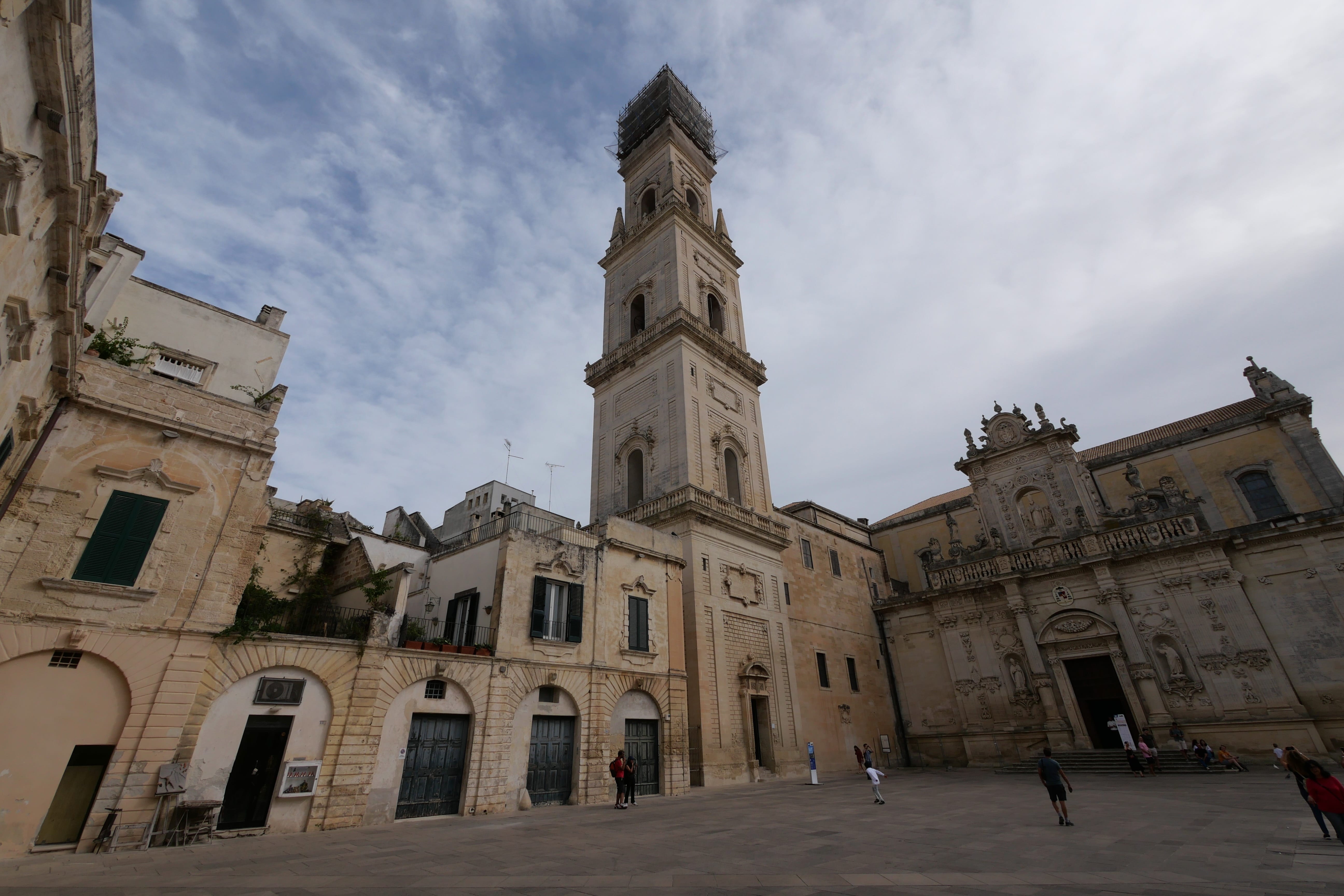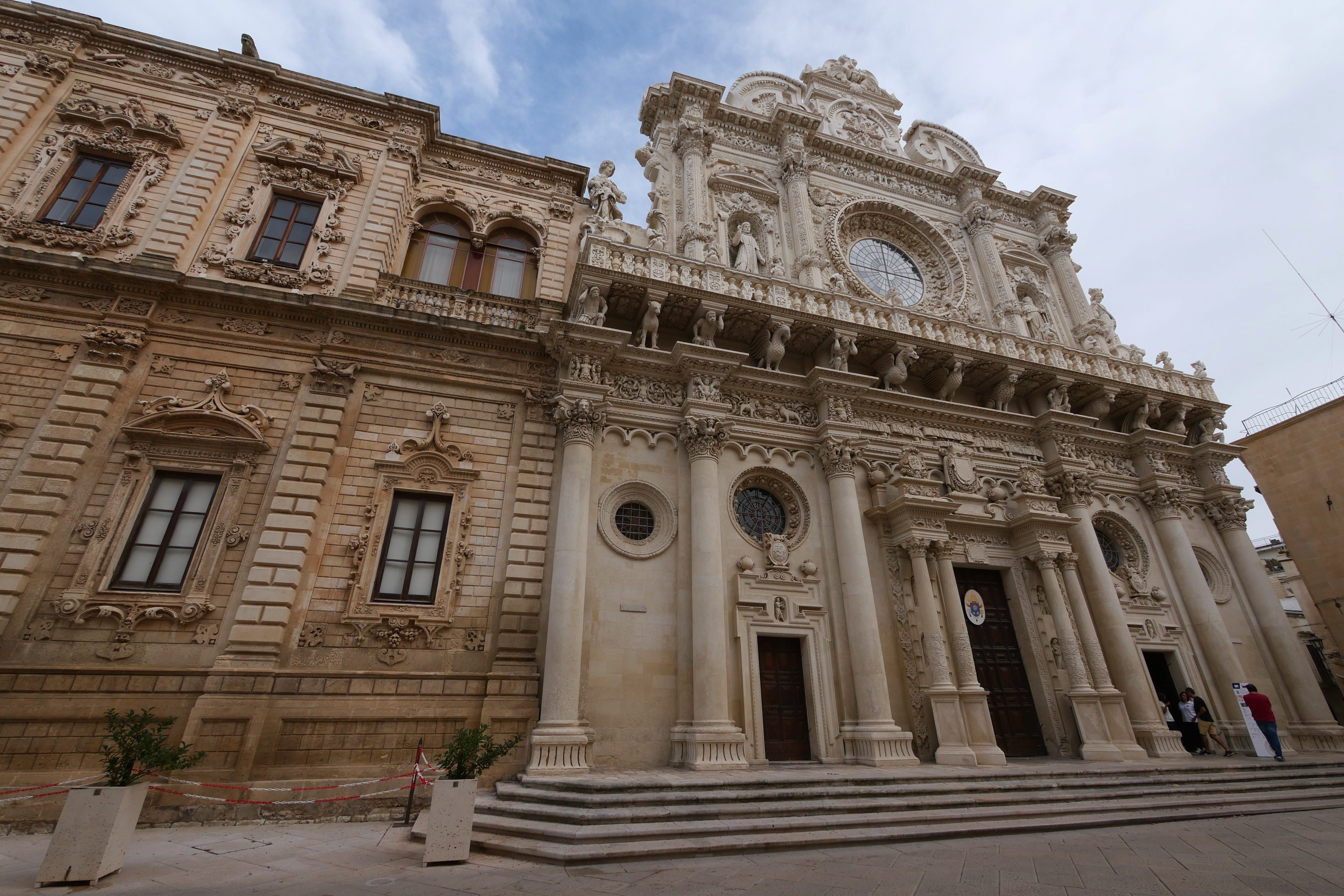 Lecce, capitale de la province éponyme, dans les Pouilles, ville d’environ 100 000 habitants, cela se ressent de par sa taille et son activité plus prononcée que dans les petits villages parcourus jusqu’alors. Nous l’avons découverte un peu au feeling, se laissant porter par les différents monuments se dévoilant les uns après les autres. Trouver une place de parking non loin du centre n’aura pas été très compliqué (Viale Otranto, si jamais), nous laissant ensuite libre accès à la ville, en commençant par l’amphithéâtre romain, en étant passé devant la Fontana Dell’Armonia. La Piazza Sant’Oronzo, sur laquelle se trouve l’amphithéâtre est un point central de la ville, et l’endroit idéal pour rayonner ensuite vers les différents points d’intérêts. Pour ceux qui souhaitent y entrer d’ailleurs, sachez qu’un pass existe, donnant l’accès à de nombreux bâtiments de la ville. N’ayant pas beaucoup de temps à lui accorder, et ne souhaitant pas aller au-delà de voir les monuments depuis l’extérieur, nous n’avons pas opté pour cette option nous concernant. En résumé, la Piazza del Duomo, le théâtre romain, la porte Rudiae, le Palazzo dei Celestini, la Basilica di Santa Croce et les Giardini Garibaldi sont autant de lieux à ne pas manquer si vous découvrez Lecce, et ce, même sans forcément entrer dans les bâtiments. Une petite demi-journée suffit pour en voir l’essentiel, comptez probablement la journée si vous souhaitez visiter les intérieurs. On ne retiendra en revanche pas vraiment la Lecce contemporaine, ses boutiques et magasins n’étant pas mémorables.