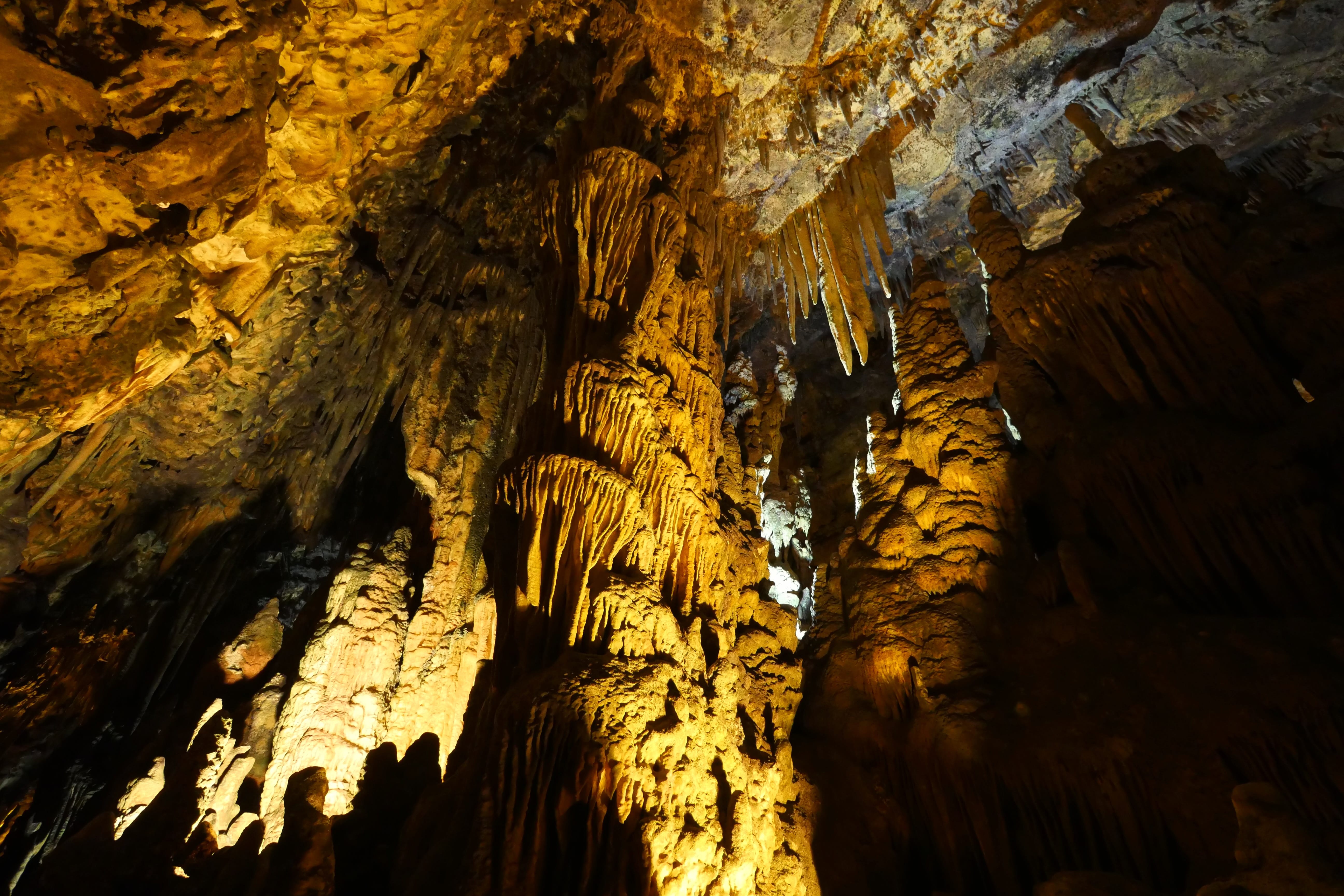 Il est difficile de décrire cette expérience tant elle est riche et impressionnante. La visite ne peut se faire que guidée et il n’est proposé que deux langues: l’anglais et l’italien bien sûr. Nous avions choisi l’itinéraire complet de 3km pour une visite d’environ 1h30 car c’est celui qui nous emmenait jusqu’à la « grotte blanche », le joyau de ces grottes. Il existe un itinéraire plus court d’un kilomètre et qui dure moins d’une heure. A savoir qu’il n’y a pas de différences particulières entre l’un et l’autre si ce n’est cette fameuse « grotte blanche » à la fin du parcours et les photos sont interdites une fois la première partie terminée. C’est bien dommage car nous aurions aimé pouvoir vous montrer ce que les années ont réussi à créer. L’eau s’infiltrant dans la roche, et déposant son calcaire au fil des ans, a bien sûr produit des stalactites, des stalagmites, mais aussi des formations semblables à des rideaux traversés par la lumière projetée dessus. Ce sont des concrétions impressionnantes de par leur finesse et leur couleur. Mais, ce n’est rien comparé à ce qui nous attend au bout du chemin. La « Grotte blanche » s’offre à nous derrière une porte creusée dans la roche après que le spéléologue Anelli se rendit compte qu’il y avait un appel d’air à cet endroit de la grotte. La blancheur de l’albâtre, les colonnes massives semblant soutenir le plafond, les cristaux recouvrant le sol et les milliers d’autres concrétions peuplant ce petit espace, rendent la découverte de cette grotte très émouvante. On aimerait pouvoir y passer davantage de temps, pour pleinement s’imprégner du lieu et en saisir les détails. Ainsi, sa réputation est telle, que cette grotte est définie la plus resplendissante du monde. On peut de notre côté, au moins affirmer qu’il s’agit là de la plus belle que nous ayons pu voir, et nous en avons déjà quelques unes assez renommées à notre actif…