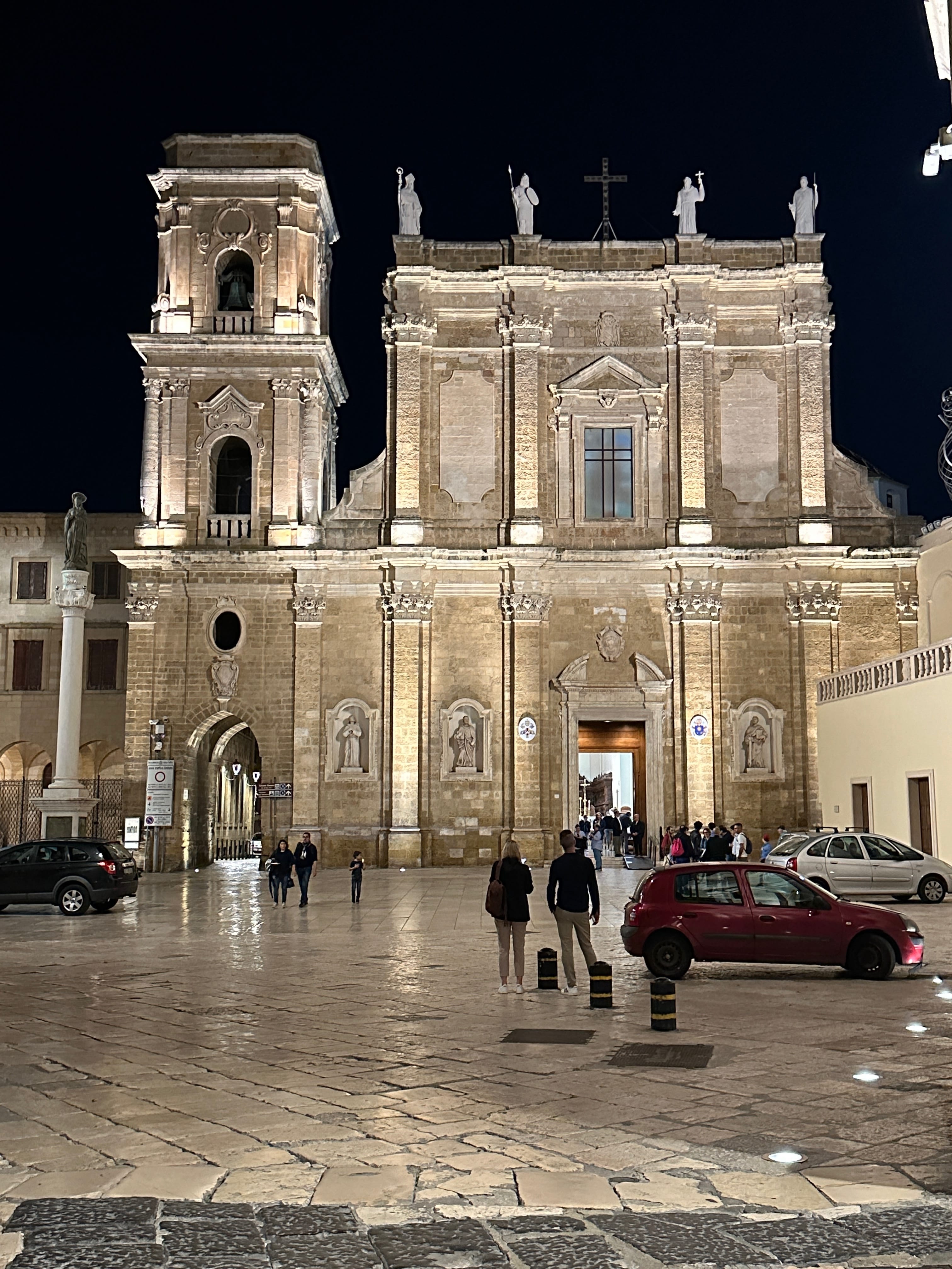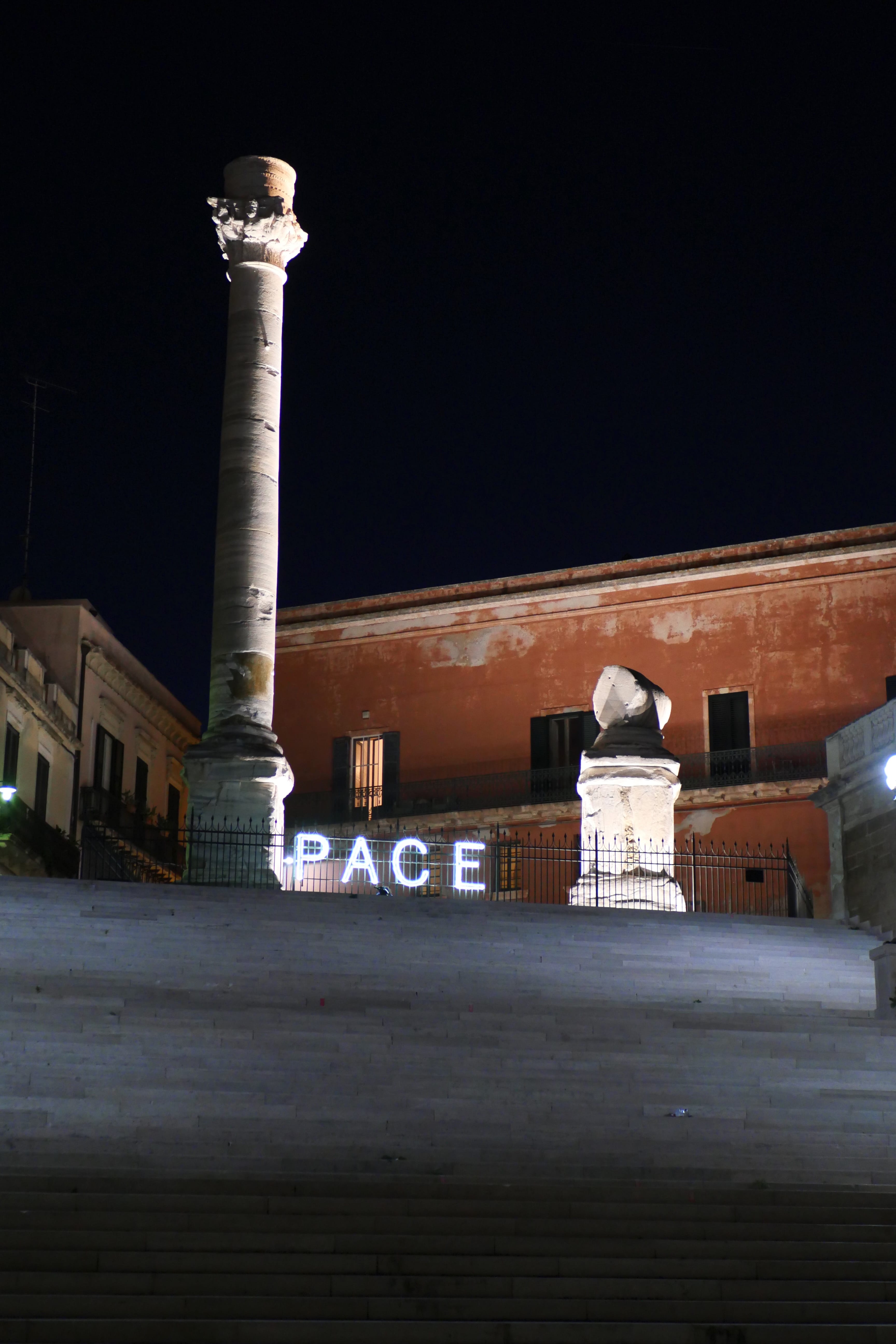 A Brindisi, nous n’y passerons qu’une petite soirée et sans le savoir, au moment du festival international de la Street-Food. Bon très honnêtement, ce n’était pas hyper international mais il y avait quand même de quoi faire et au final nous choisirons quand même des pizzas, parce que croyez-le ou non, nous n’en avions pas encore mangées ! Elles étaient vraiment bonnes et nous les avons doucement éliminées en allant découvrir le Duomo de nuit ainsi que des vestiges romains exposés au Palazzo Granafei-Nervegna. Sans oublier un gelato pour bien finir la journée.