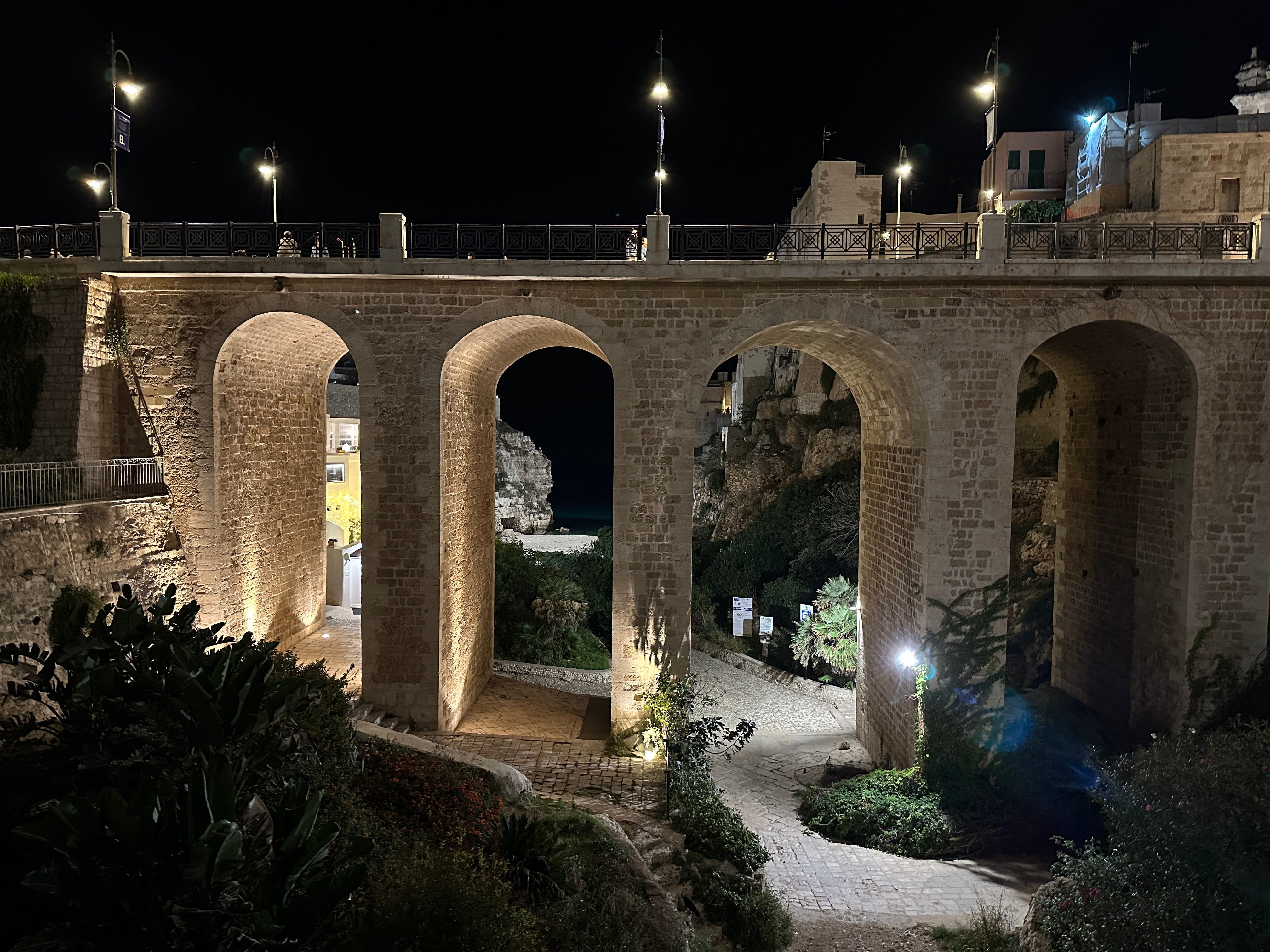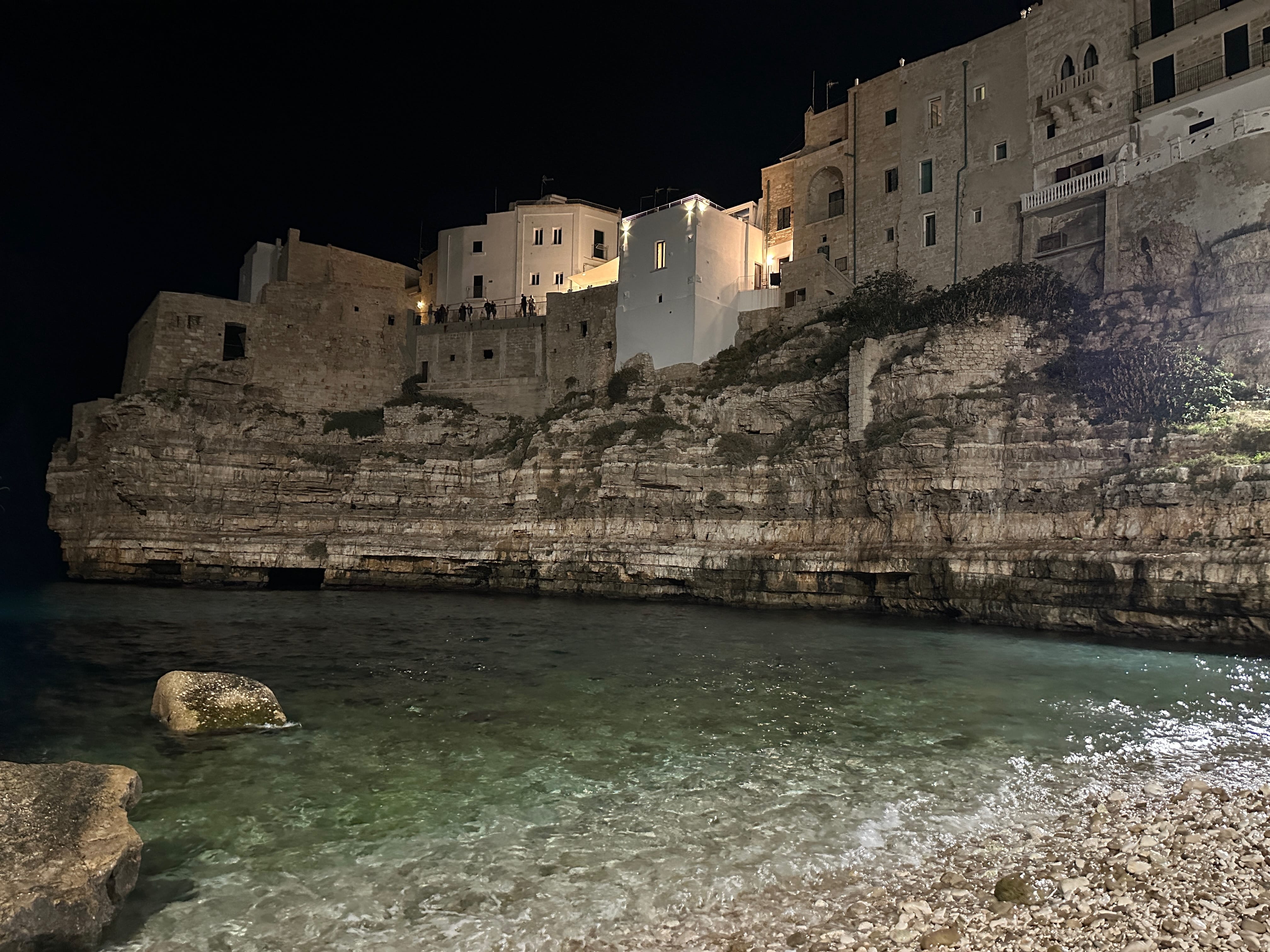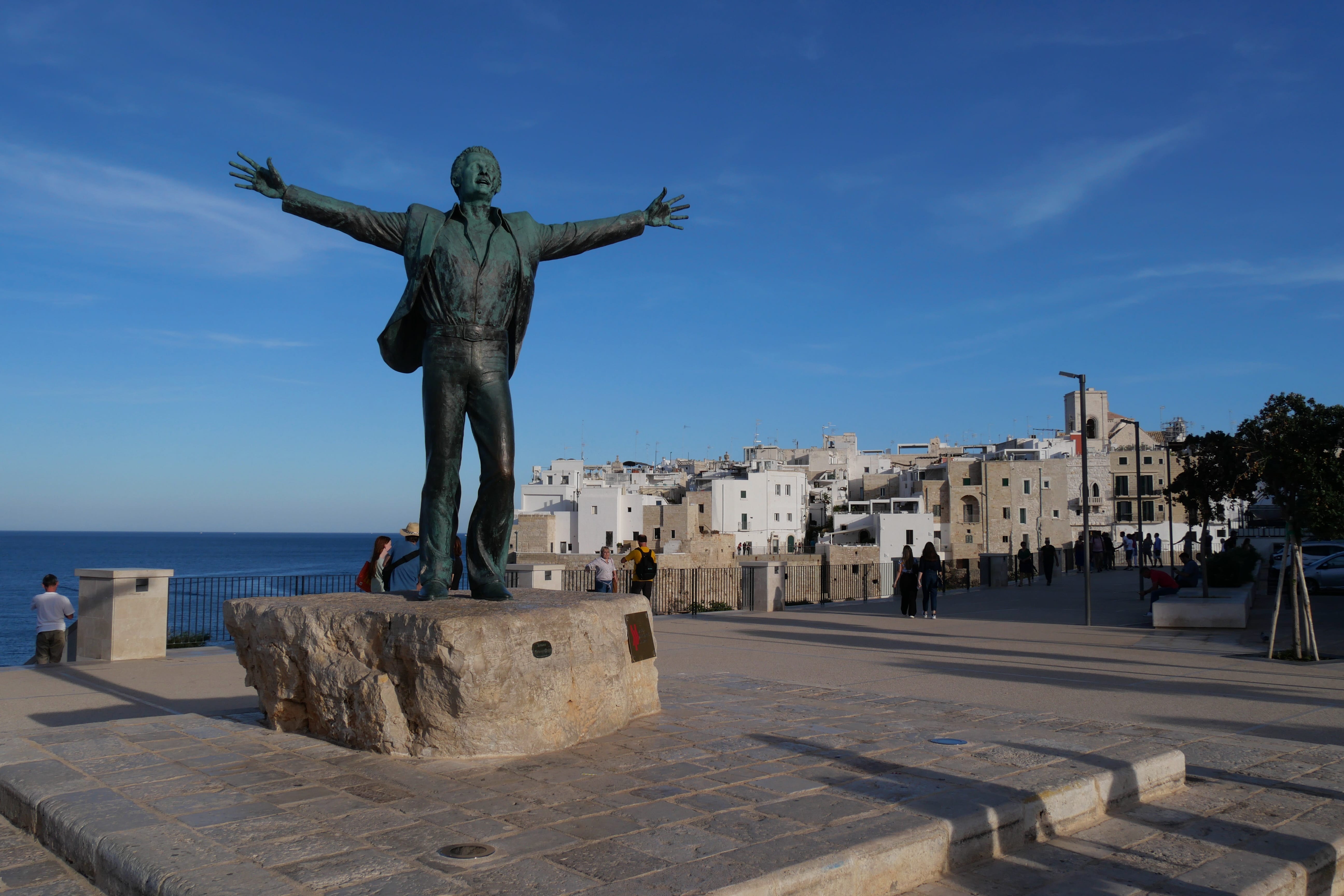 De loin l’une des plus jolies villes du littoral italien, c’est aussi la ville du chanteur de Volare, Domenico Modugno, qui a non seulement sa statue aux premières loges, pour admirer la mer qui s’échoue sur les falaises, mais également les paroles de sa fameuse chanson suspendues au-dessus de la via Roma. Mais Polignano ne peut se résumer qu’à ca. Il y a les petites ruelles pleine de charmes, les jolis monuments historiques tout autour de la petite place au cœur de la ville, mais également toutes les petites boutiques et restaurants de spécialités locales qui lui confèrent une atmosphère sereine où il y fait bon passer du temps. Nous recommanderons Bella ‘Mbriana pour y manger, avec un service rapide et des plats copieux et bons. N’hésitez pas avant ou après à vous rapprocher des falaises afin de profiter des magnifiques points de vue, qu’ils soient sur la ville ou sur le littoral. Avec un tout petit peu de courage, il sera même possible de descendre dans la Lama Monachile, où une petite plage de galets permettra à ceux qui le souhaitent d’aller se baigner avec une vue imprenable sur la ville tout autour. Attention toutefois, la proximité avec les rochers peut en rebuter certains, nous n’aurons d’ailleurs pas tenté l’expérience, mais c’est tout de même à voir.