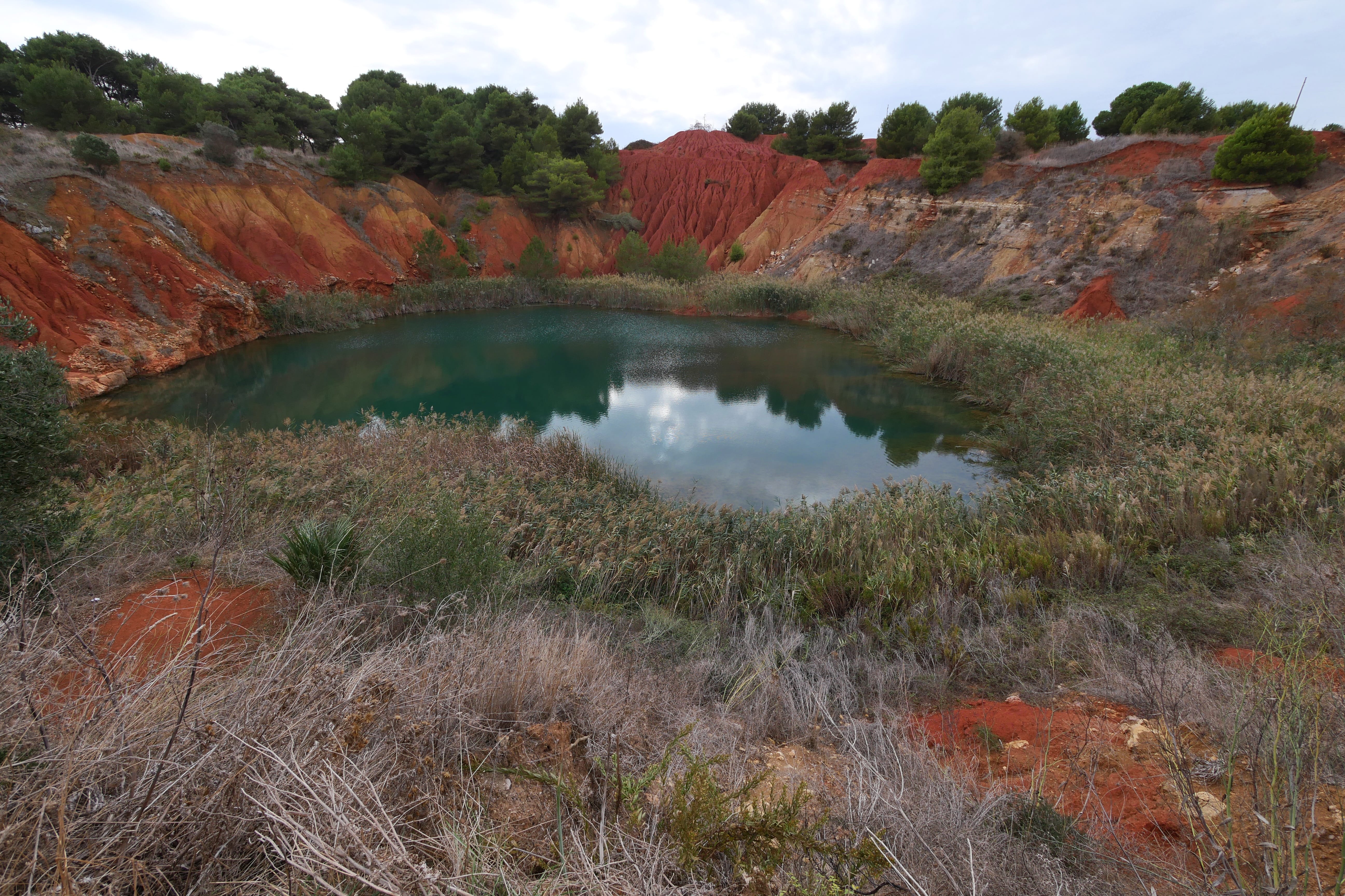 A quelques kilomètres de là, mais il faut le savoir, se trouvent la Cava di Bauxite (carrière de Bauxite). C’est un ancien site d’extraction dont les couleurs aujourd’hui sont éclatantes. Un lac s’est formé avec une couleur bleue profonde qui contraste avec les roches rouges qui l’entourent et surmontées de la verdure de la nature.