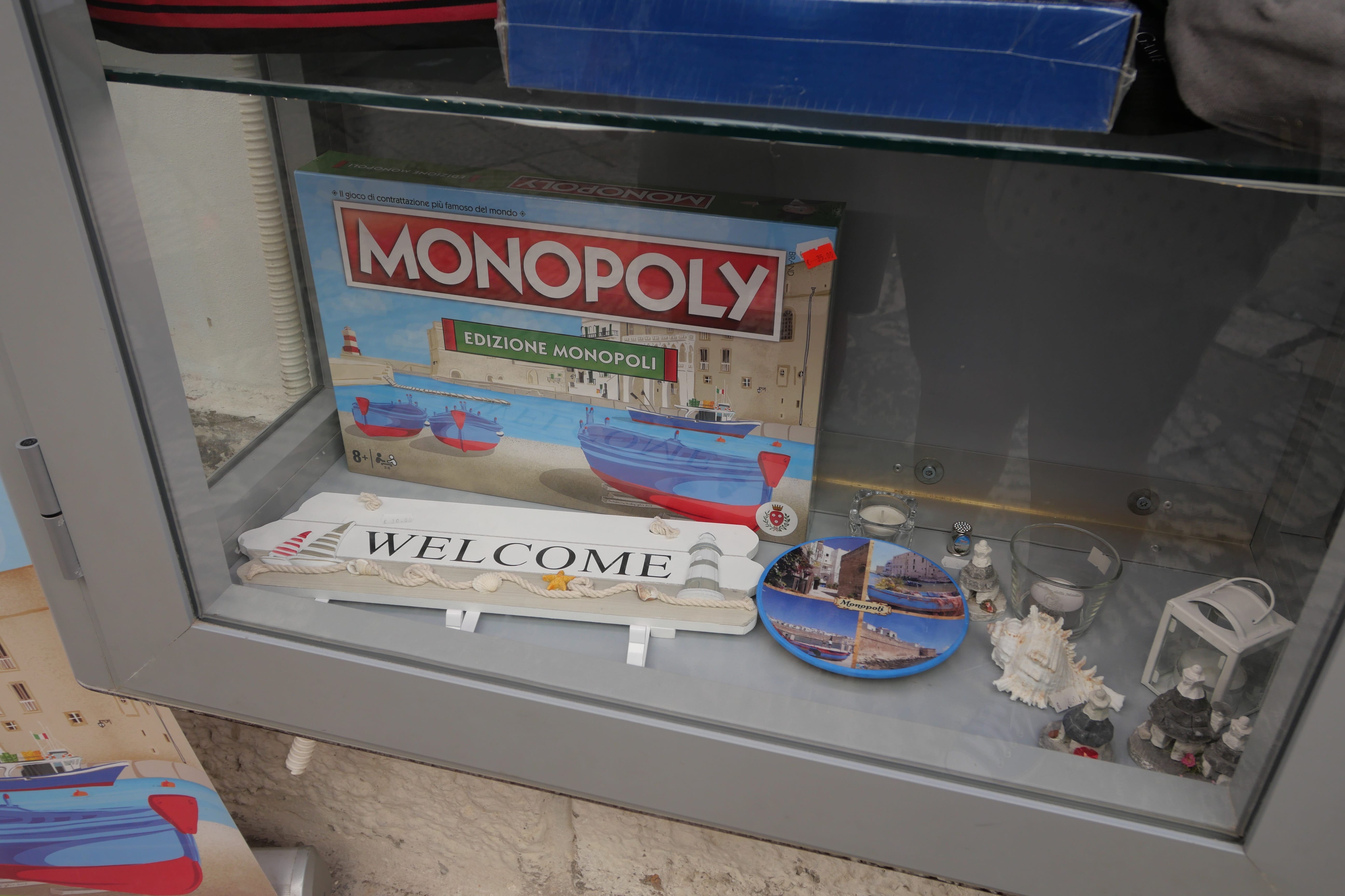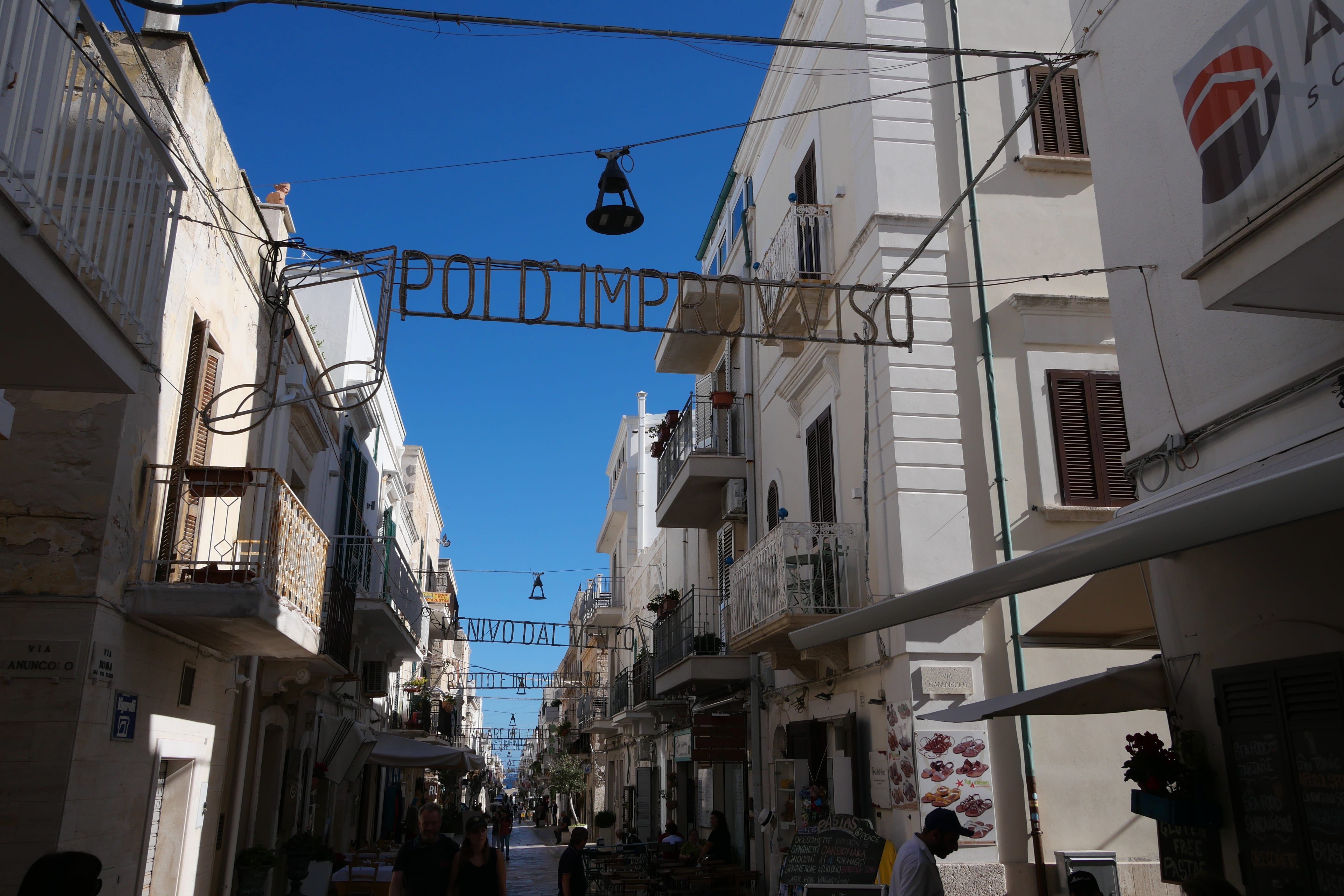 Monopoli n’est pas très loin de Polignano a Mare, sa « grande sœur ». Se promener dans son petit centre historique n’est pas déplaisant, loin de là. On soulignera le petit clin d’œil au jeu éponyme, qui a ici son édition spéciale et adaptée à cette petite ville en bord de mer. Le plus joli passage selon nous arrive lorsqu’on parvient à s’extirper d’une manière ou d’une autre du cœur de ville pour enfin apercevoir les eaux limpides du petit port très charmant, que l’on peut facilement longer jusqu’à arriver au château. De là, la mer s’étend ensuite à perte de vue, et il est possible de la longer aussi longtemps que le cœur vous en dira. Nous concernant, nous avons préféré replonger dans les petites ruelles du centre, ombragées et étriquées, afin de rejoindre la voiture que nous avions laissée autour de la grande place centrale de la ville « moderne », à proximité directe du centre historique.