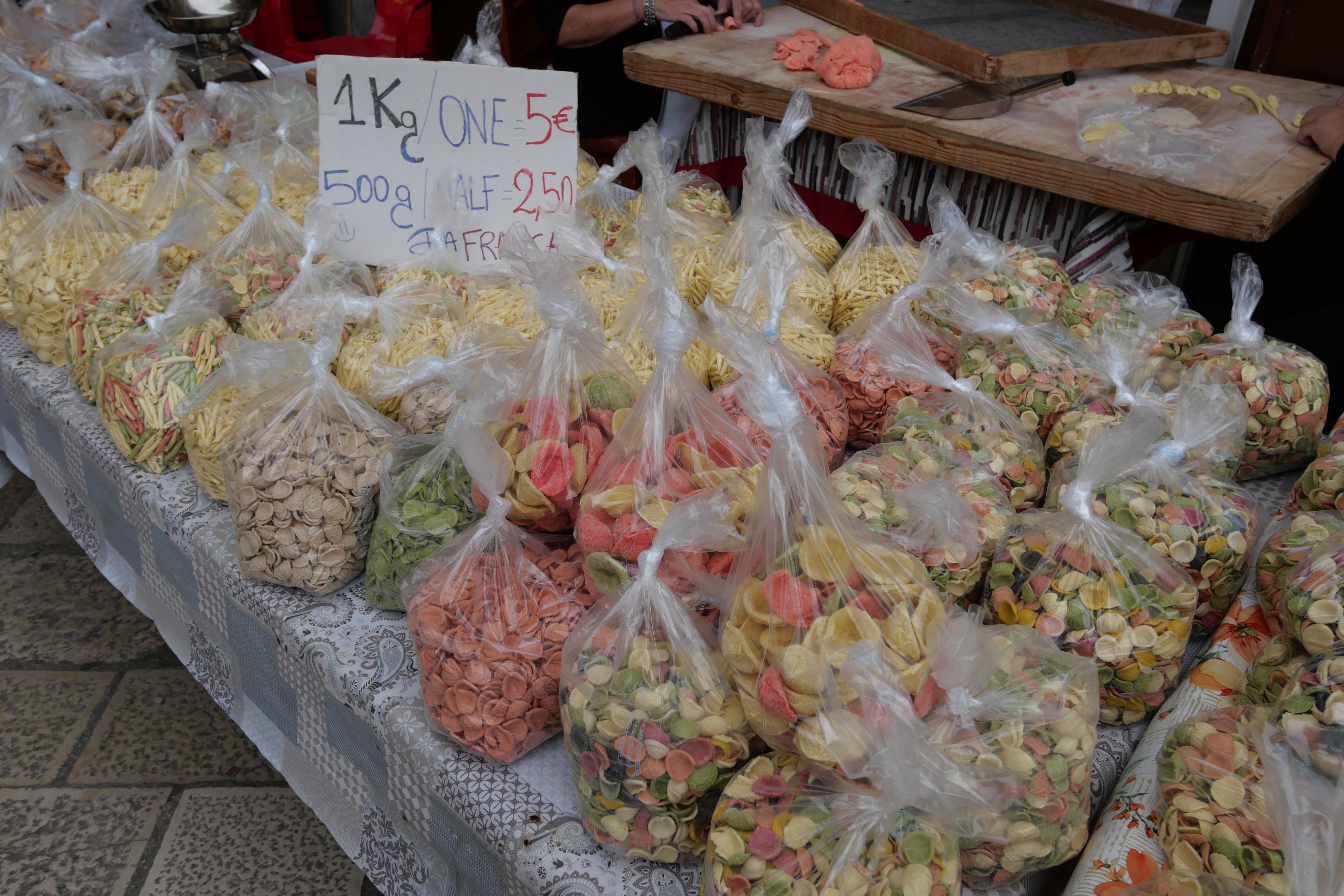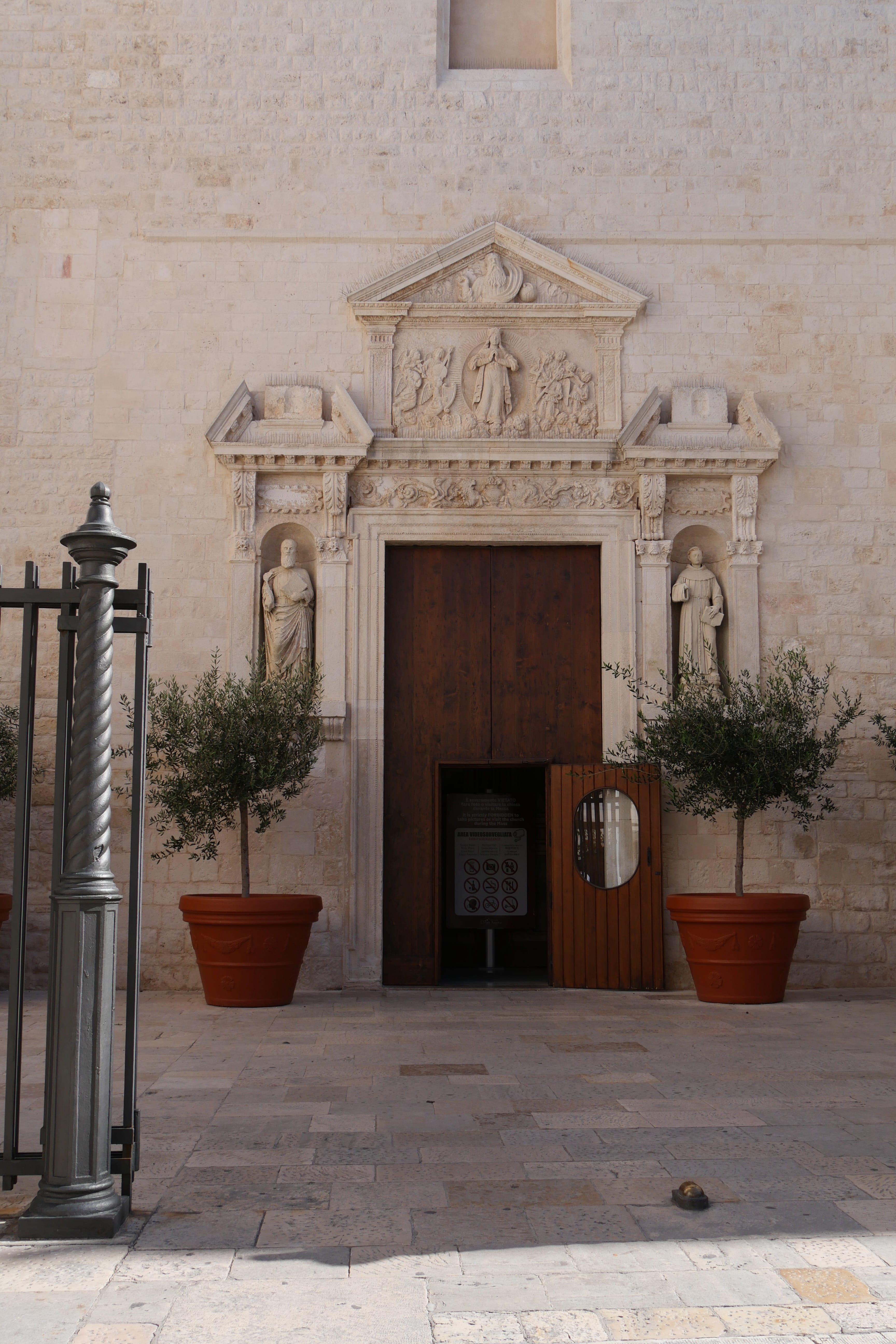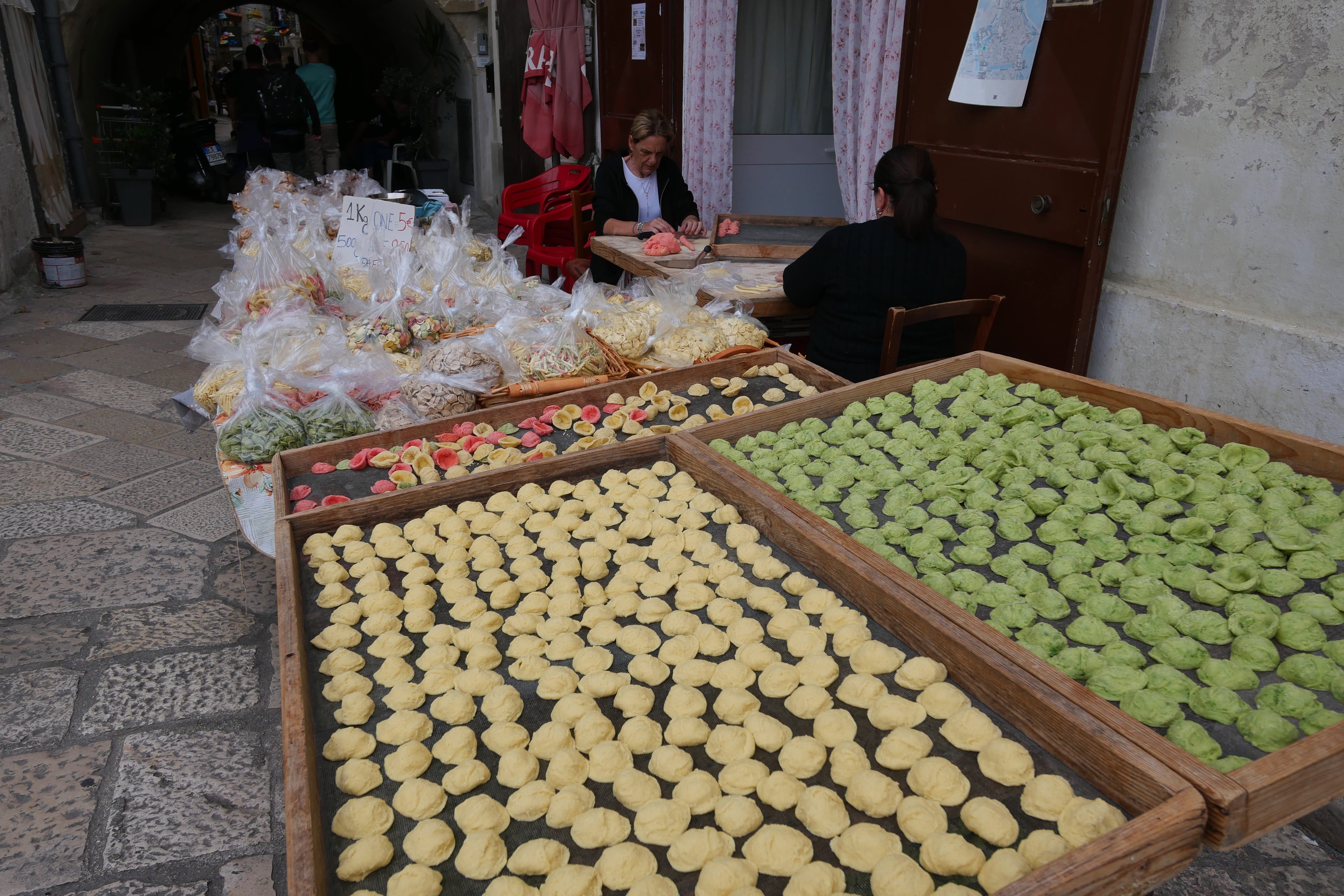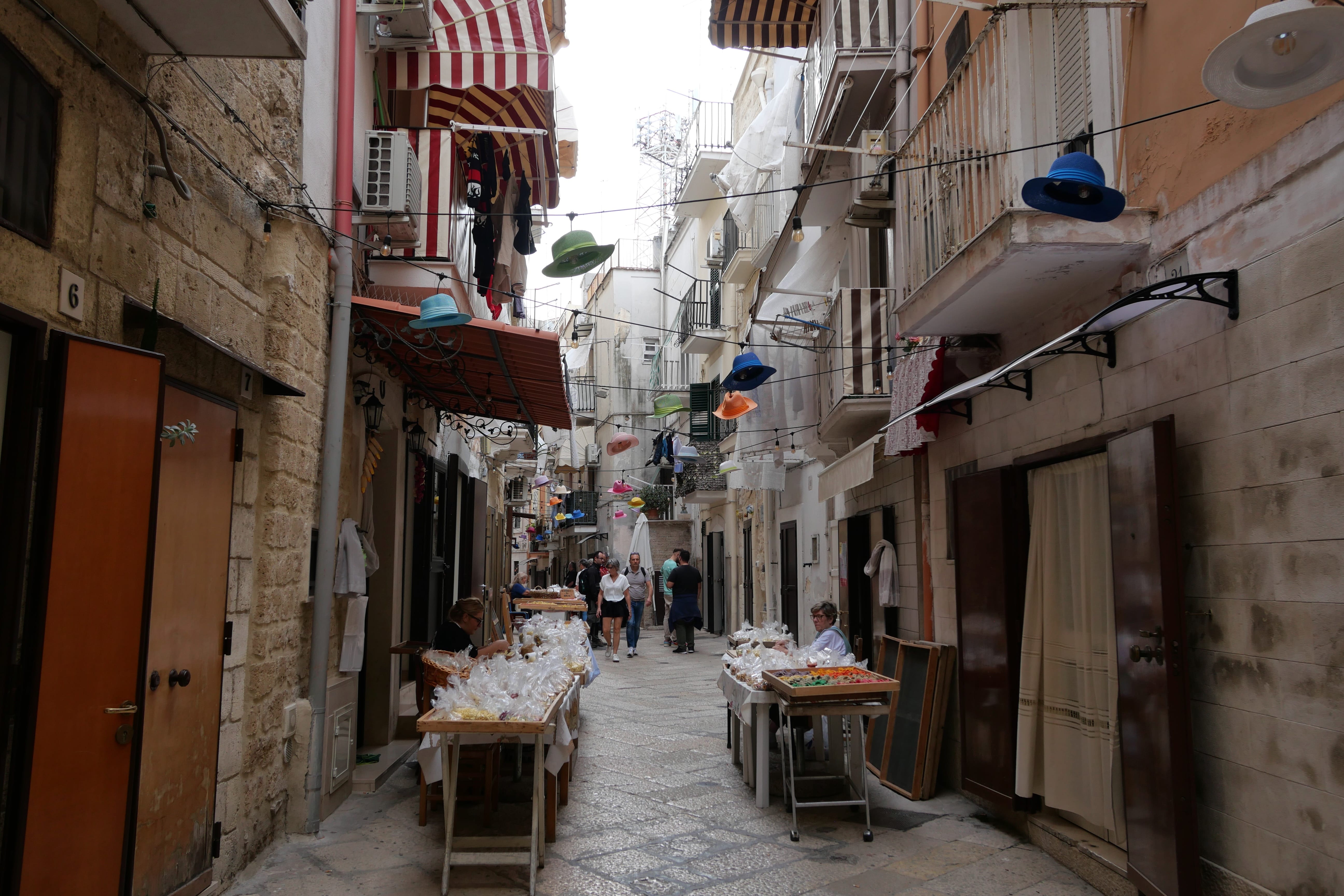 Dernier arrêt avant le retour à l’aéroport, nous voulions tout de même nous faire un avis sur Bari, la plus grande ville traversée pendant ce RoadTrip. Nous n’avions rien prévu en particulier, et avons improvisé en nous garant face au Palazzo del Governo, qui s’est avéré être une option assez bonne étant donné la proximité à la fois du centre historique, et des rues piétonnes et commerciales de l’autre côté. Nous rentrerons dans le cœur de ville en allant jusqu’au Teatro Margherita avant de traverser la Piazza Mercantile. En points d’intérêt, nous pourrons citer la Basilica Pontificia San Nicola et la Basilica Cattedrale Metropolitana Primaziale San Sabino et les ruines de Santa Maria del Buon Consiglio. Si vous reliez ces trois points, vous passerez forcément par plein de jolies ruelles, sous des passages couverts, devant des vitrines de boutiques locales, et même probablement devant des dames préparant des orecchiette ou d’autres variétés de pâtes, les laissant ensuite sécher sur d’immenses plaques à la vue des passants. Nous en achèterons d’ailleurs et ne serons pas déçus par ces pâtes fraîches préparées artisanalement. N’hésitez d’ailleurs pas à prendre le temps d’admirer la dextérité de ces dames, les pâtes s’enchaînant sans même que vous ne puissiez saisir le geste particulier requis.