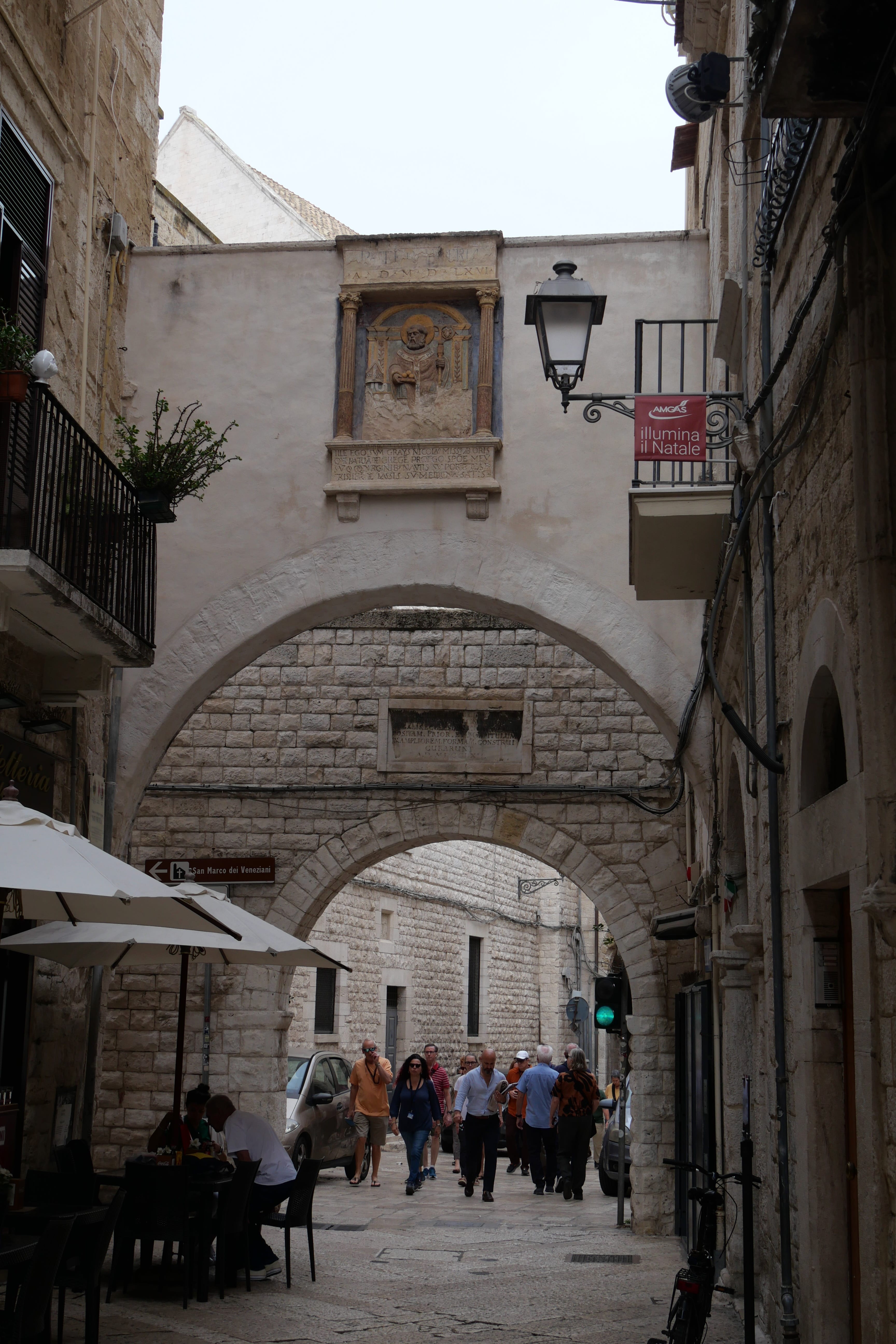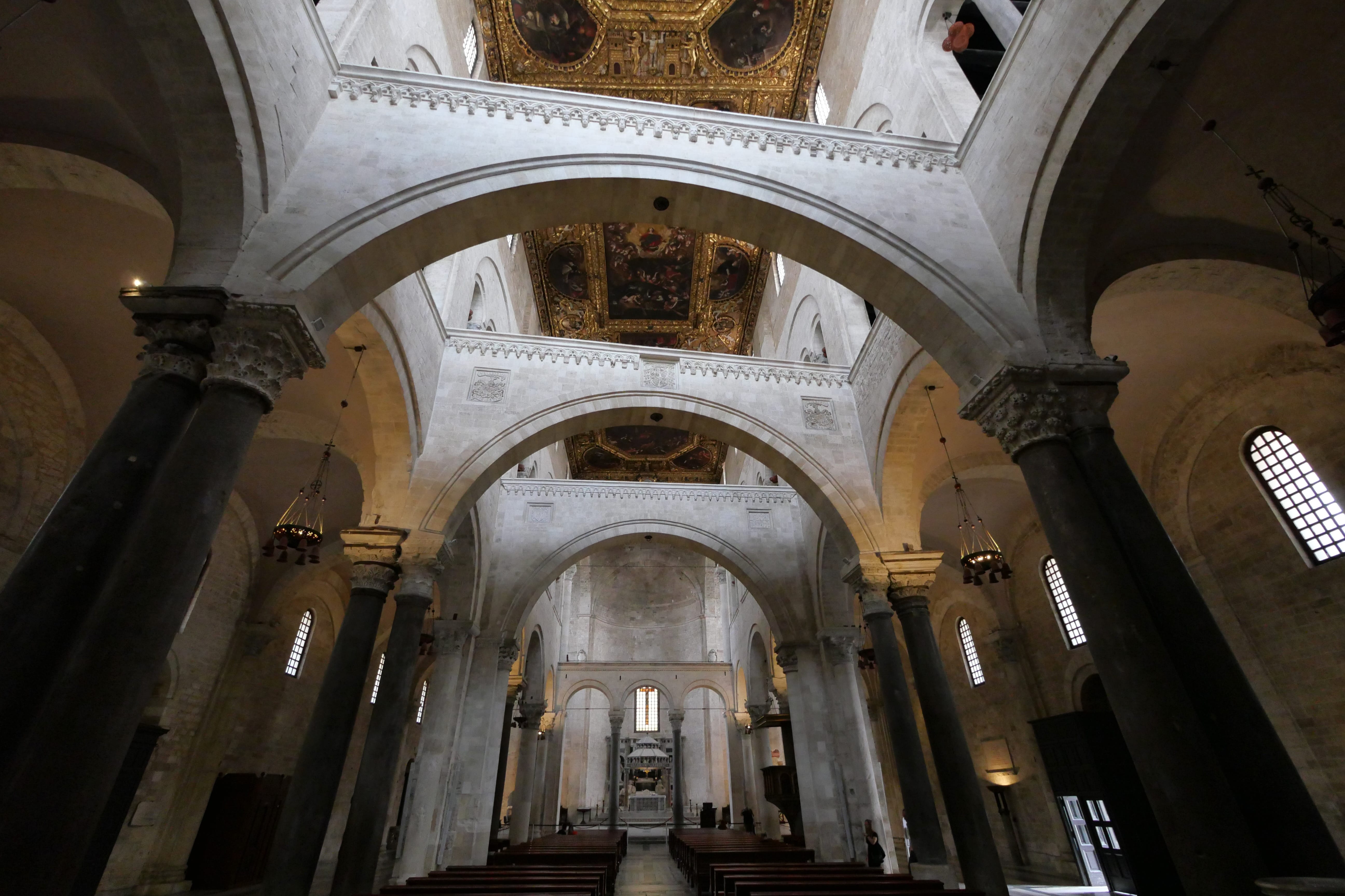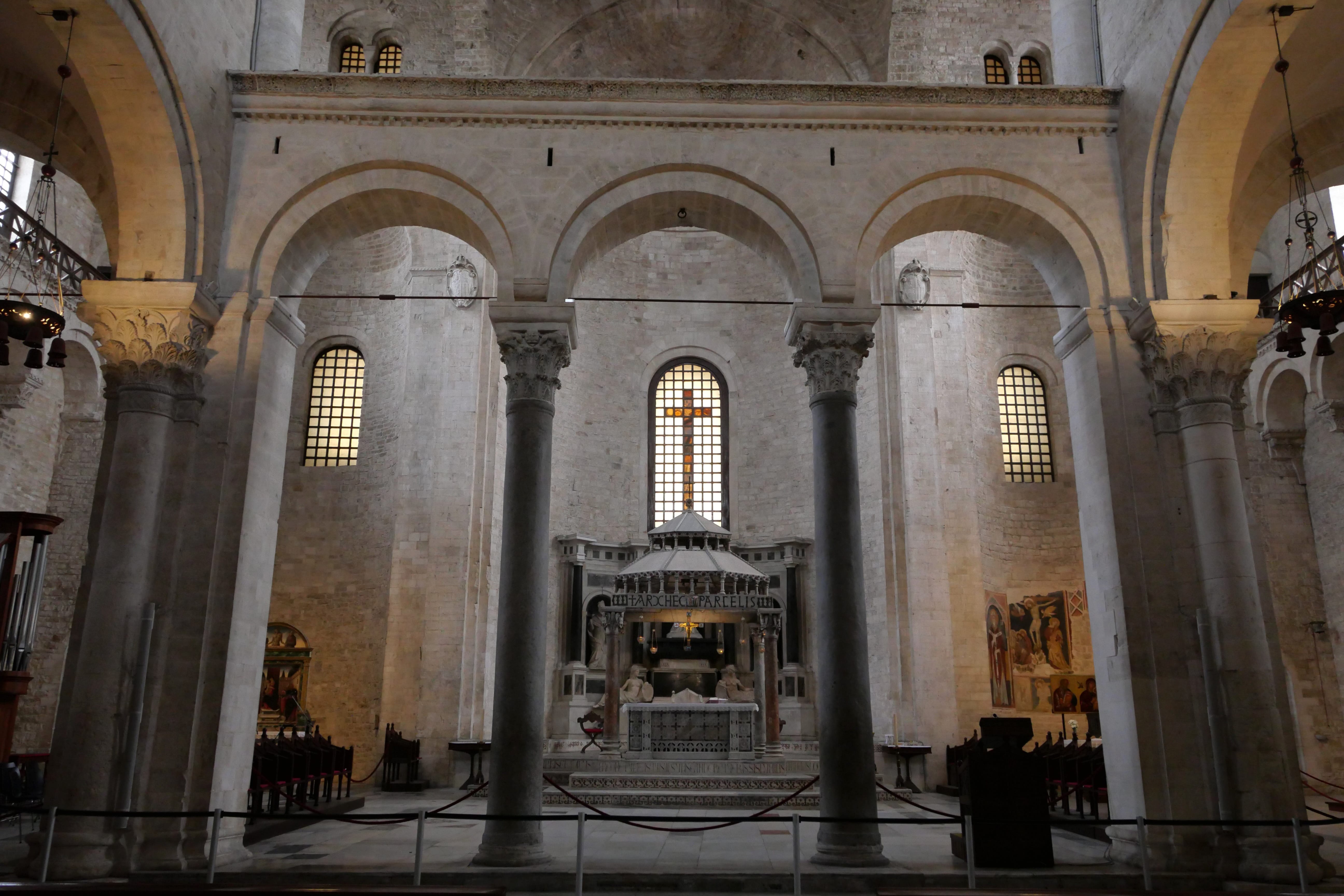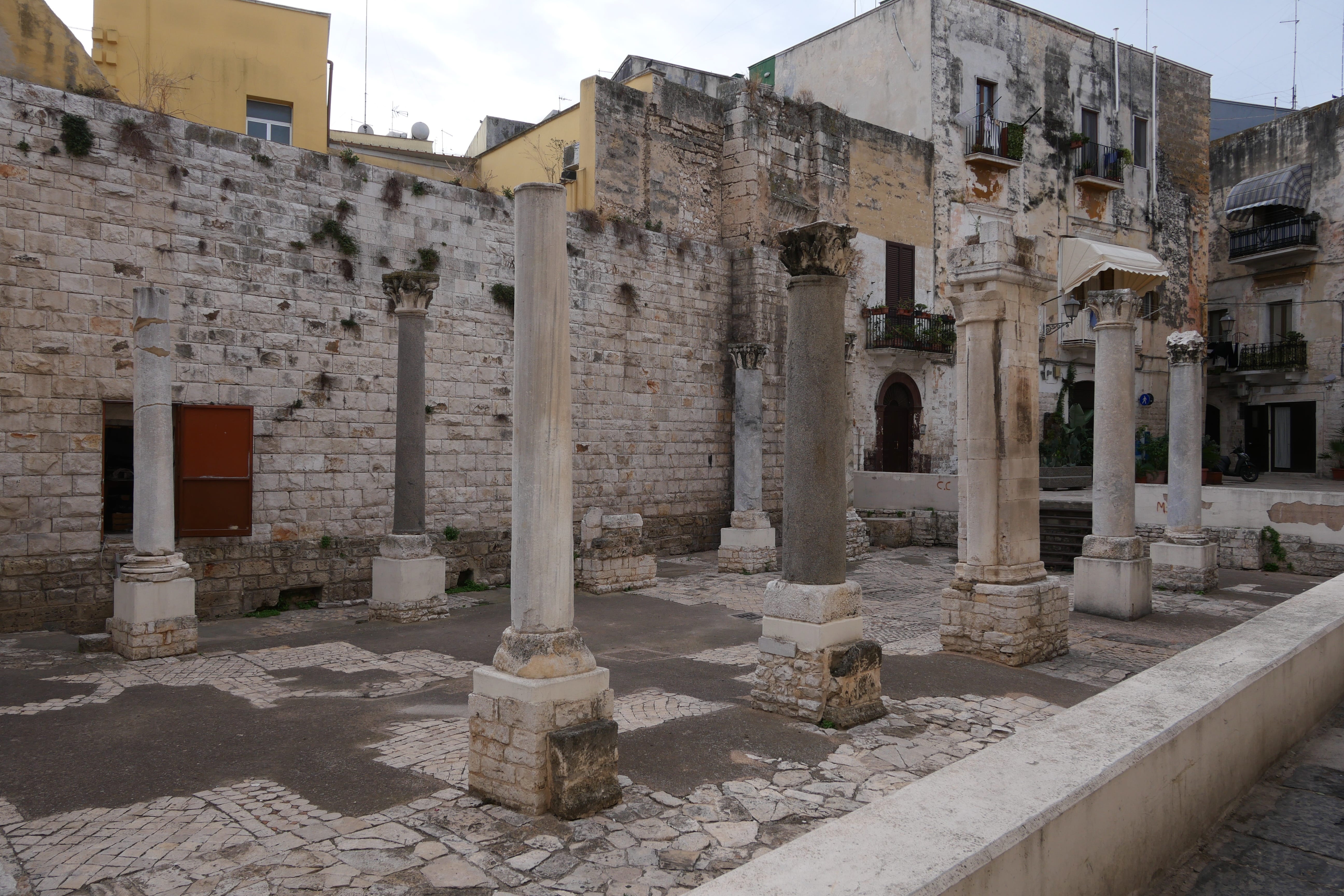 Dernier arrêt avant le retour à l’aéroport, nous voulions tout de même nous faire un avis sur Bari, la plus grande ville traversée pendant ce RoadTrip. Nous n’avions rien prévu en particulier, et avons improvisé en nous garant face au Palazzo del Governo, qui s’est avéré être une option assez bonne étant donné la proximité à la fois du centre historique, et des rues piétonnes et commerciales de l’autre côté. Nous rentrerons dans le cœur de ville en allant jusqu’au Teatro Margherita avant de traverser la Piazza Mercantile. En points d’intérêt, nous pourrons citer la Basilica Pontificia San Nicola et la Basilica Cattedrale Metropolitana Primaziale San Sabino et les ruines de Santa Maria del Buon Consiglio. Si vous reliez ces trois points, vous passerez forcément par plein de jolies ruelles, sous des passages couverts, devant des vitrines de boutiques locales, et même probablement devant des dames préparant des orecchiette ou d’autres variétés de pâtes, les laissant ensuite sécher sur d’immenses plaques à la vue des passants. Nous en achèterons d’ailleurs et ne serons pas déçus par ces pâtes fraîches préparées artisanalement. N’hésitez d’ailleurs pas à prendre le temps d’admirer la dextérité de ces dames, les pâtes s’enchaînant sans même que vous ne puissiez saisir le geste particulier requis.