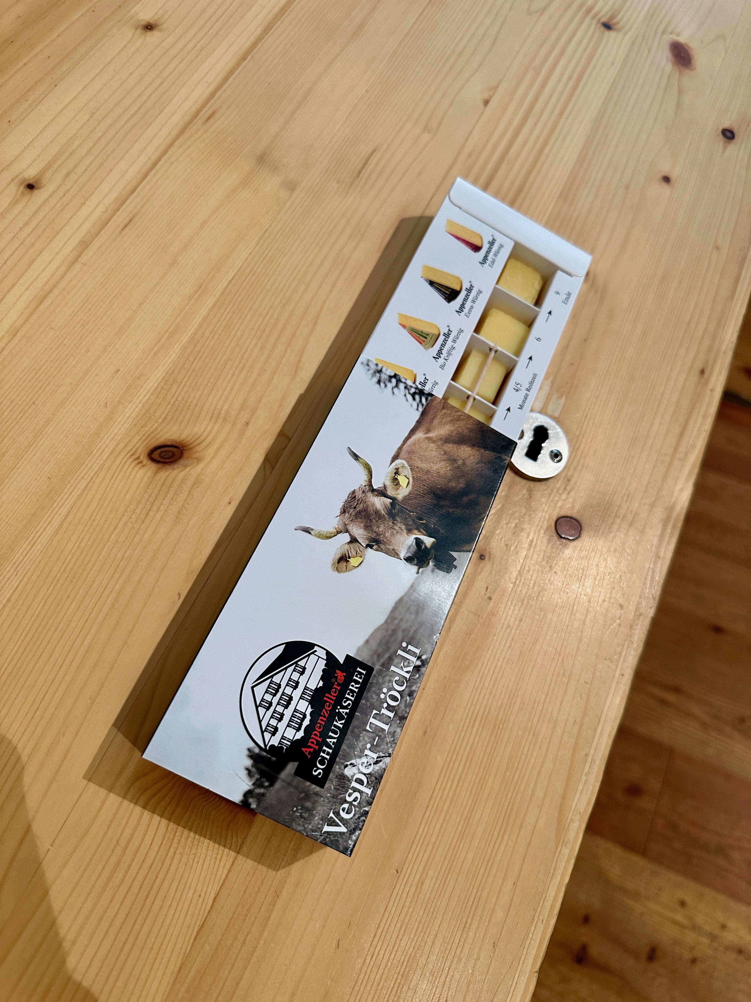 Nous faisons encore un petit arrêt sur la route, non loin d’Appenzell, à la fromagerie produisant le fromage Appenzeller (assez proche du comté finalement, pour ceux qui souhaiteraient un point de comparaison). Incluse dans la BCP, la visite est en autonomie, avec un parcours disponible en plusieurs langues, directement sur le smartphone, en wifi, et avec des QR-codes à scanner. Rien à redire, c’est fluide et sympathique, et à cela s’ajoute une petite boîte de dégustation, comprenant 5 fromages différents, que l’on sera amenés à déguster au fur et à mesure de la visite, du plus doux au plus corsé. Il fallait y penser, on a beaucoup aimé l’idée, pouvant ainsi se faire un avis sans forcément avoir besoin d’acheter ensuite (même si comme nous, la plupart finissent quand même par céder à la tentation !).