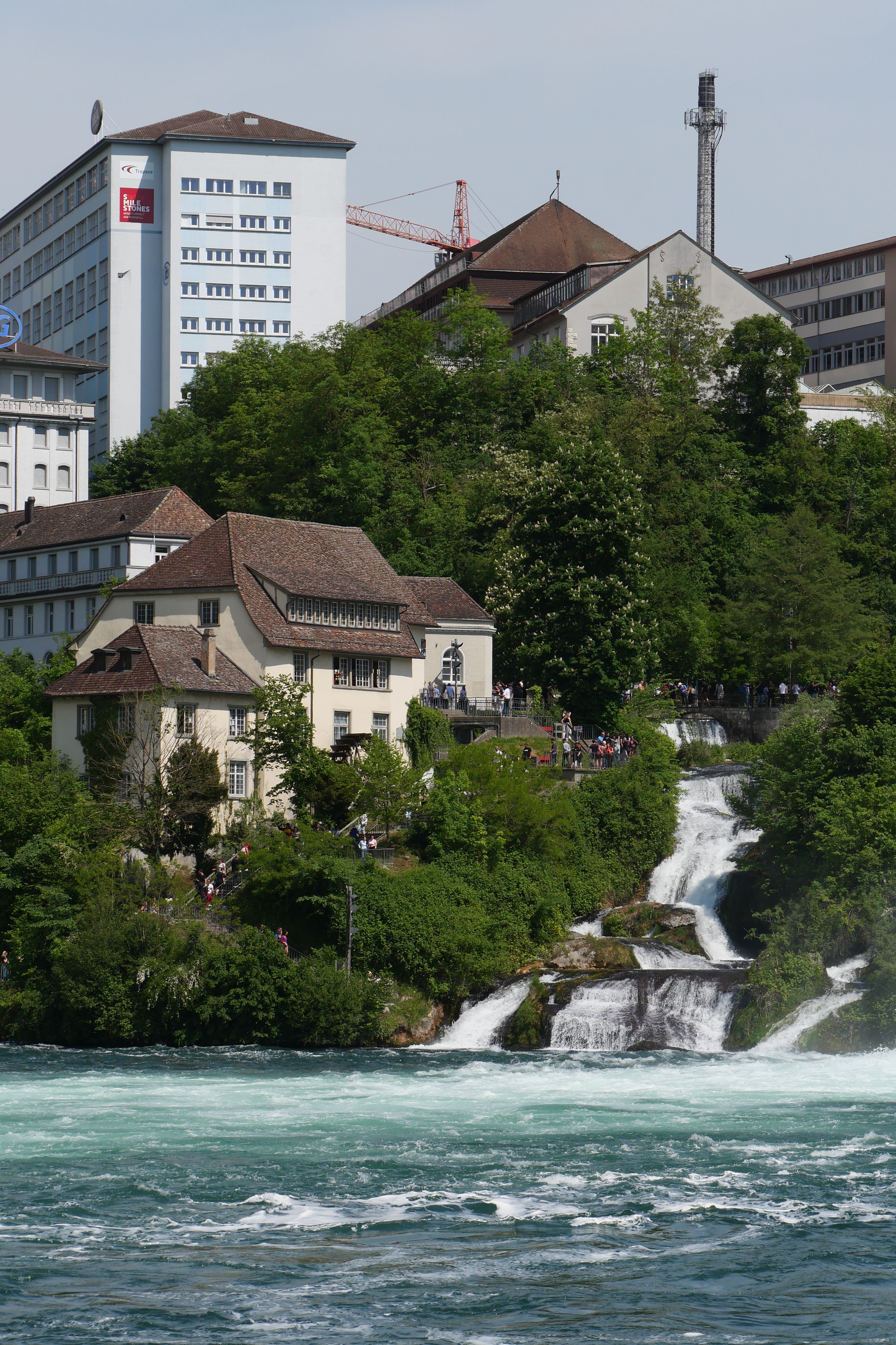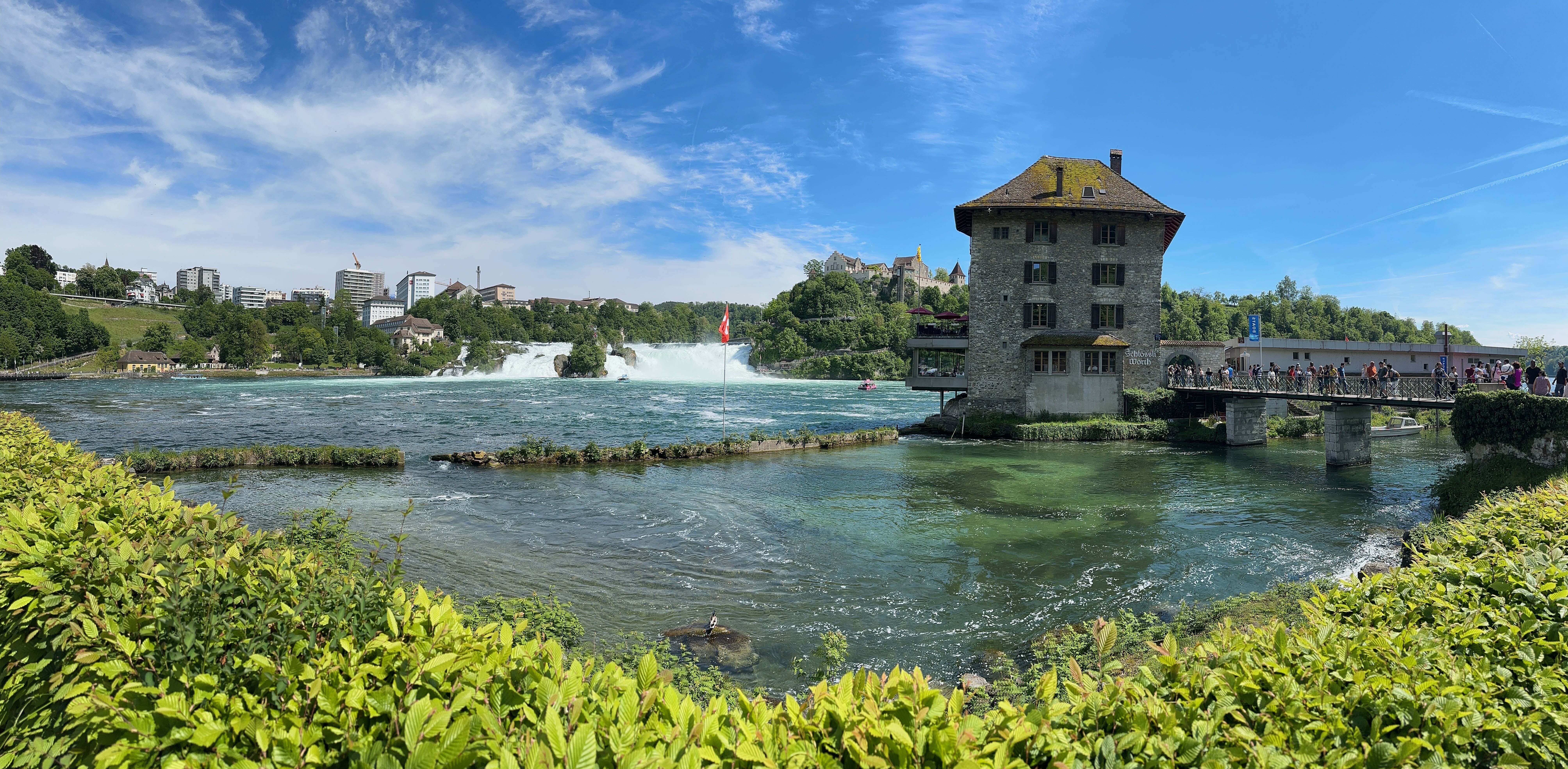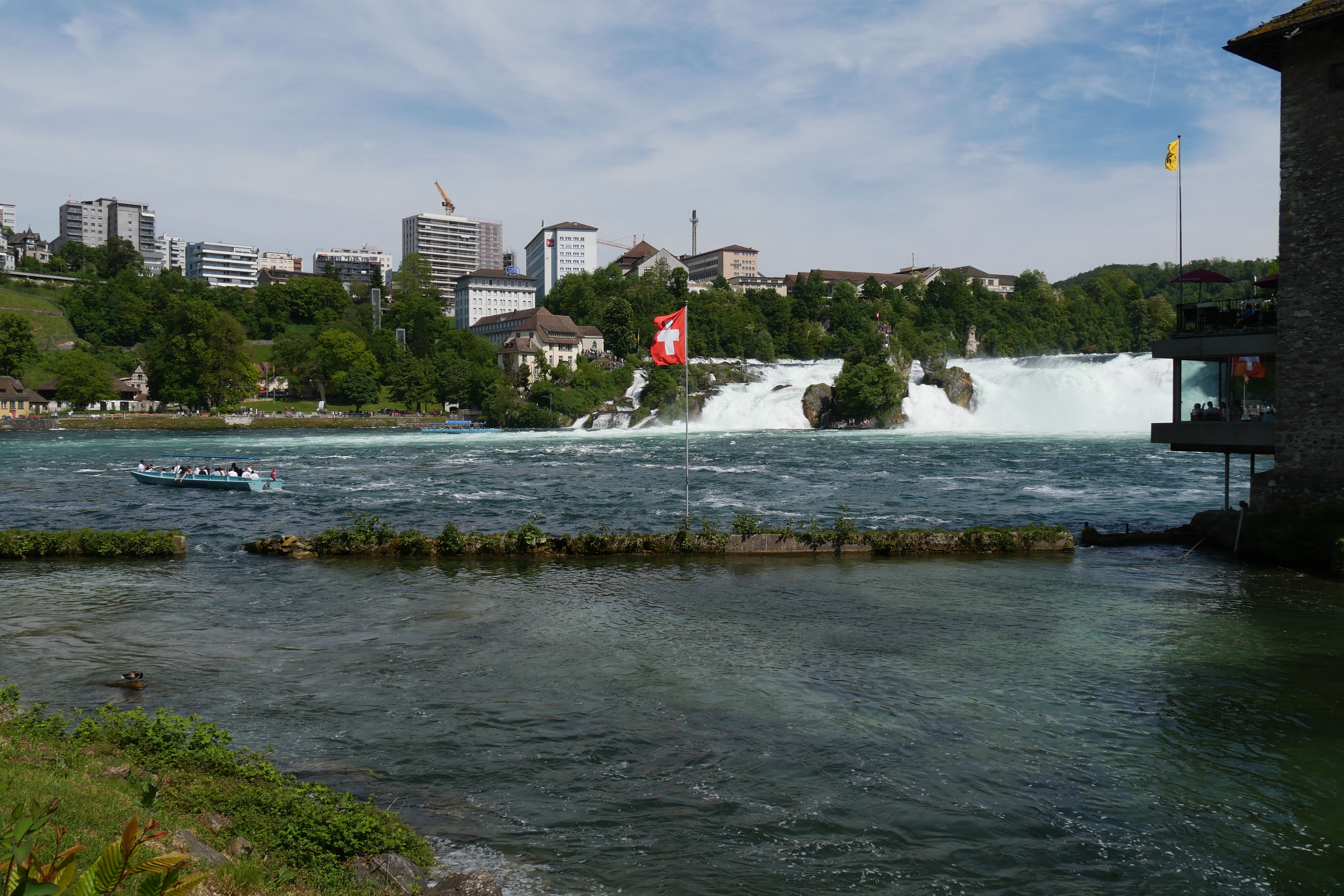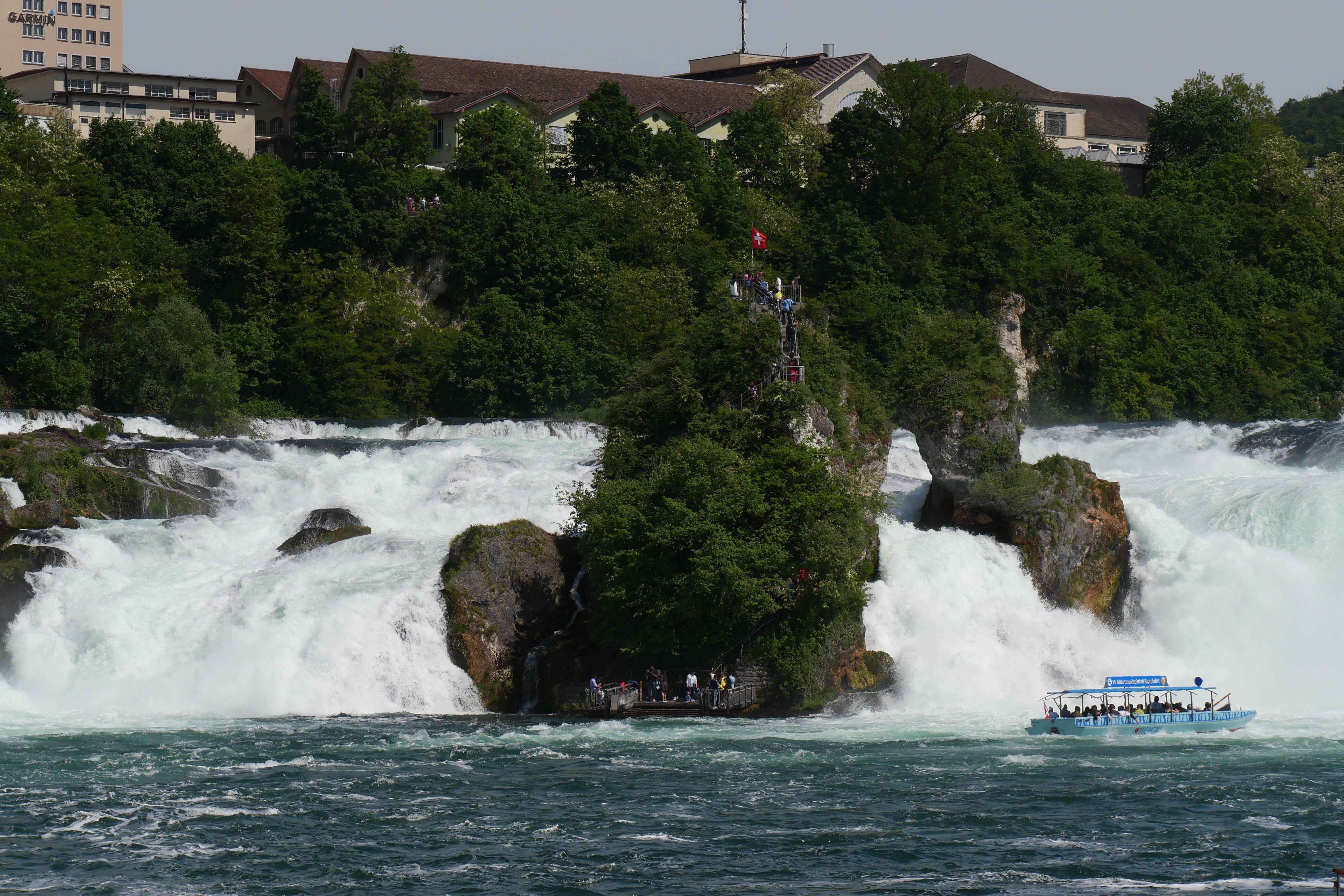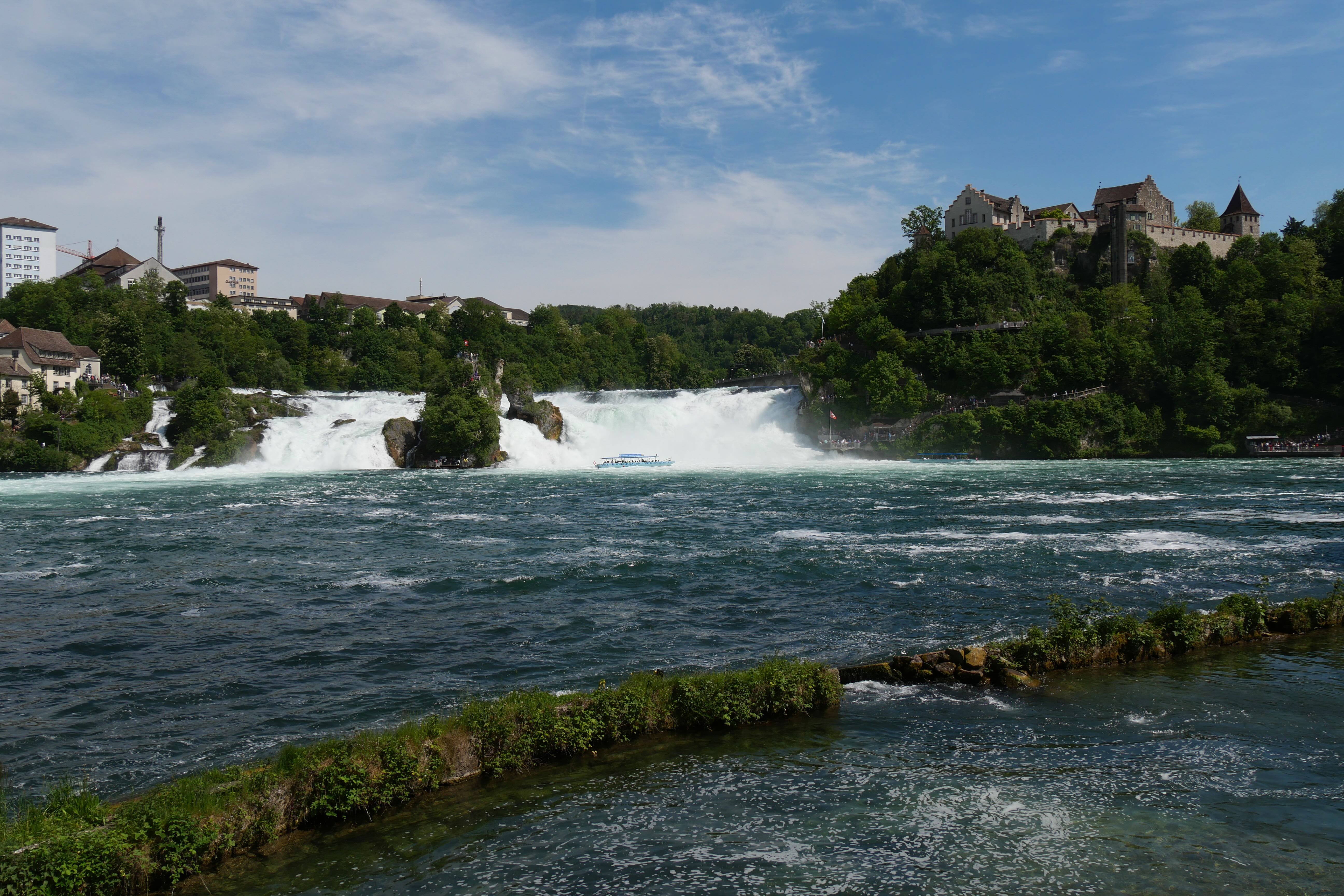 Dernier arrêt avant le retour en Lorraine, les chutes du Rhin. Nous en avions entendu parler depuis un moment, en avions vu quelques clichés, et les gardions dans un coin de notre tête. C’est finalement au retour de notre petite escapade au lac de Constance que nous nous y arrêterons, traversant une dernière fois la frontière Suisse, car oui, celles-ci se trouvent dans une petite enclave. Pour y aller en voiture, trois parkings se situent à proximité directe, tous au même tarif unique de 6€, peu importe la durée… Nous n’avons pas trop hésité, ne voulant y passer qu’une heure au plus, une longue route de retour nous attendant encore. Les chutes apparaissent assez rapidement une fois les arbres ombrageant les parkings passés, et il est possible de les apercevoir sous tous les angles, soit en longeant le rivage jusqu’à pouvoir les contourner en amont, soit en s’offrant une petite promenade en bateau pour les voir au plus près. Ayant déjà vécu cette expérience aux impressionnantes chutes du Niagara, nous ne ferons qu’observer ces chutes depuis la rive en aval, bien fatigués par ces cinq jours de visite et n’ayant pas l’impression d’en voir énormément plus depuis d’autres points de vue. On recommande dans tous les cas une petite demi-journée pour en faire le tour complet, mais il est aussi possible au final d’en avoir un bon aperçu en une petite heure sur place. C’est ainsi que s’achève notre séjour riche en pays traversés, en activités variées et en paysages contemplés.