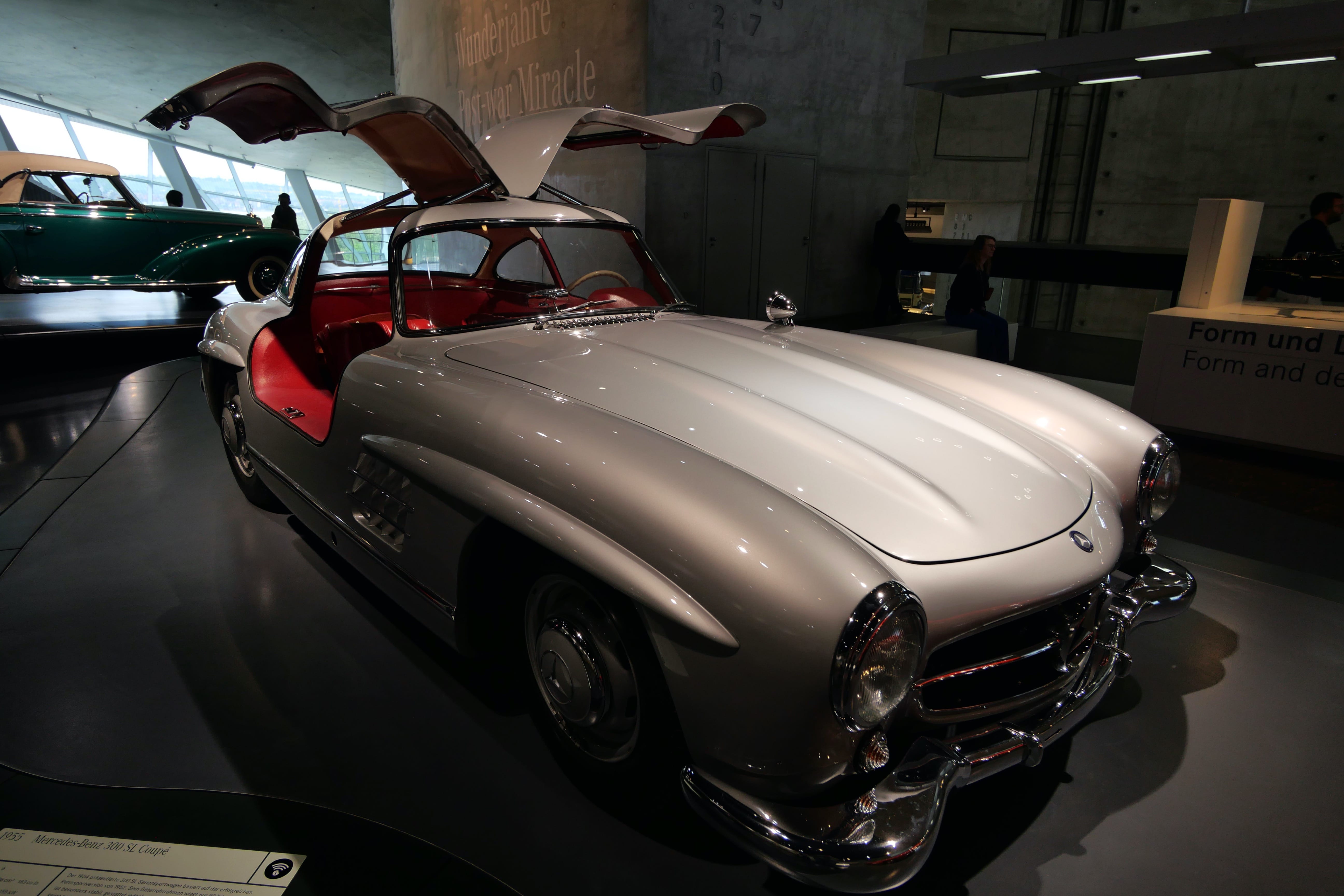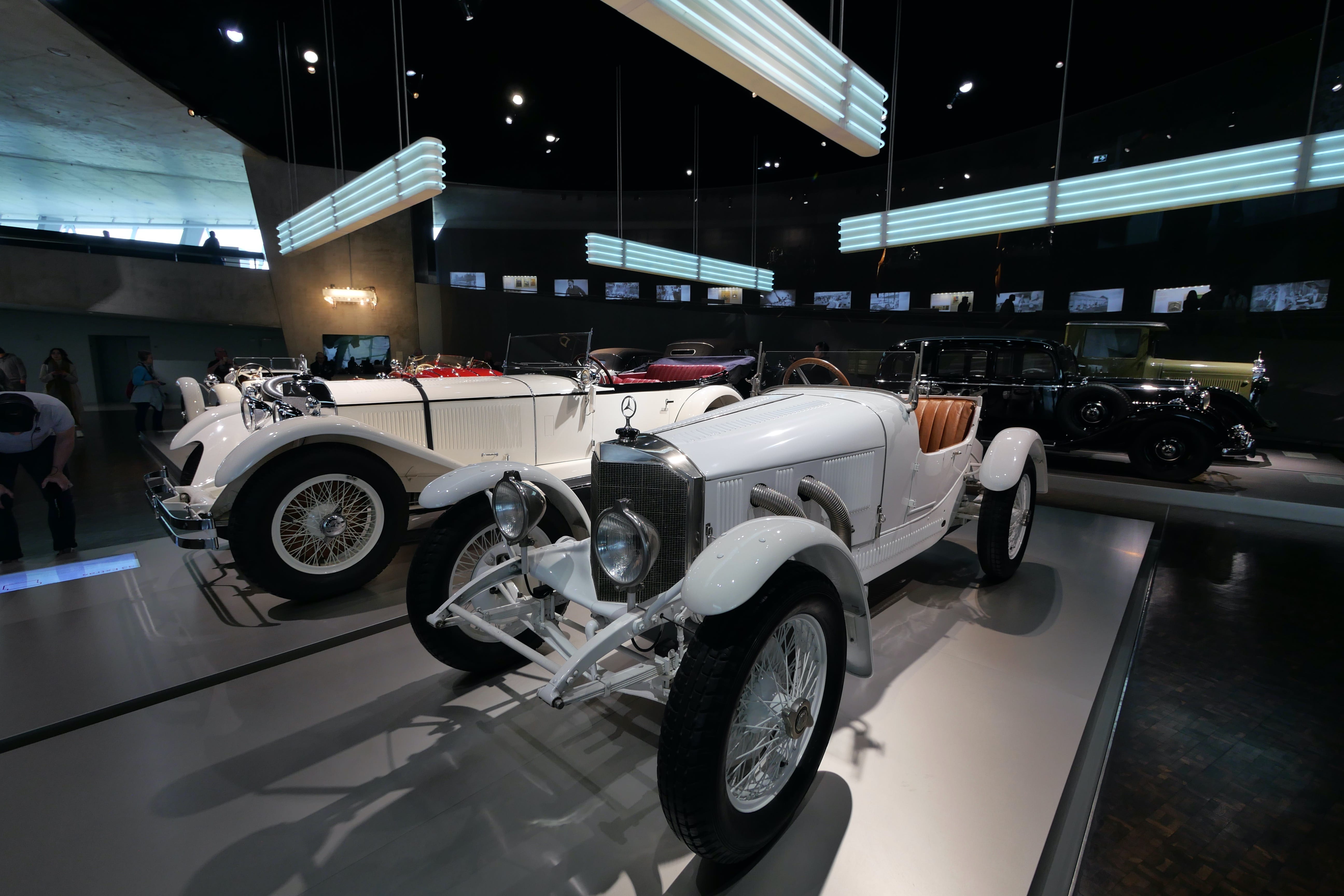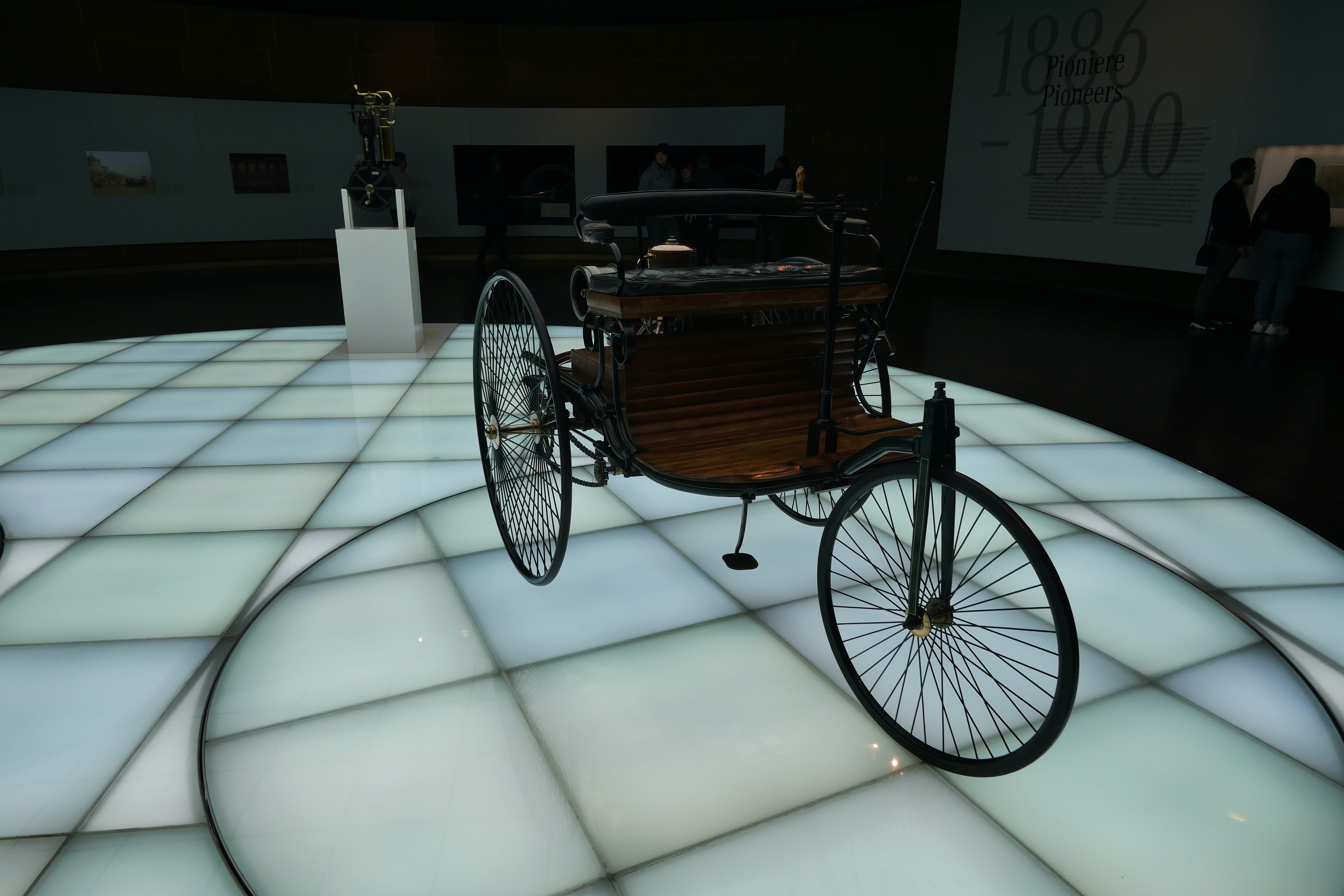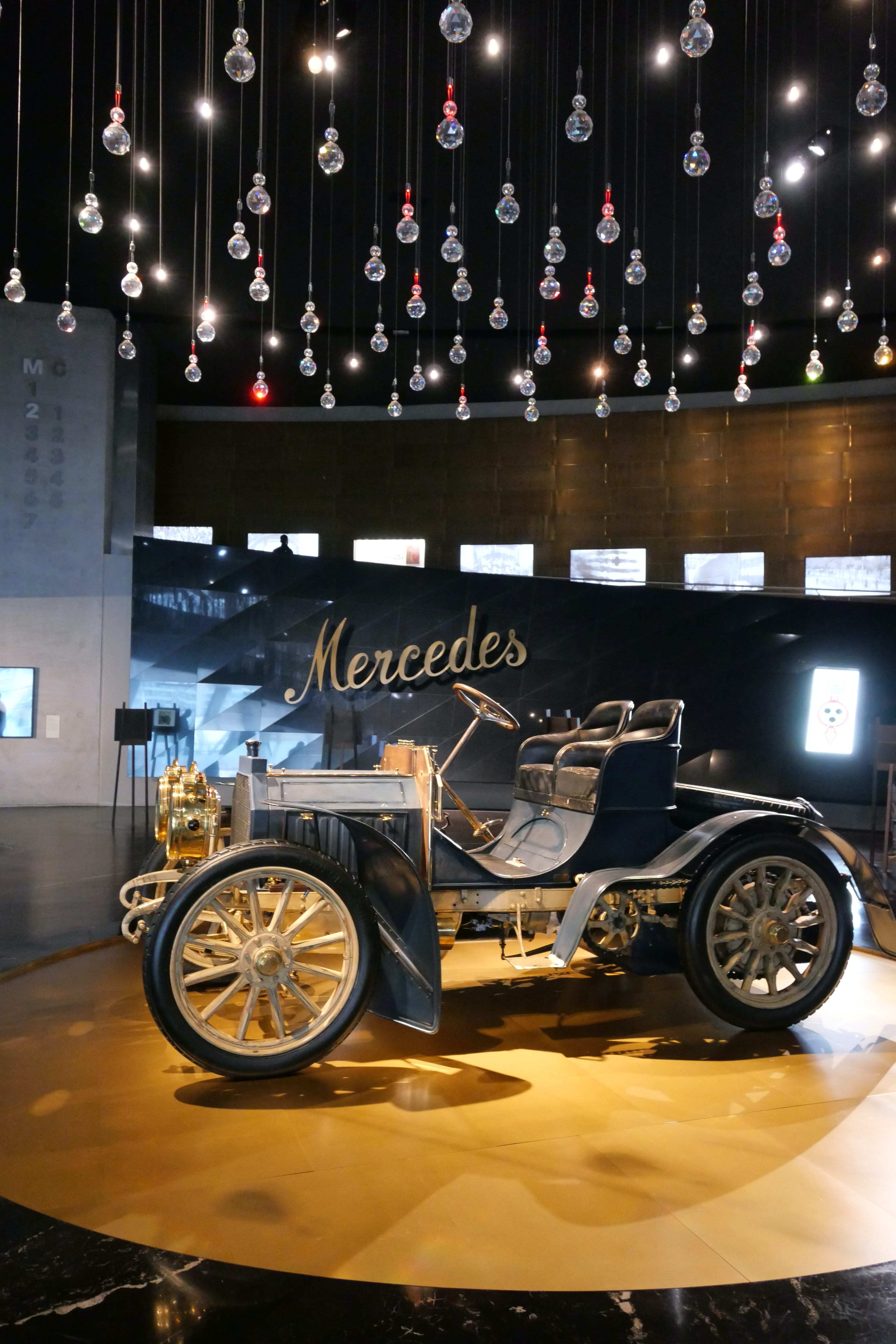 Nous avons ensuite consacré une bonne partie de l’après-midi à la visite du Mercedes-Benz Museum. Là aussi, le bâtiment est une attraction à lui seul et dans un style bien plus moderne que l’architecture du centre-ville. En nous y rendant en voiture, nous sommes passés devant une grande zone qui accueillait à ce moment-là une foire avec de nombreuses attractions, qui était en fait le Stuttgart Spring Festival, d’après nos dernières recherches. Elle a lieu pendant les mois d’avril-mai généralement. En ce qui concerne le musée en lui-même, nous en avons apprécié la visite. Les audio-guides sont compris dans le tarif d’entrée de 16€ par personne. On débute la visite à l’étage le plus haut avec les débuts du moteur et les toutes premières voitures. Il suffit de pointer l’audio-guide vers le QR code du véhicule qui vous intéresse pour obtenir 1 à 2 minutes d’informations sur ce dernier. Au début, on essaye de tout écouter mais au bout du 3e ou 4e étage, on vous avoue commencer à davantage sélectionner. Les véhicules présentés sont vraiment impressionnants, notamment les voitures anciennes, qui permettent de mieux comprendre celles d’aujourd’hui. Nous avons fait de très nombreuses photos mais en voici une petite sélection.