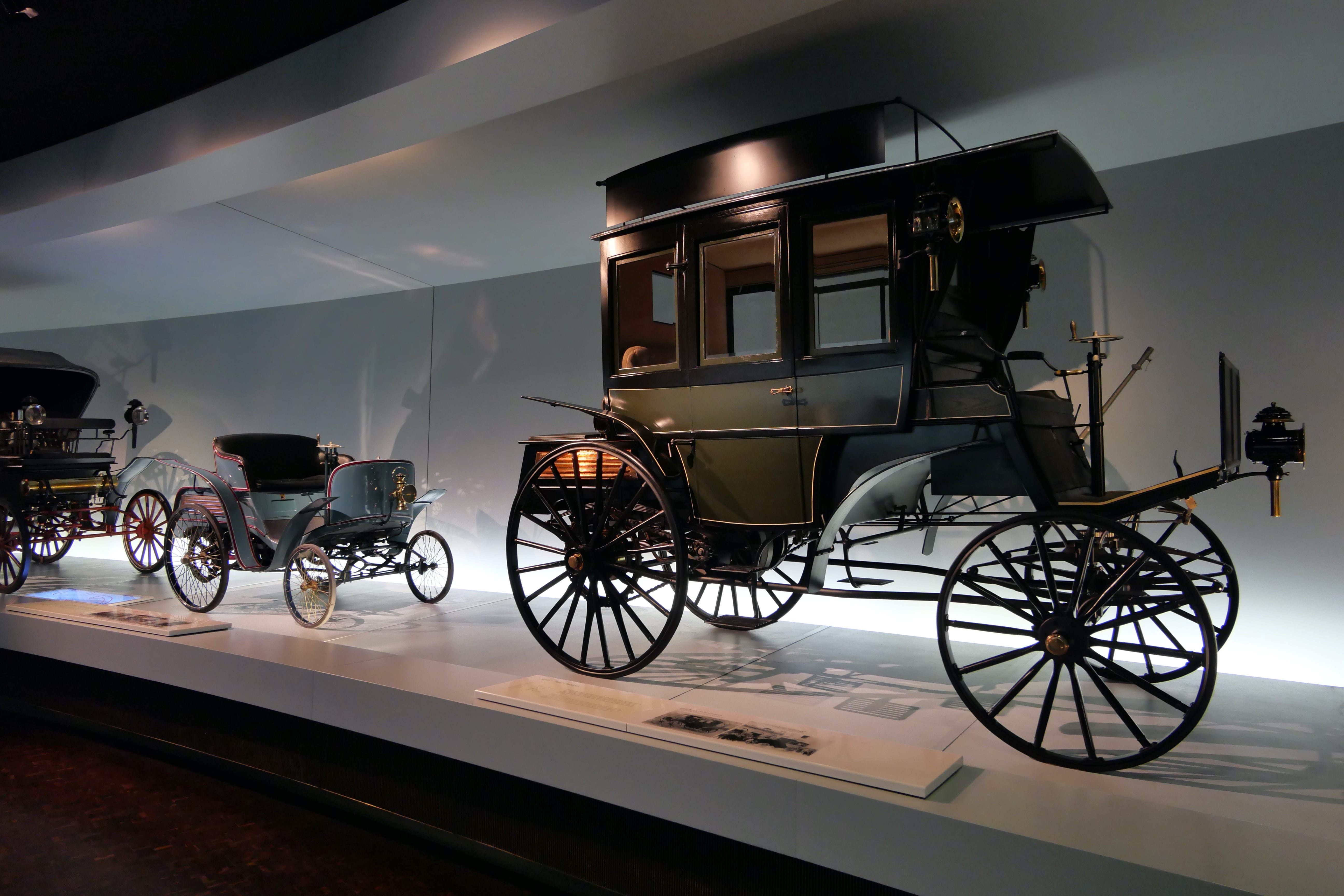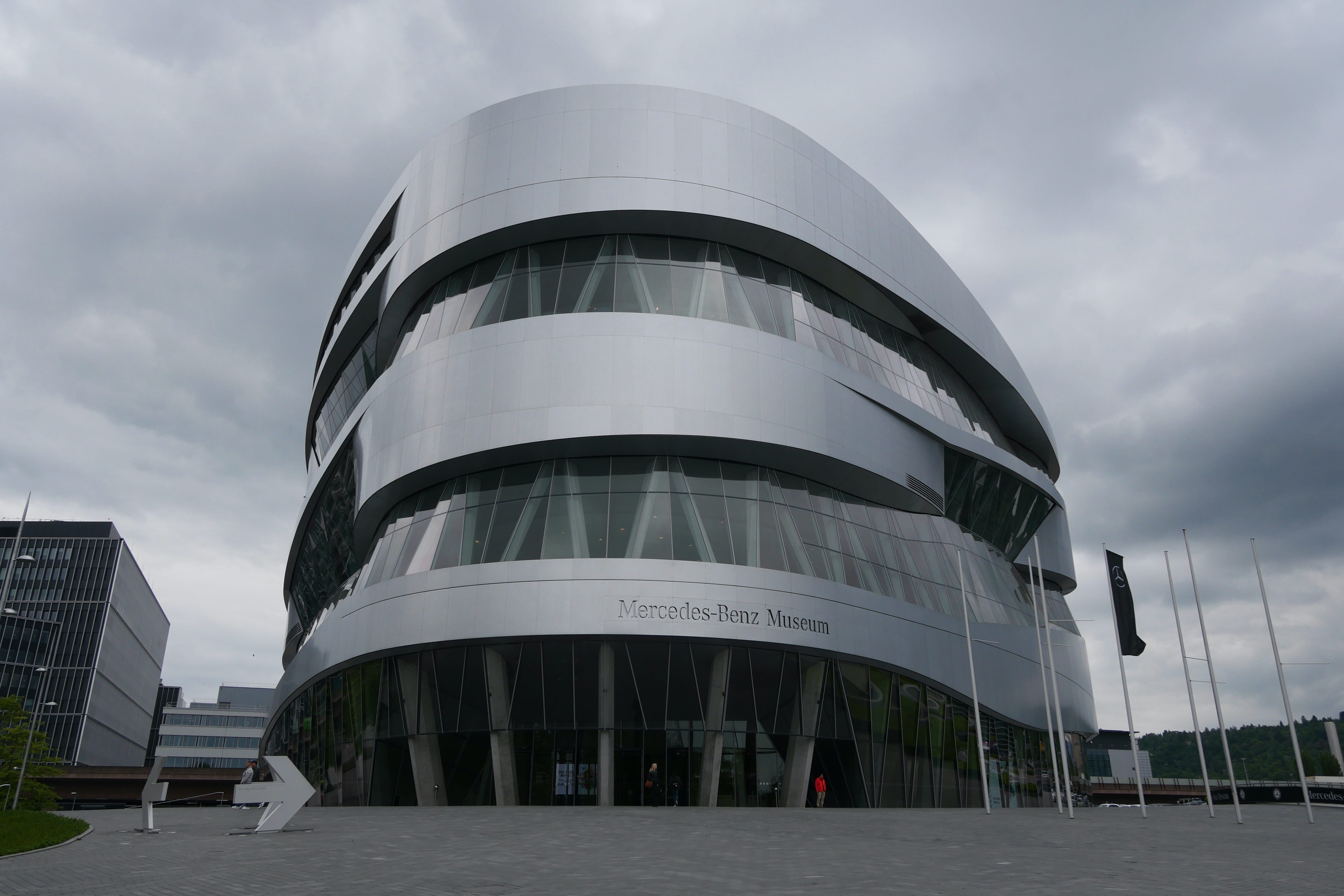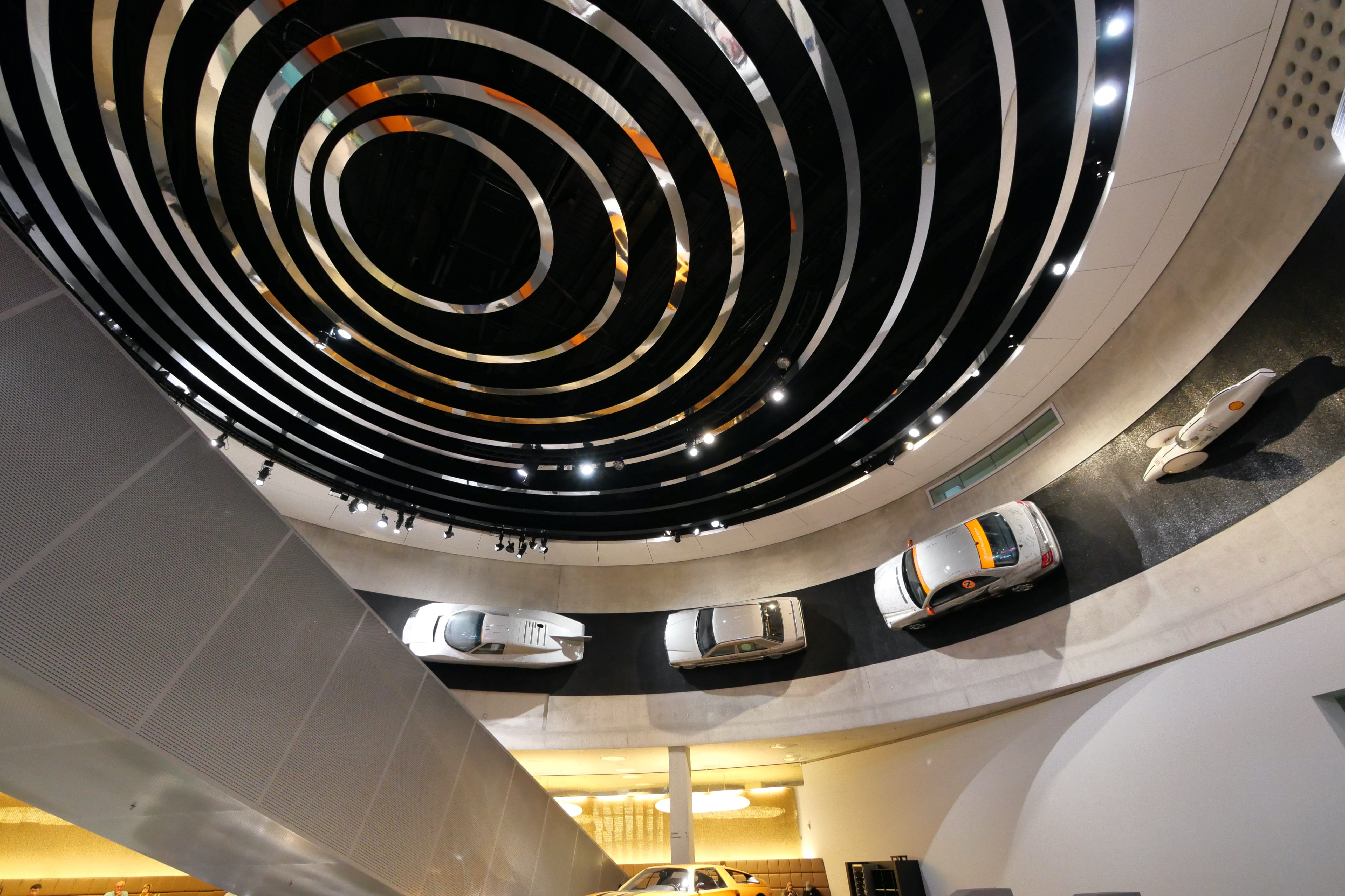 Nous avons ensuite consacré une bonne partie de l’après-midi à la visite du Mercedes-Benz Museum. Là aussi, le bâtiment est une attraction à lui seul et dans un style bien plus moderne que l’architecture du centre-ville. En nous y rendant en voiture, nous sommes passés devant une grande zone qui accueillait à ce moment-là une foire avec de nombreuses attractions, qui était en fait le Stuttgart Spring Festival, d’après nos dernières recherches. Elle a lieu pendant les mois d’avril-mai généralement. En ce qui concerne le musée en lui-même, nous en avons apprécié la visite. Les audio-guides sont compris dans le tarif d’entrée de 16€ par personne. On débute la visite à l’étage le plus haut avec les débuts du moteur et les toutes premières voitures. Il suffit de pointer l’audio-guide vers le QR code du véhicule qui vous intéresse pour obtenir 1 à 2 minutes d’informations sur ce dernier. Au début, on essaye de tout écouter mais au bout du 3e ou 4e étage, on vous avoue commencer à davantage sélectionner. Les véhicules présentés sont vraiment impressionnants, notamment les voitures anciennes, qui permettent de mieux comprendre celles d’aujourd’hui. Nous avons fait de très nombreuses photos mais en voici une petite sélection.