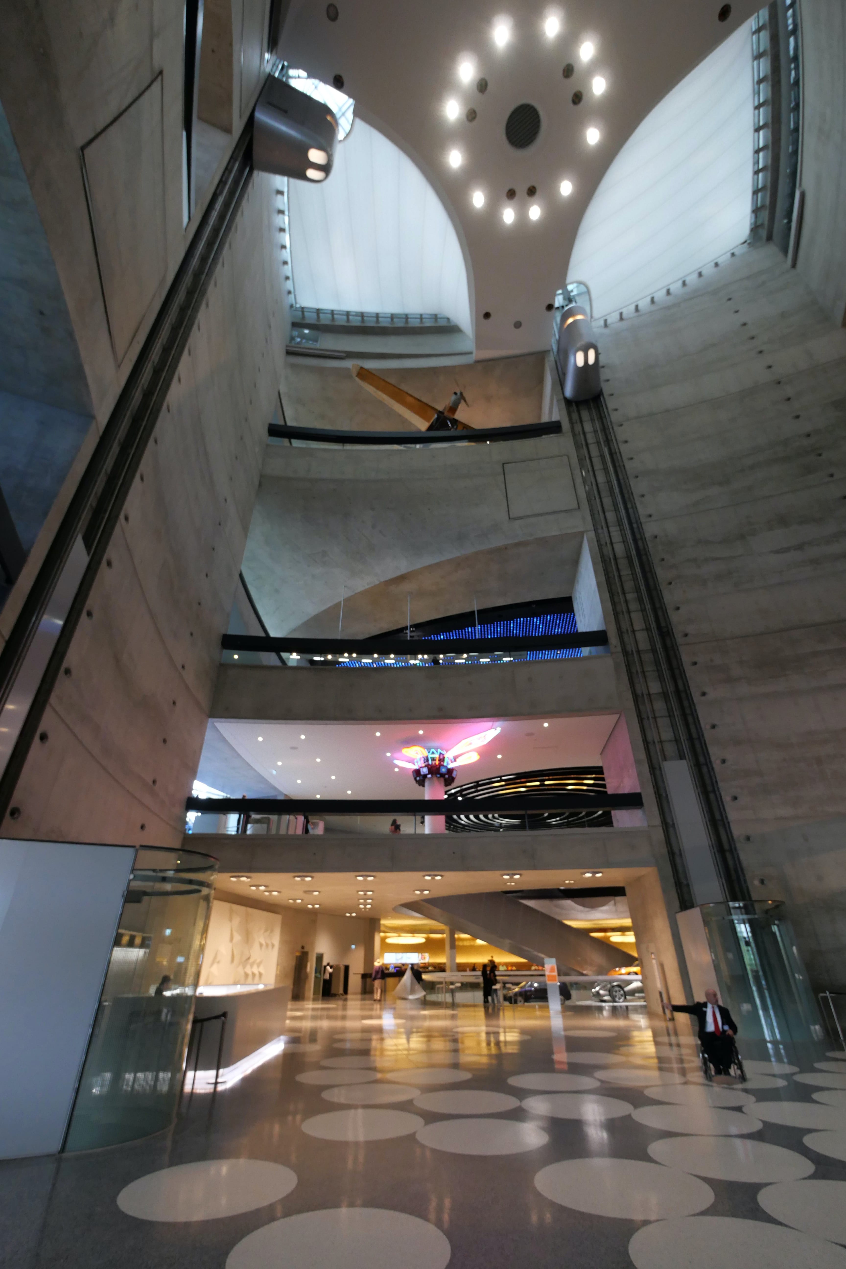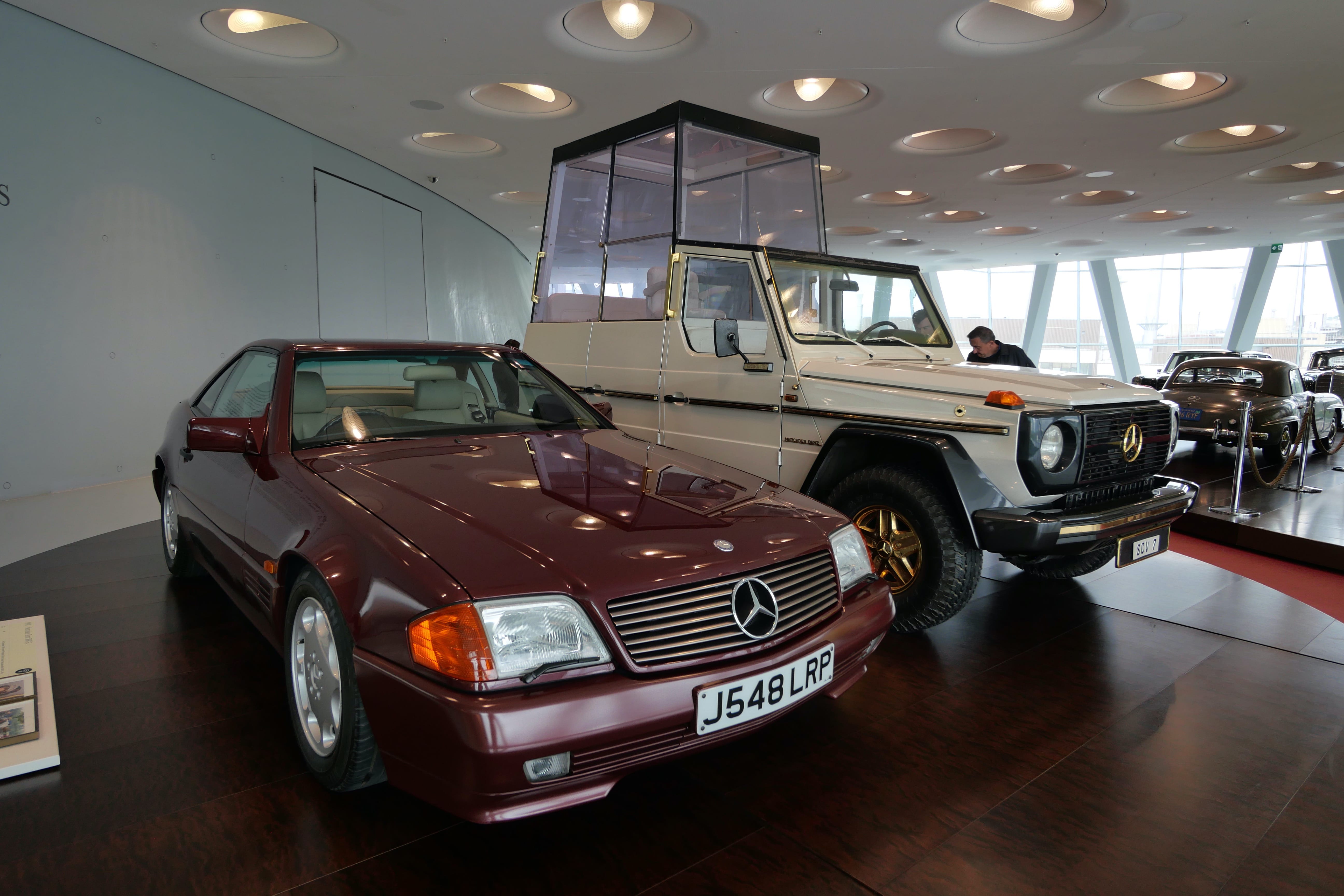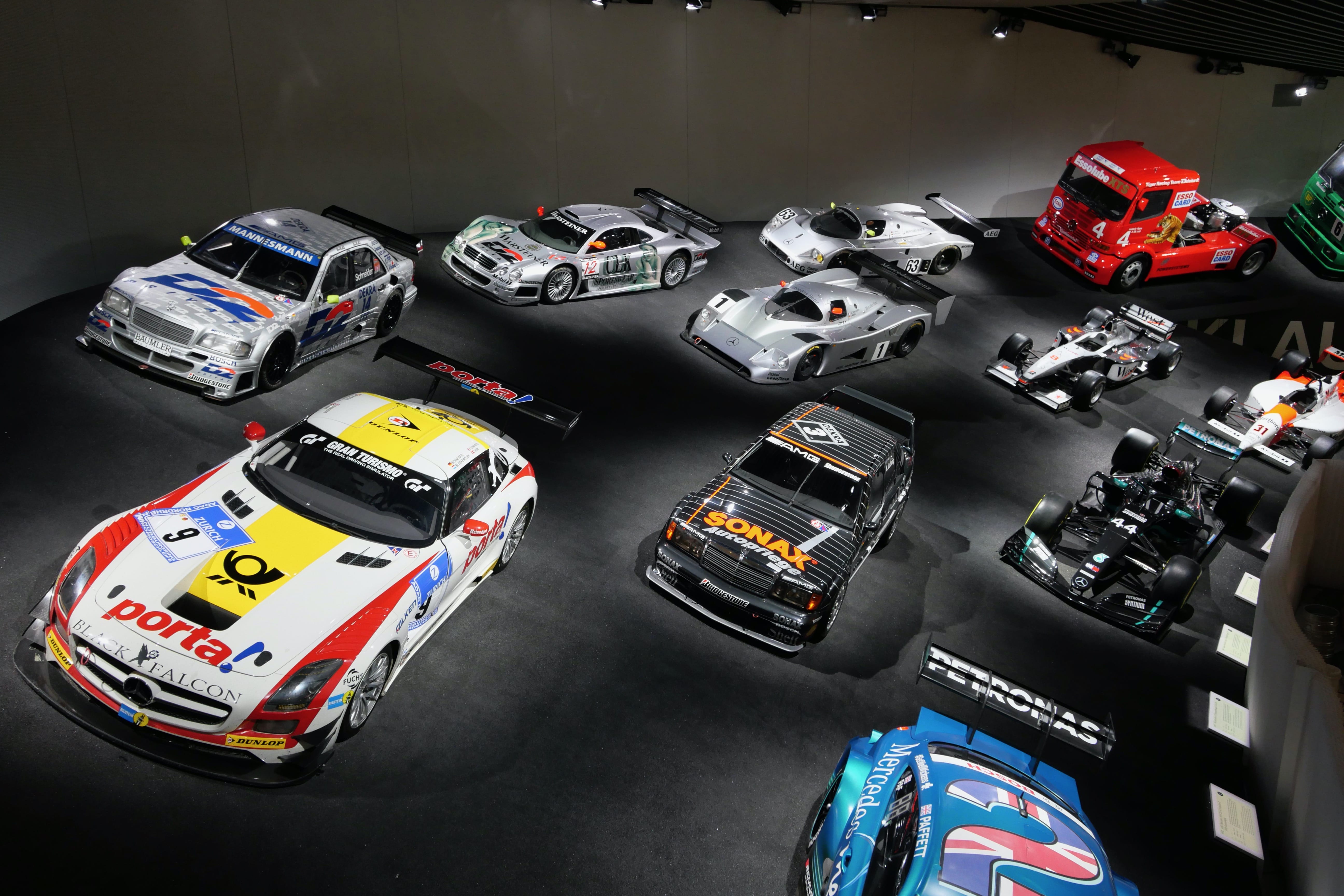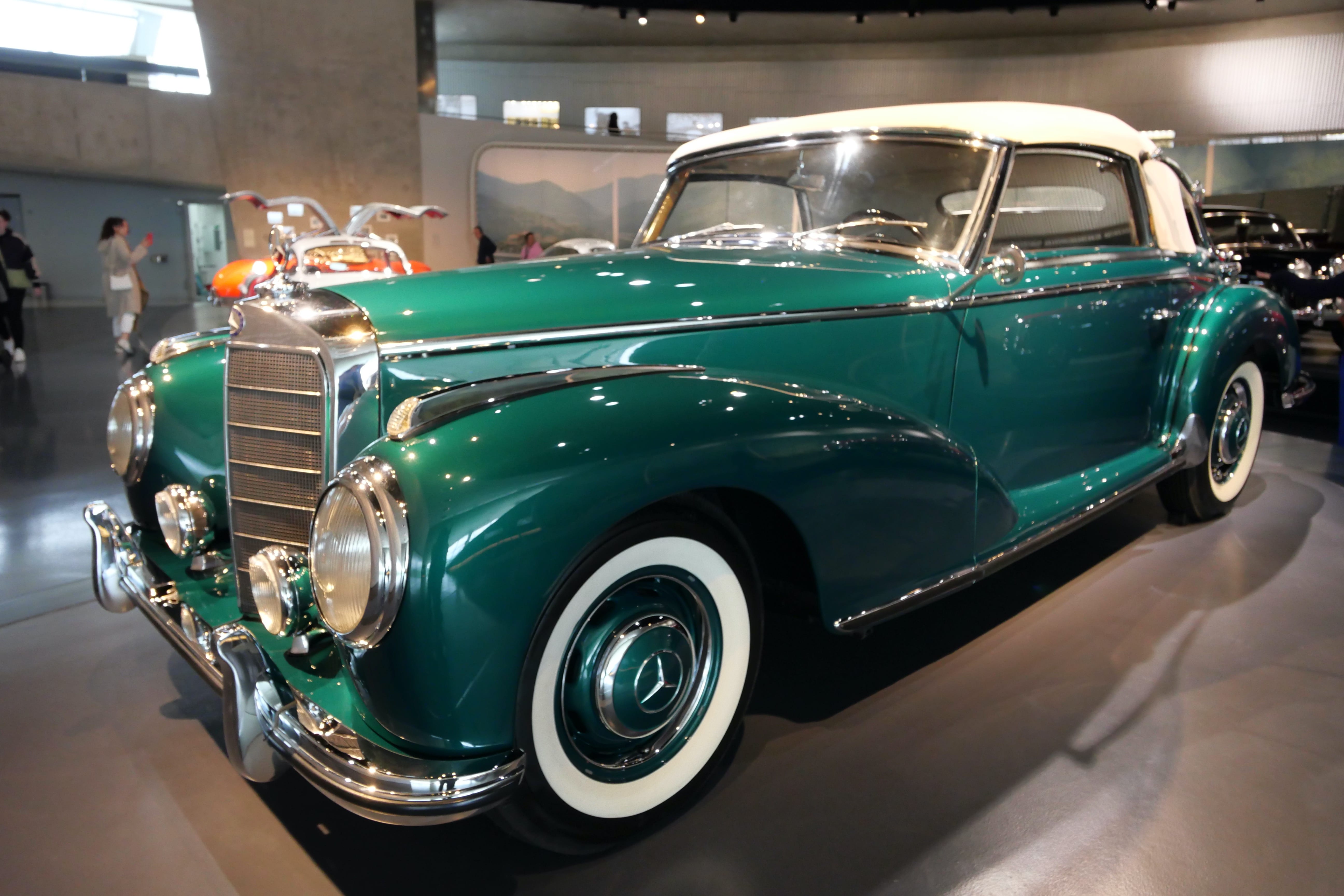 Nous avons ensuite consacré une bonne partie de l’après-midi à la visite du Mercedes-Benz Museum. Là aussi, le bâtiment est une attraction à lui seul et dans un style bien plus moderne que l’architecture du centre-ville. En nous y rendant en voiture, nous sommes passés devant une grande zone qui accueillait à ce moment-là une foire avec de nombreuses attractions, qui était en fait le Stuttgart Spring Festival, d’après nos dernières recherches. Elle a lieu pendant les mois d’avril-mai généralement. En ce qui concerne le musée en lui-même, nous en avons apprécié la visite. Les audio-guides sont compris dans le tarif d’entrée de 16€ par personne. On débute la visite à l’étage le plus haut avec les débuts du moteur et les toutes premières voitures. Il suffit de pointer l’audio-guide vers le QR code du véhicule qui vous intéresse pour obtenir 1 à 2 minutes d’informations sur ce dernier. Au début, on essaye de tout écouter mais au bout du 3e ou 4e étage, on vous avoue commencer à davantage sélectionner. Les véhicules présentés sont vraiment impressionnants, notamment les voitures anciennes, qui permettent de mieux comprendre celles d’aujourd’hui. Nous avons fait de très nombreuses photos mais en voici une petite sélection.