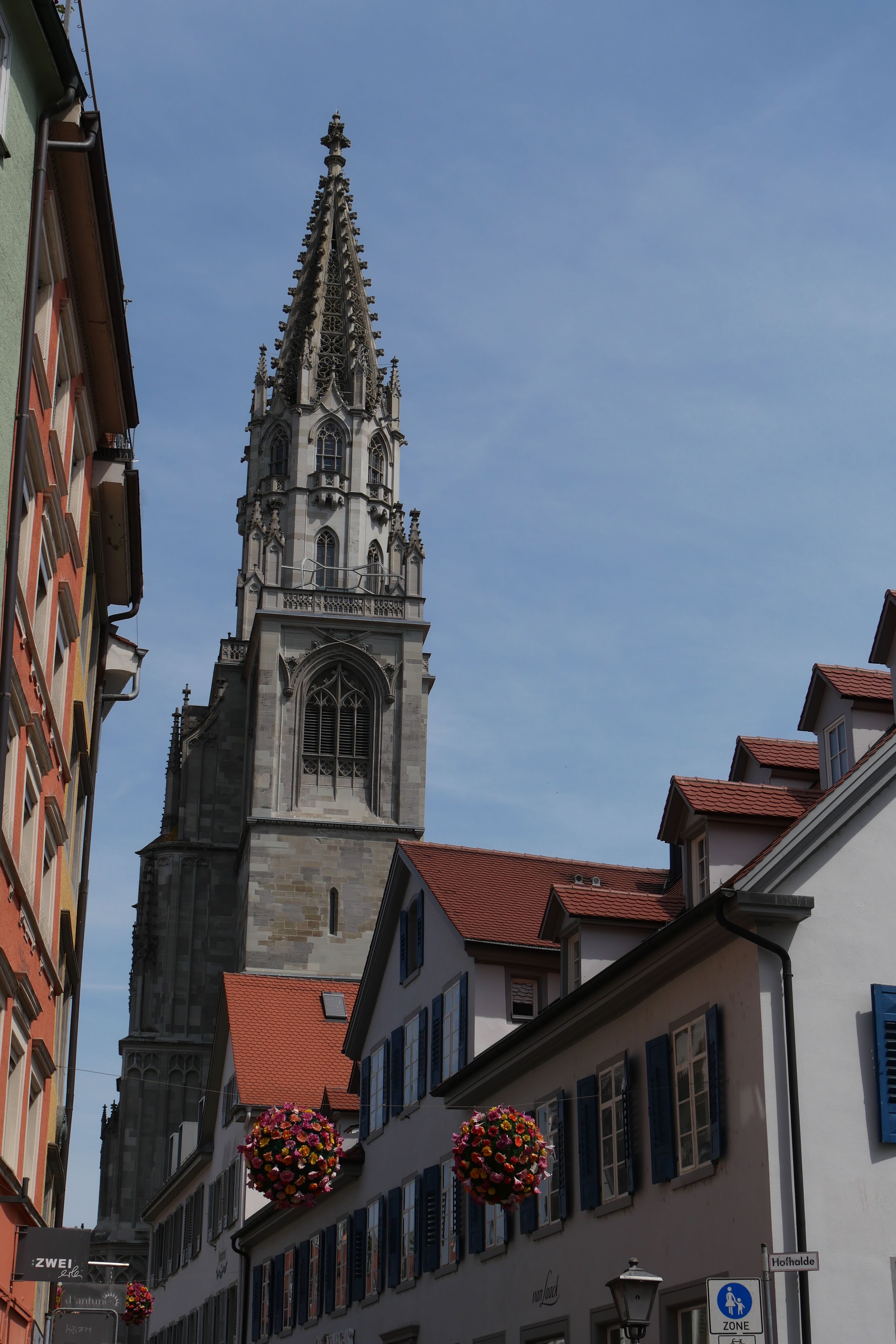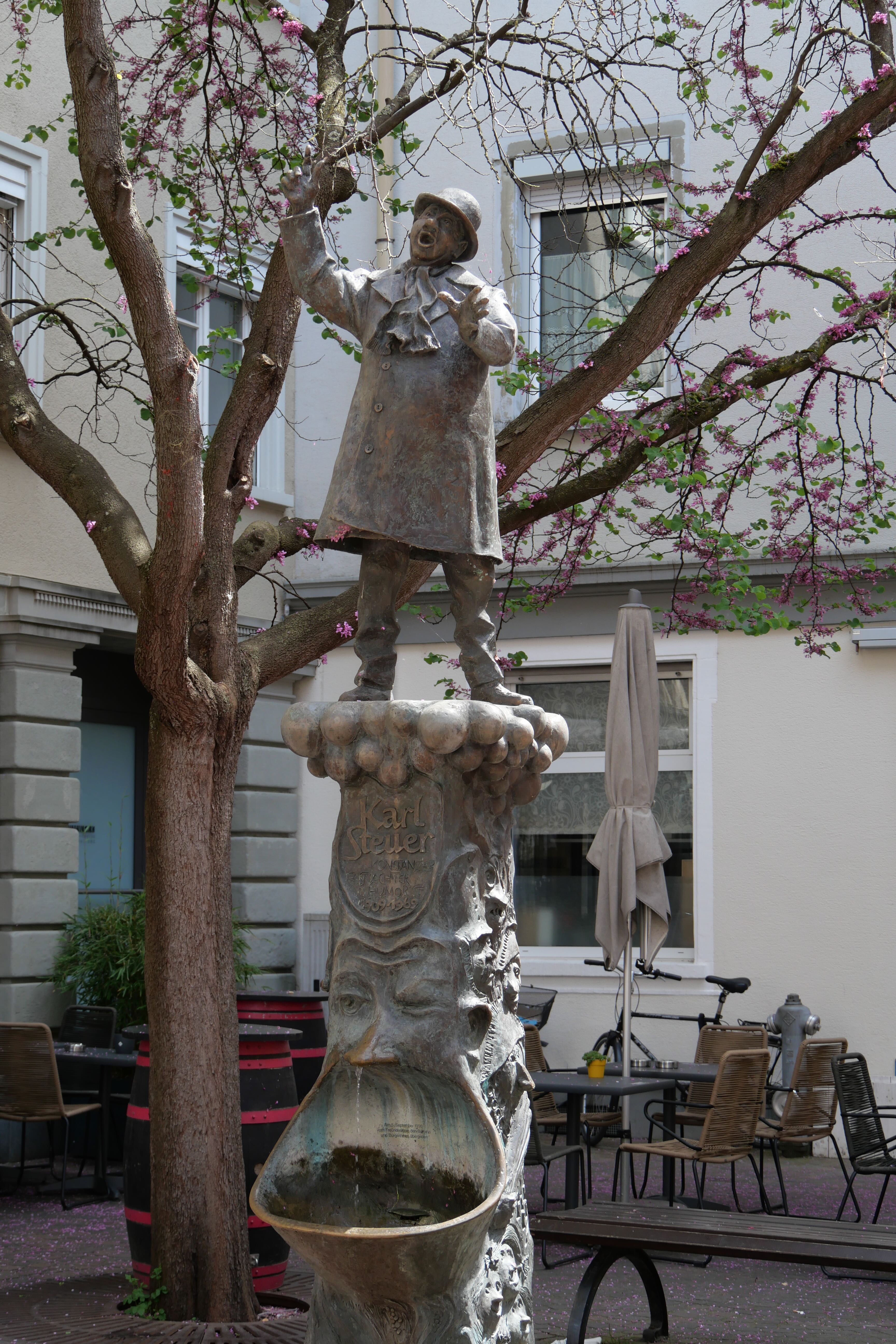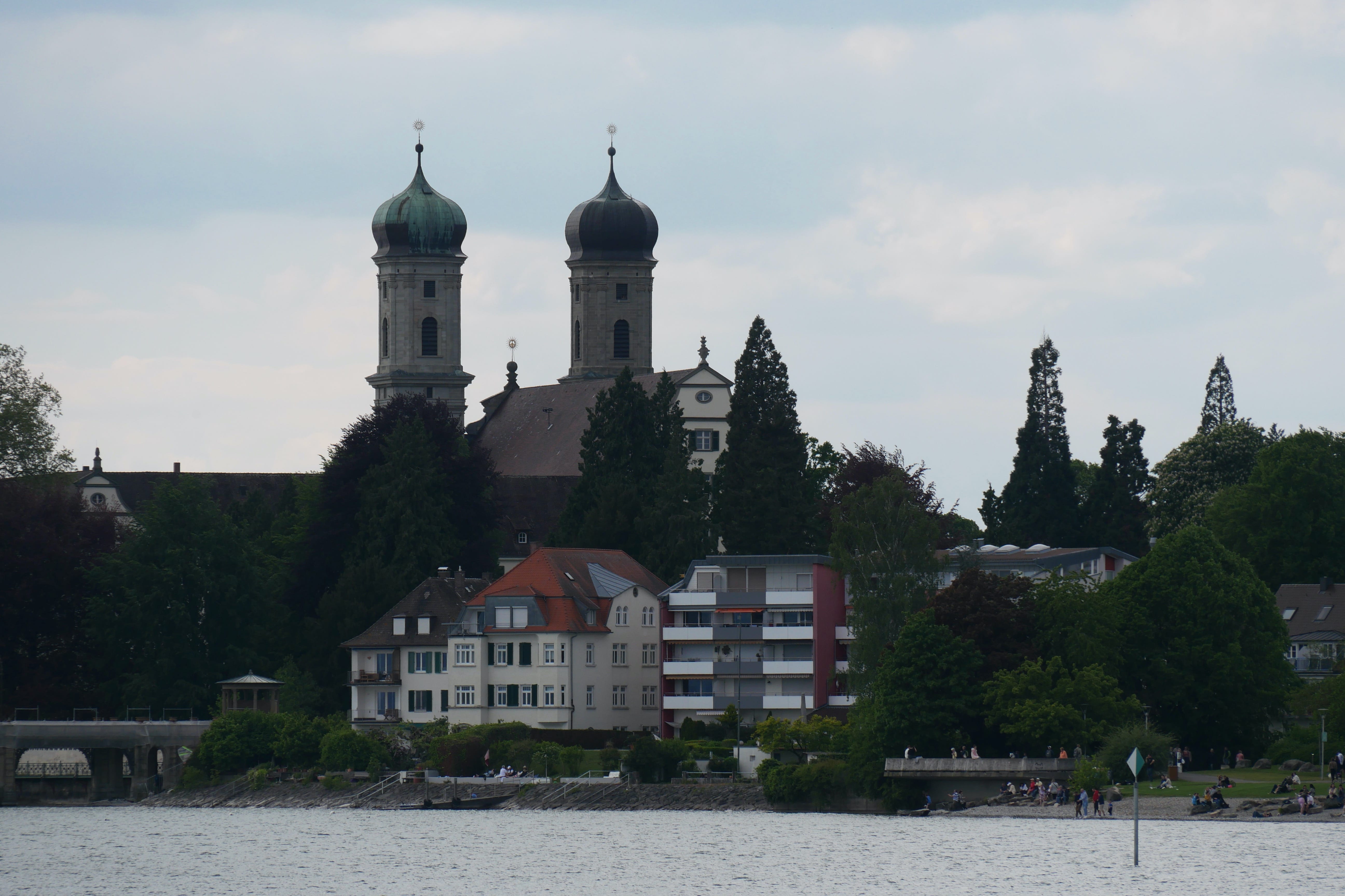 Constance, ville au bord du lac par laquelle nous voulions initialement commencer notre séjour, mais par laquelle nous finirons, a cela de spécial qu’elle se situe à l’extrémité du lac éponyme, à la frontière avec la Suisse et semble être l’un des principaux points de départs et d’arrivées des touristes souhaitant découvrir la région, étant bien desservie par le train. Nous avions quelques points que nous souhaitions voir, notamment son port avec la statue Imperia, représentant une femme tenant l’empereur Sigismond et le pape Martin V dans ses mains, assez surprenante par le fait qu’elle tourne sur elle-même, offrant à tous la possibilité de la contempler sous tous ses angles, où qu’ils se trouvent. Entre notre parking « Aldstadt » et le port, nous avons déambulé, portés par les différentes ruelles se dirigeant vers le lac, longeant ainsi l’église Sankt-Stephan avant d’avoir une superbe vue sur la cathédrale Notre-Dame de Constance et un aperçu de l’insolite fontaine Karl Steuer, acteur allemand né à Constance au début du 20ème siècle. Profitant de la vue depuis le bord du lac, nous y mangerons, au rythme des départs et arrivées de bateaux au port, avant de reprendre la route, quittant pour de bon cette fois le lac et ses abords.