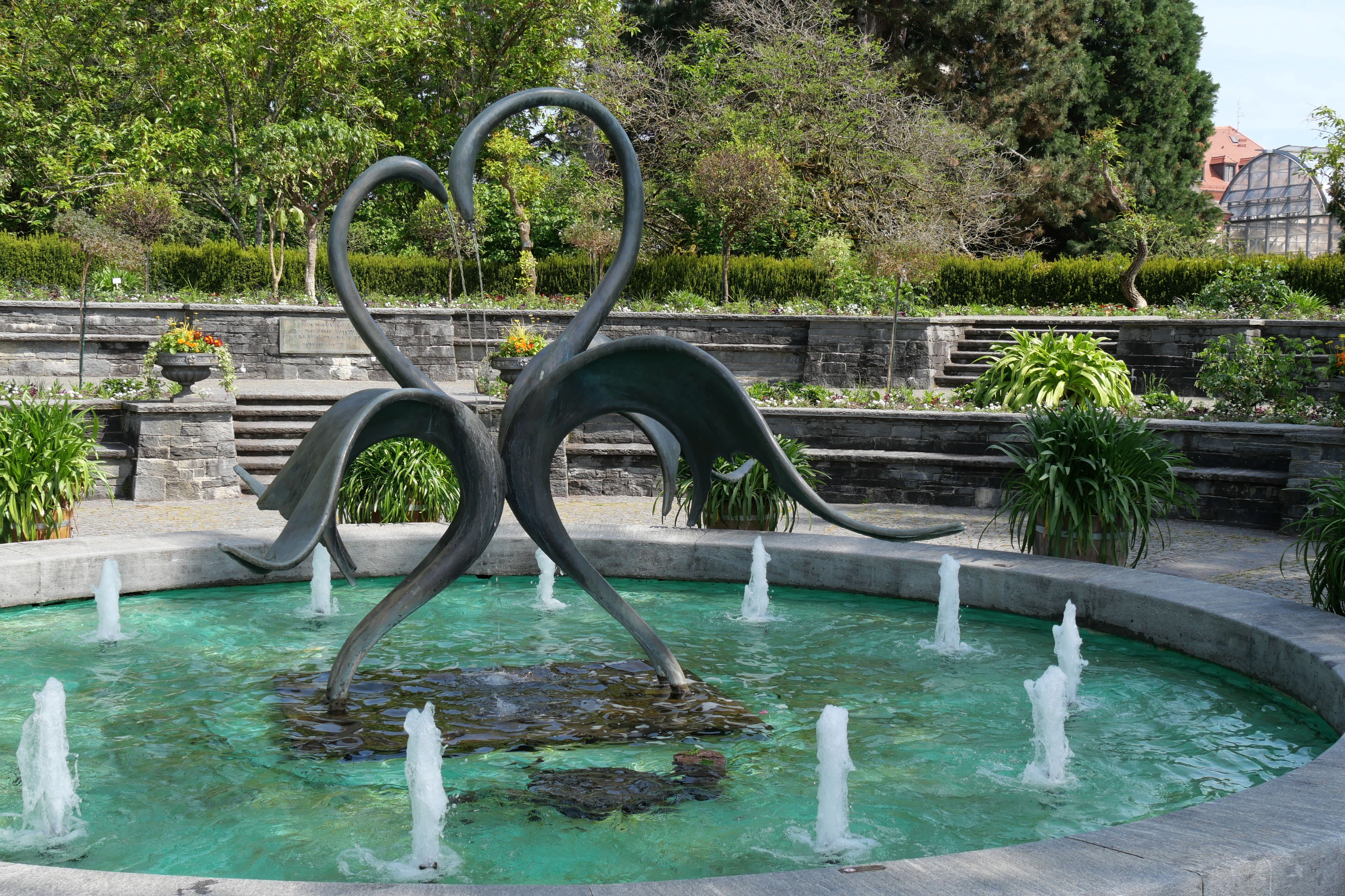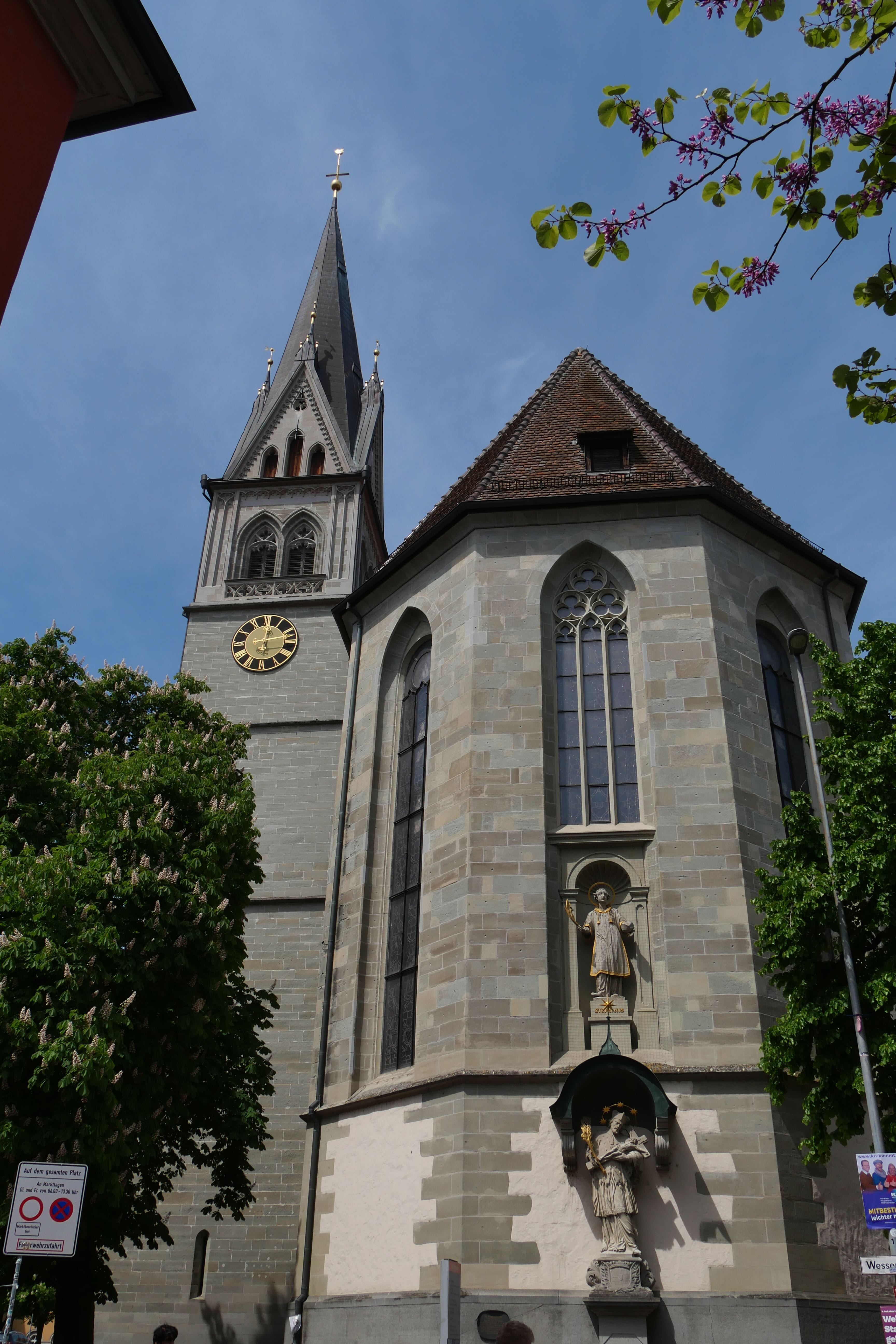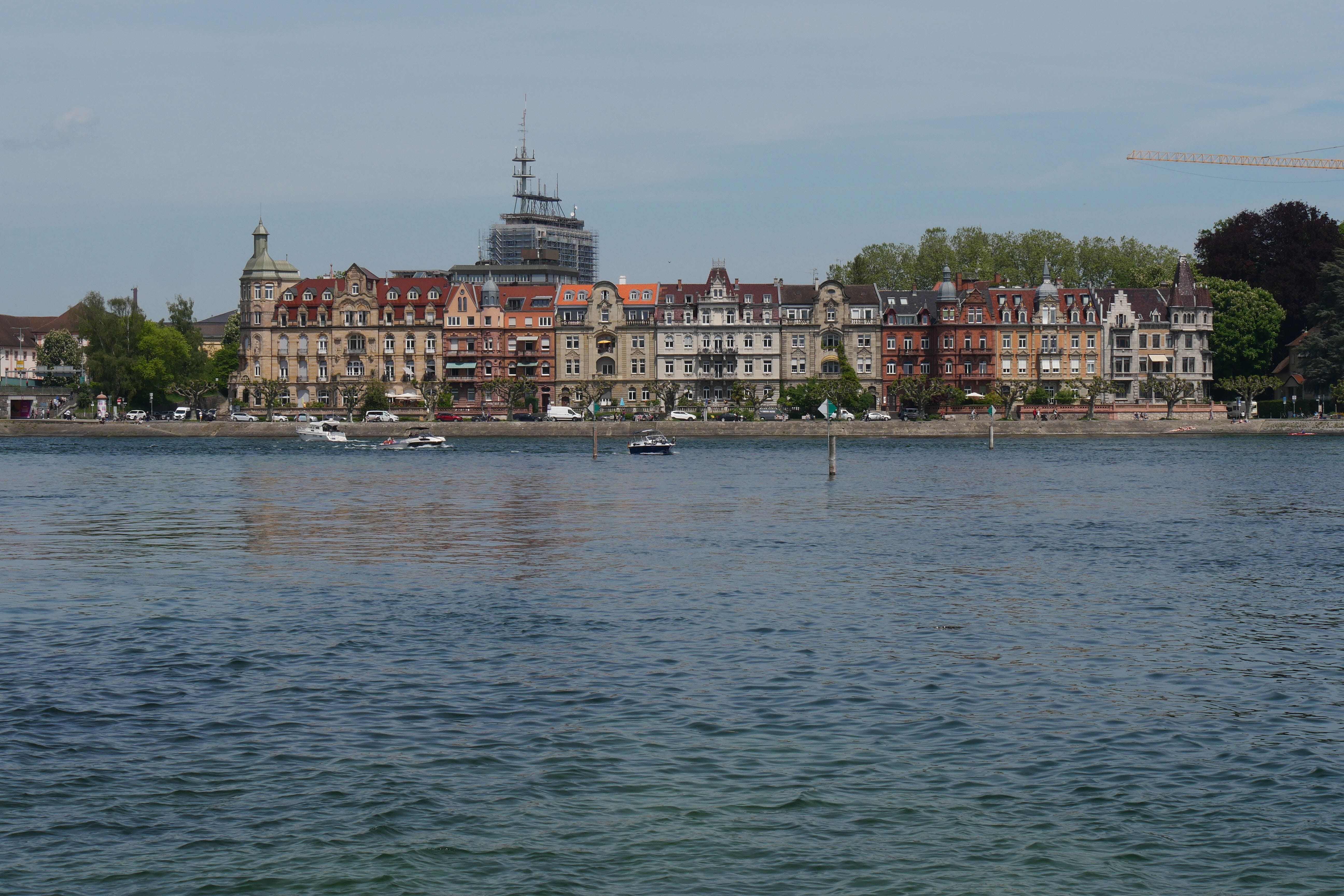 Constance, ville au bord du lac par laquelle nous voulions initialement commencer notre séjour, mais par laquelle nous finirons, a cela de spécial qu’elle se situe à l’extrémité du lac éponyme, à la frontière avec la Suisse et semble être l’un des principaux points de départs et d’arrivées des touristes souhaitant découvrir la région, étant bien desservie par le train. Nous avions quelques points que nous souhaitions voir, notamment son port avec la statue Imperia, représentant une femme tenant l’empereur Sigismond et le pape Martin V dans ses mains, assez surprenante par le fait qu’elle tourne sur elle-même, offrant à tous la possibilité de la contempler sous tous ses angles, où qu’ils se trouvent. Entre notre parking « Aldstadt » et le port, nous avons déambulé, portés par les différentes ruelles se dirigeant vers le lac, longeant ainsi l’église Sankt-Stephan avant d’avoir une superbe vue sur la cathédrale Notre-Dame de Constance et un aperçu de l’insolite fontaine Karl Steuer, acteur allemand né à Constance au début du 20ème siècle. Profitant de la vue depuis le bord du lac, nous y mangerons, au rythme des départs et arrivées de bateaux au port, avant de reprendre la route, quittant pour de bon cette fois le lac et ses abords.