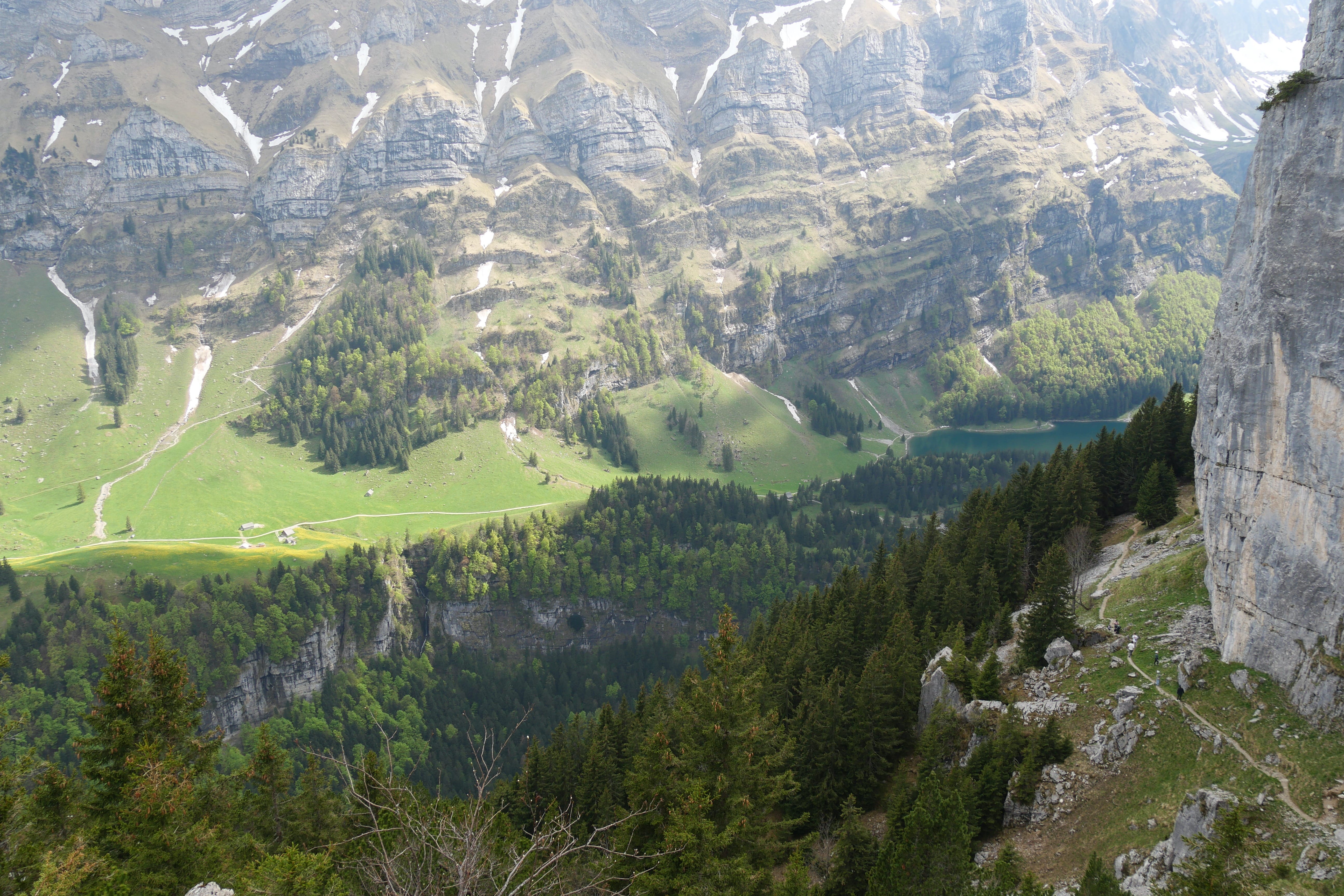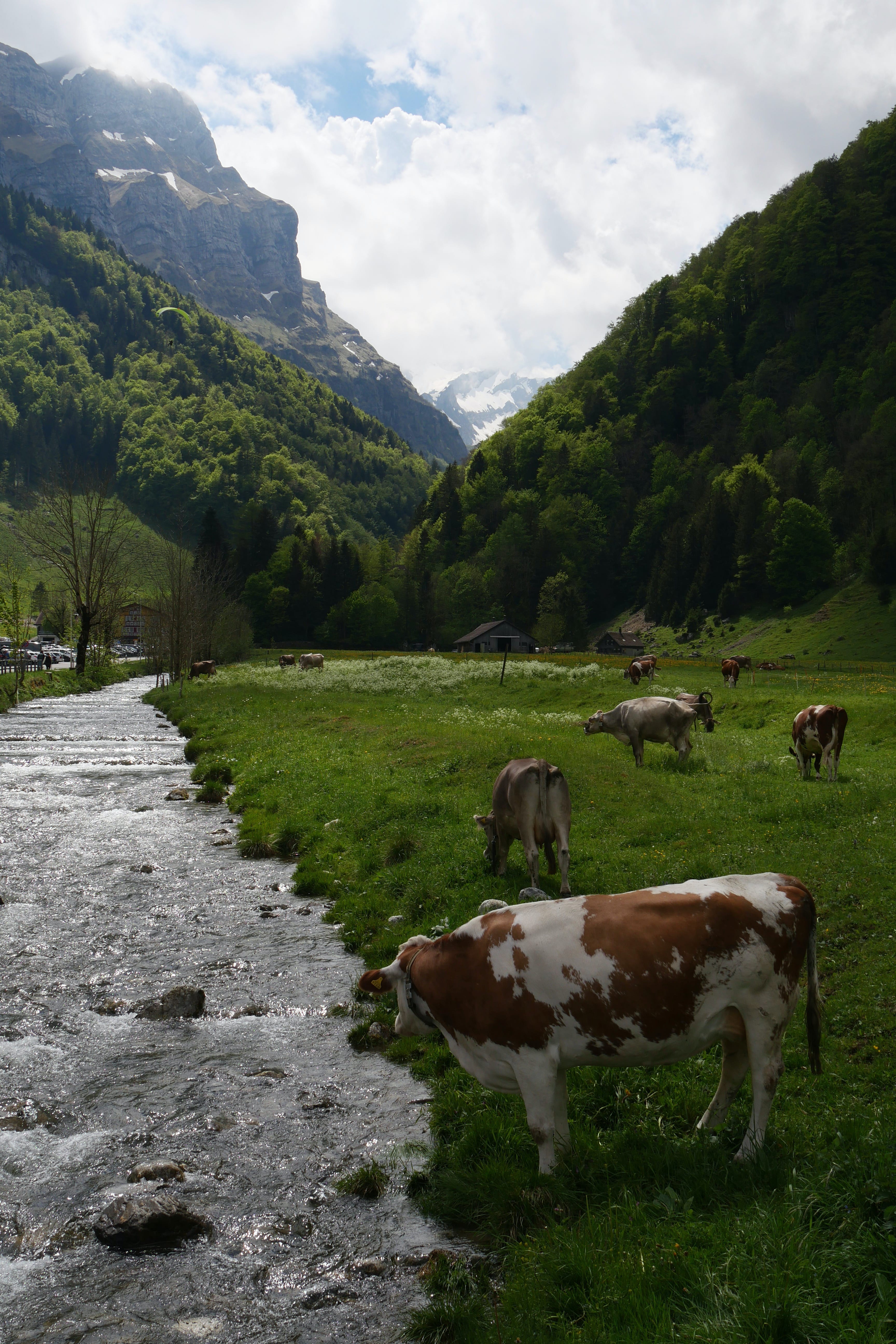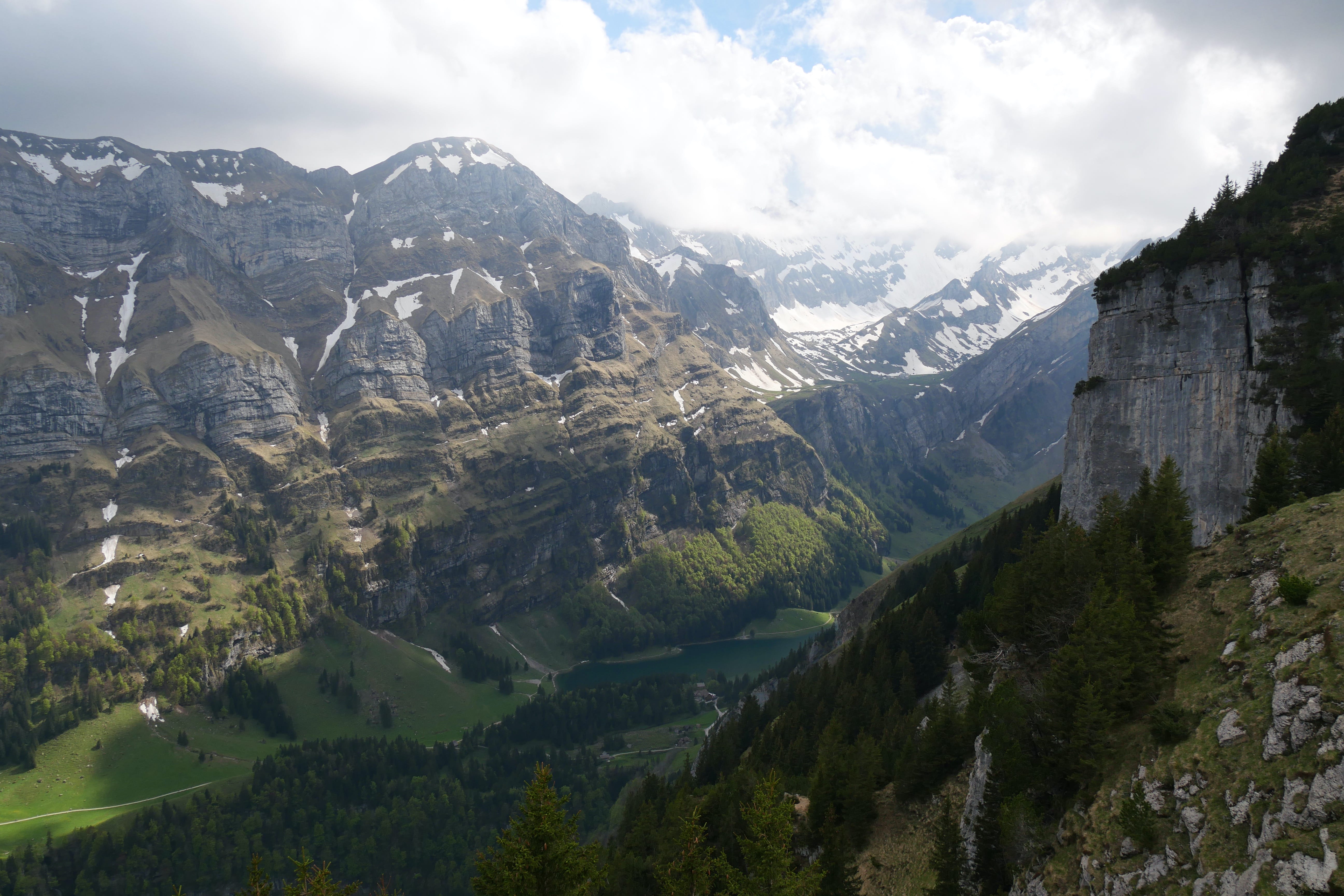 Après avoir fait notre pause de midi dans le village bien calme, nous reprenons la route, plus sinueuse, jusqu’à atteindre le bout de la vallée dans laquelle se situe le téléphérique pour l’Ebenalp. C’est en compagnie d’une dizaine de parapentistes que nous montons à bord du téléphérique (qui à lui seul coûte déjà 36CHF A/R pour un adulte, et est inclus dans la BCP) pour quelques minutes de montée, jusqu’à atteindre le début de notre petite randonnée nous amenant jusqu’à l’auberge Aescher, célèbre pour son incrustation dans la roche. Avant cela, nous traversons le Wildkirchli, un réseau de grottes reliées entre elles, nous faisant ressortir à flanc de falaise. On ne vous le cache pas, il faut tout de même une condition physique correcte pour s’aventurer en montagne, et c’est en accord avec nos limites que nous avions tracé notre petite boucle. Quand bien même, il aura fallu s’accrocher avec le dénivelé positif et la technicité de certains passages sur le retour pour ne pas retenir que cela de notre expérience. Le paysage est cependant à couper le souffle et nous aura fait assez vite oublier nos efforts pour y arriver. Nous redescendrons par le même chemin, en téléphérique, mais il est également possible de rejoindre la vallée par un sentier de randonnée passant à proximité d’un magnifique lac que nous n’aurons fait qu’apercevoir d’en haut. Sur le retour, Il, avait évoqué l’existence du Chocolarium, une visite de la chocolaterie de Flawil, enrichie d’expériences autour du chocolat, pour petits et plus grands. Elle, était donc tentée par découvrir cet univers, en lien direct avec sa passion pour la pâtisserie, mais nous sommes arrivés à moins d’une heure de la fermeture et nous sommes donc vus refuser l’accès, sans négociation possible. Bons joueurs, nous avons tout de même cédés à quelques achats à la boutique d’usine, aux tarifs pour certains intéressants.
