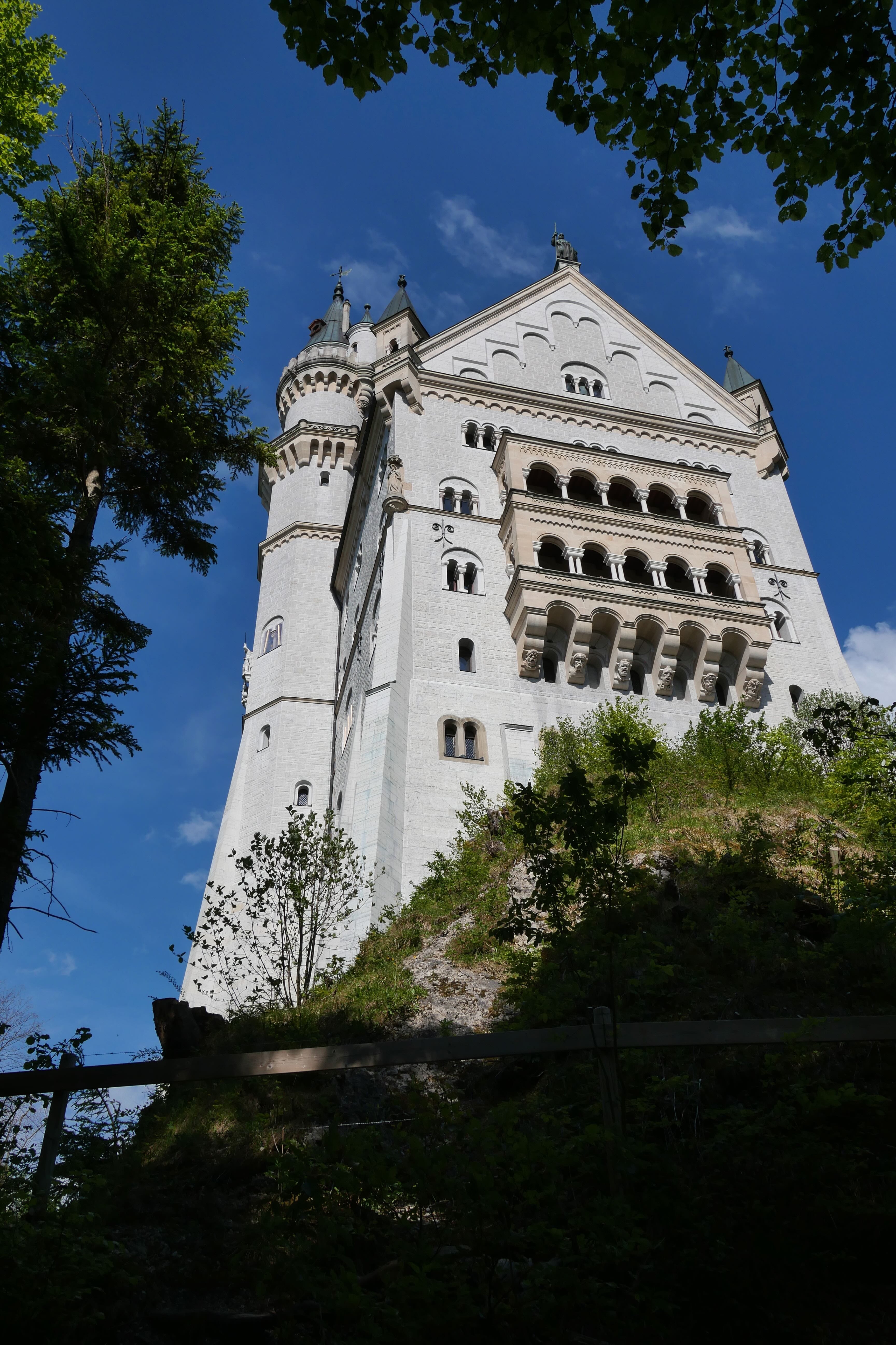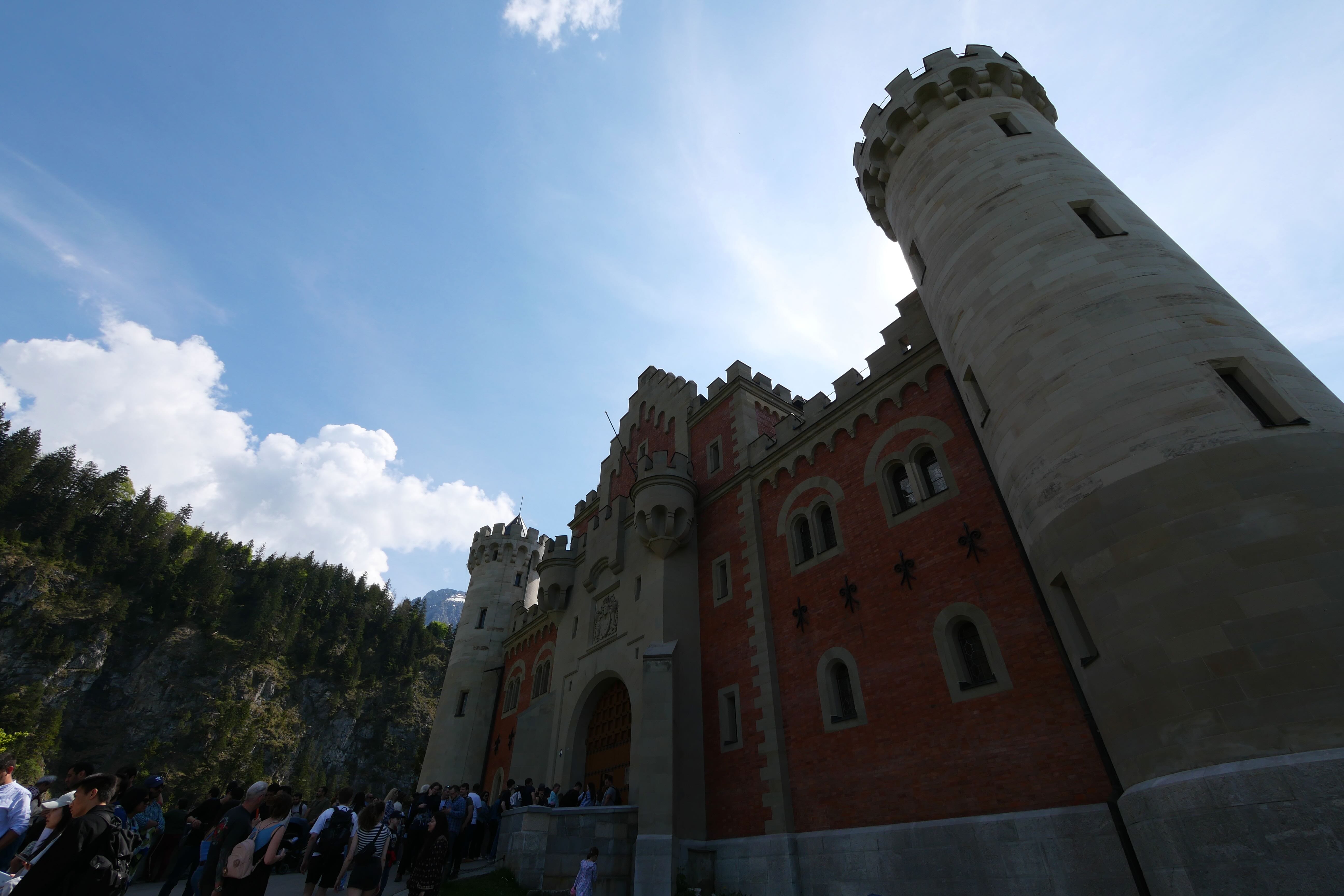Revenons à la visite du château. Premièrement, nous précisons que dans la ville où se trouve le château de Neuschwanstein, se trouve également un second château du nom de cette même ville : Hohenschwangau. Il est aussi possible de visiter le musée des rois de Bavière. De notre côté, nous ne souhaitions visiter que le premier. Lors de nos recherches pour la réservation sur le site officiel, nous avons retenu deux informations essentielles. Premièrement, et comme indiqué précédemment, la nécessité absolue de prendre vos billets à l’avance et de réserver une visite guidée. Celle-ci peut prendre deux formes, soit en anglais ou allemand avec un guide en personne, soit en plusieurs langues grâce à un audioguide. La deuxième information essentielle est l’importance d’une arrivée très anticipée par rapport à votre horaire de visite. Il est conseillé de venir au moins deux heures avant. Ce temps annoncé dépend de l’ordre dans lequel on fait les choses mais il faut tout de même prévoir entre 30 et 45 minutes de montée pour arriver à l’entrée du château à pied. À ce temps peuvent s’ajouter d’autres dizaines de minutes pour aller observer le château depuis le Marienbrücke. N’étant pas très en avance, nous ferons ce détour après notre visite guidée.