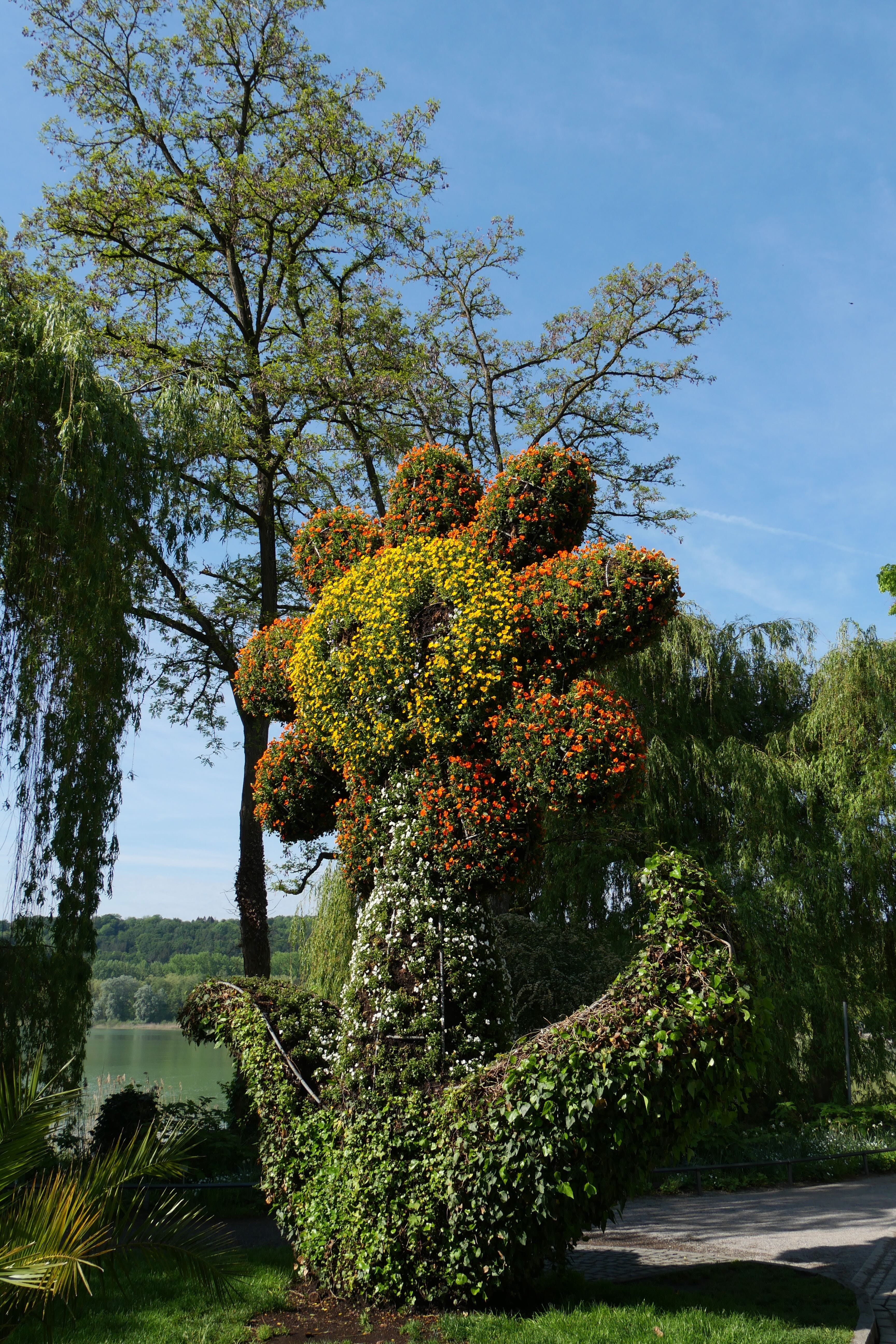 Pour notre dernier jour de ce grand week-end, nous avions décidé de remonter petit à petit le lac vers l’Est, nous rapprochant ainsi pour le gros morceau de route qui nous attendait. C’est à l’île de Mainau que nous avons fait la première escale de la journée. Nous avions lu qu’à cette période, le parking pouvait rapidement être saturé, et c’est pour cela que nous souhaitions y être tôt, pouvant dans le même temps profiter de la quiétude de l’île. Elle est accessible de deux manières, soit comme nous l’avons fait par une petite route au bout de laquelle il faudra s’arrêter sur le parking à proximité de Constance, soit par bateau, depuis certaines villes autour du lac, comme Meersburg par exemple. Dans tous les cas, y accéder coûte 26,50€/adulte (du mercredi au dimanche; 25€ les lundis et mardis), ce qui peut paraître cher, mais l’île est finalement un jardin botanique à ciel ouvert, avec une palmeraie, une serre aux papillons parmi les plus jolies que nous ayons faites, et regorge d’endroits paisibles ou avec une jolie vue sur le lac. On peut largement y passer une journée entière, agrémentée d’un pique-nique ou d’un déjeuner dans les différents restaurants de l’île, et pour une famille avec enfants, s’ajoutent à cela des zones de jeux assez sympas. De quoi contenter petits et grands. Petit bémol cependant sur la quantité et la qualité des choses à voir en fonction des saisons, nous y étions un petit peu tôt pour pouvoir profiter pleinement de tous les rosiers bourgeonnant. Y aller en fin de printemps peut sembler être le meilleur compromis de cette saison, l’été et le début de l’automne devant apporter un autre visage à l’île également.