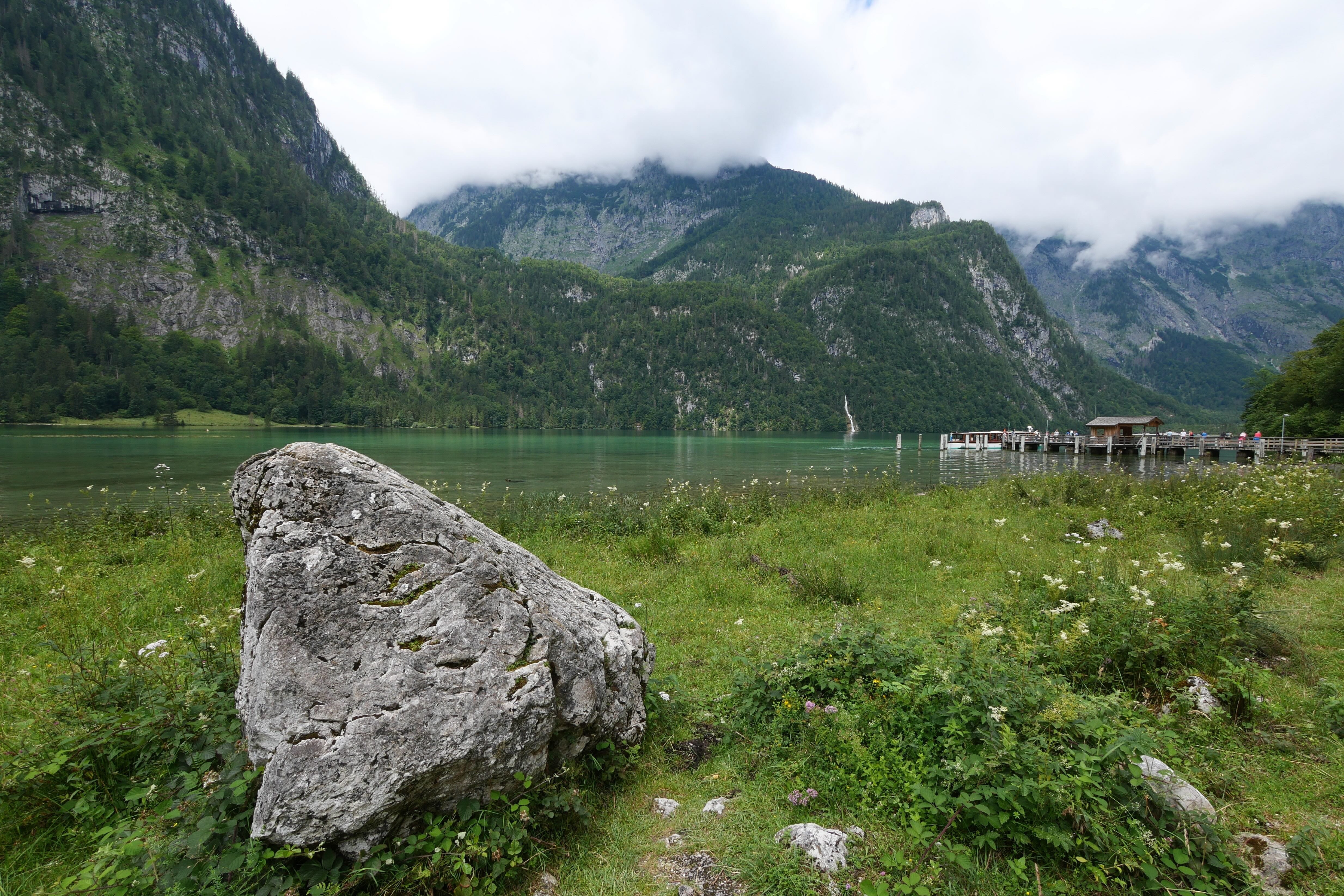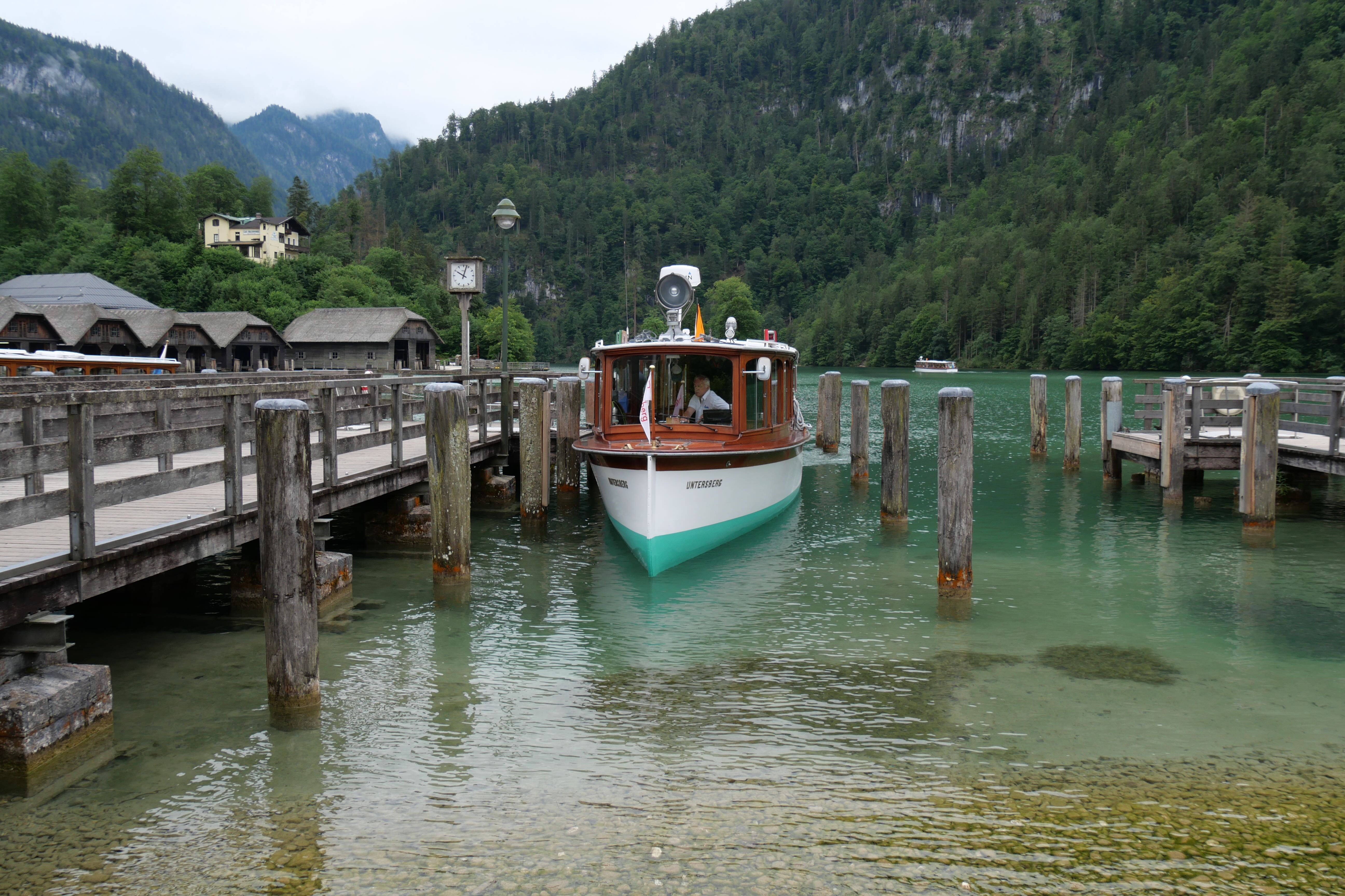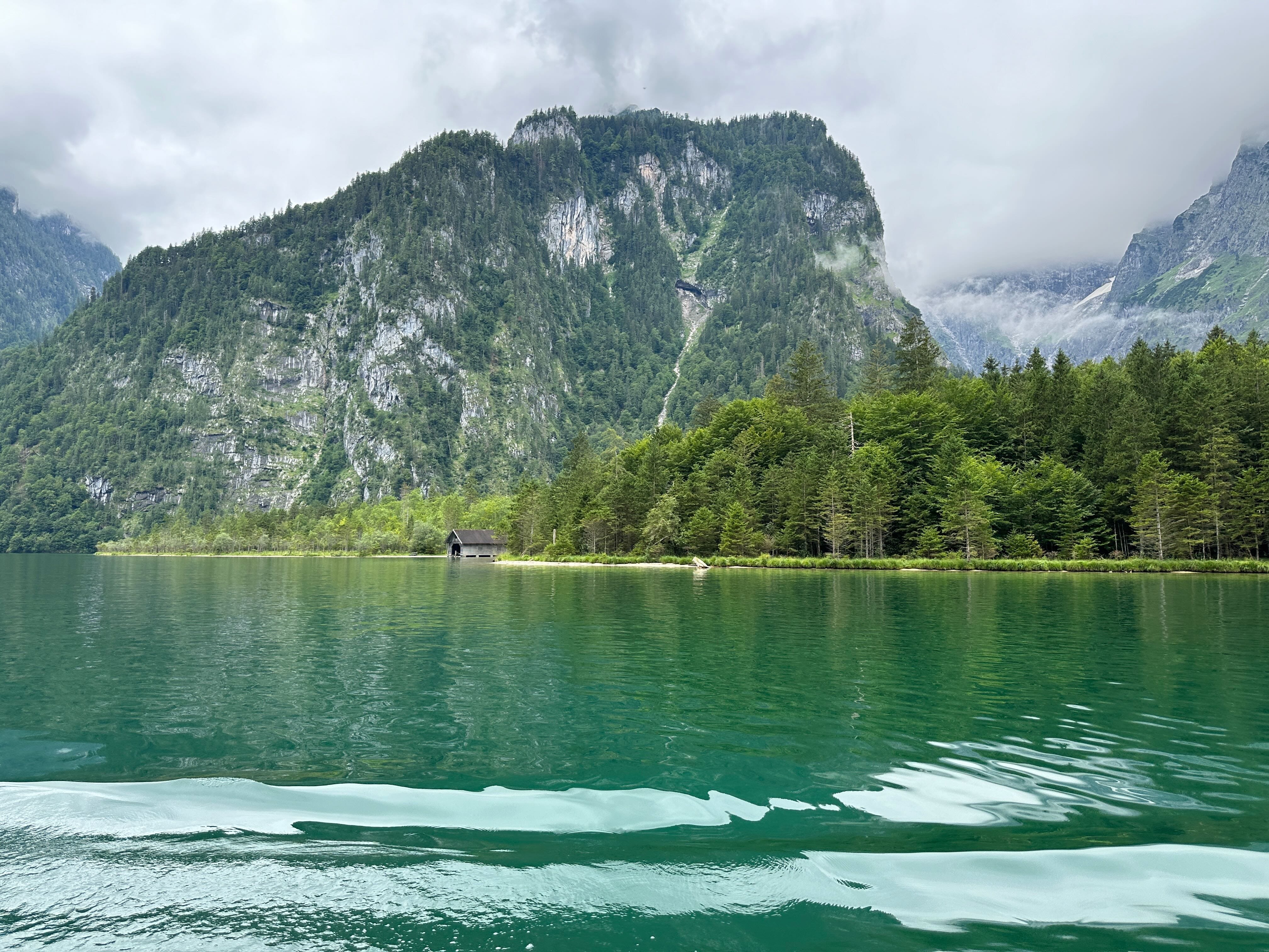 Ce matin, balade en bateau sur le Königssee. Petit moment suspendu lorsque les moteurs s’arrêtent et que le capitaine du bateau vient jouer quelques notes de trompette face à la montagne qui les lui renvoie. Dans ce paysage, sur une eau d’un vert émeraude magnifique et entourés des montagnes, c’est un joli instant de détente. Notre arrêt c’est Salet, 50-55 minutes après l’embarquement.