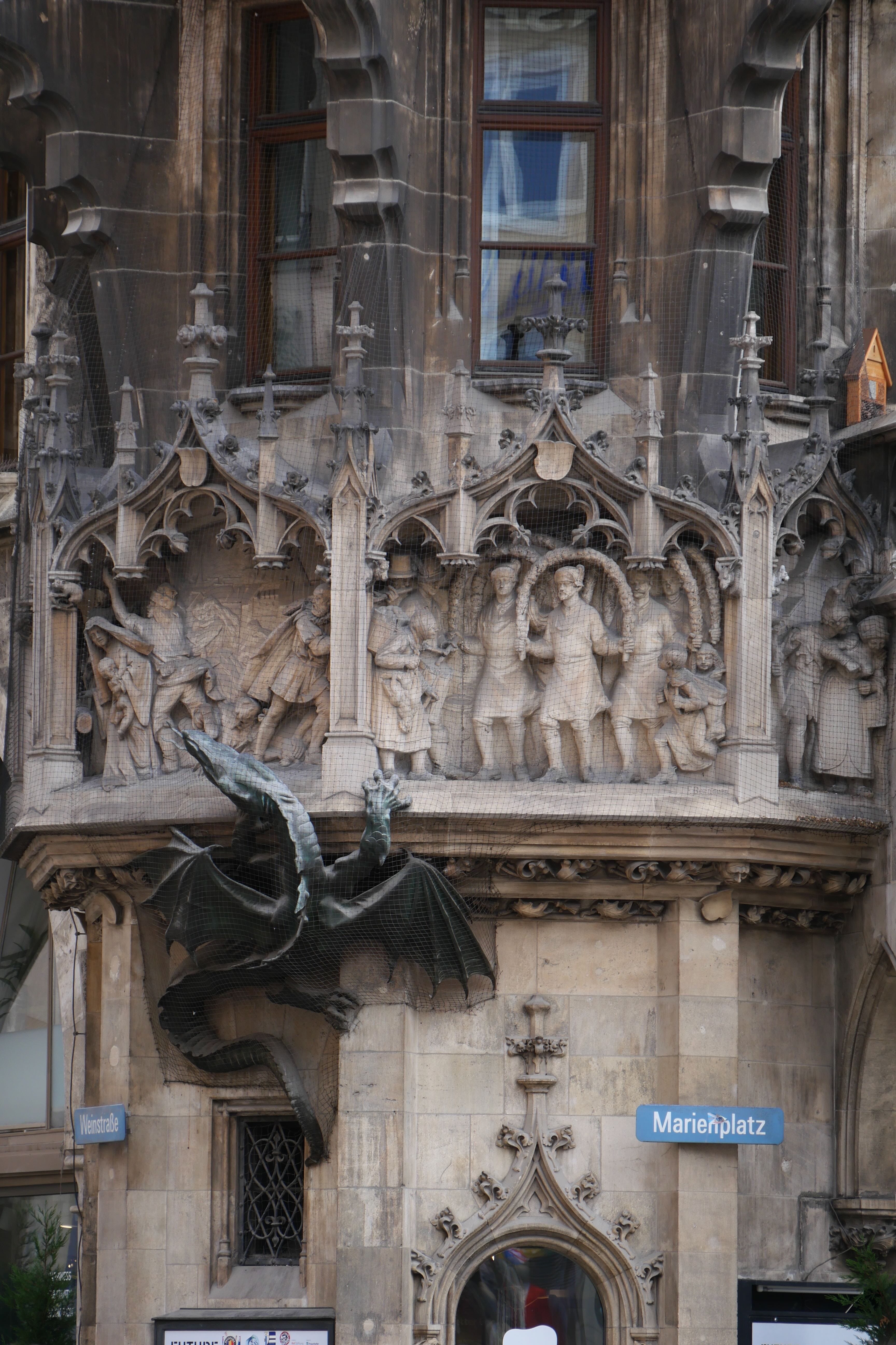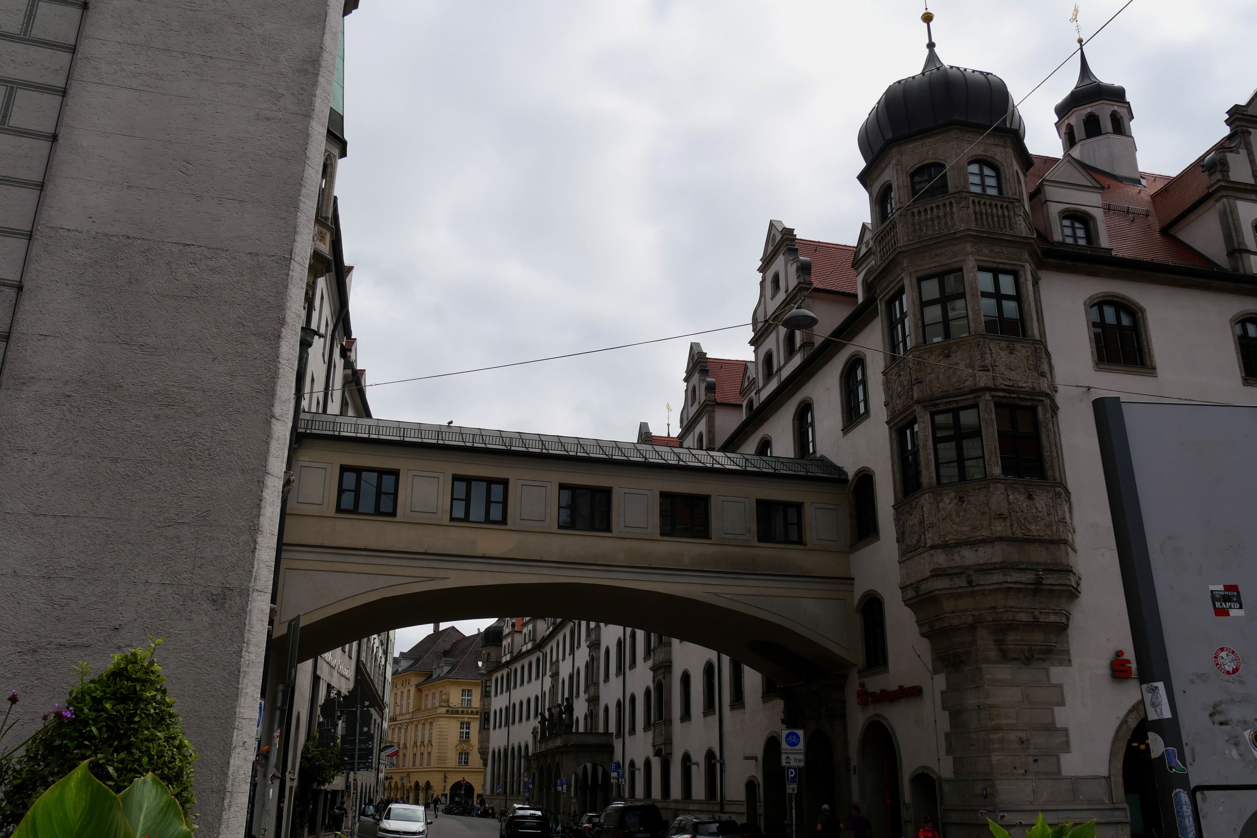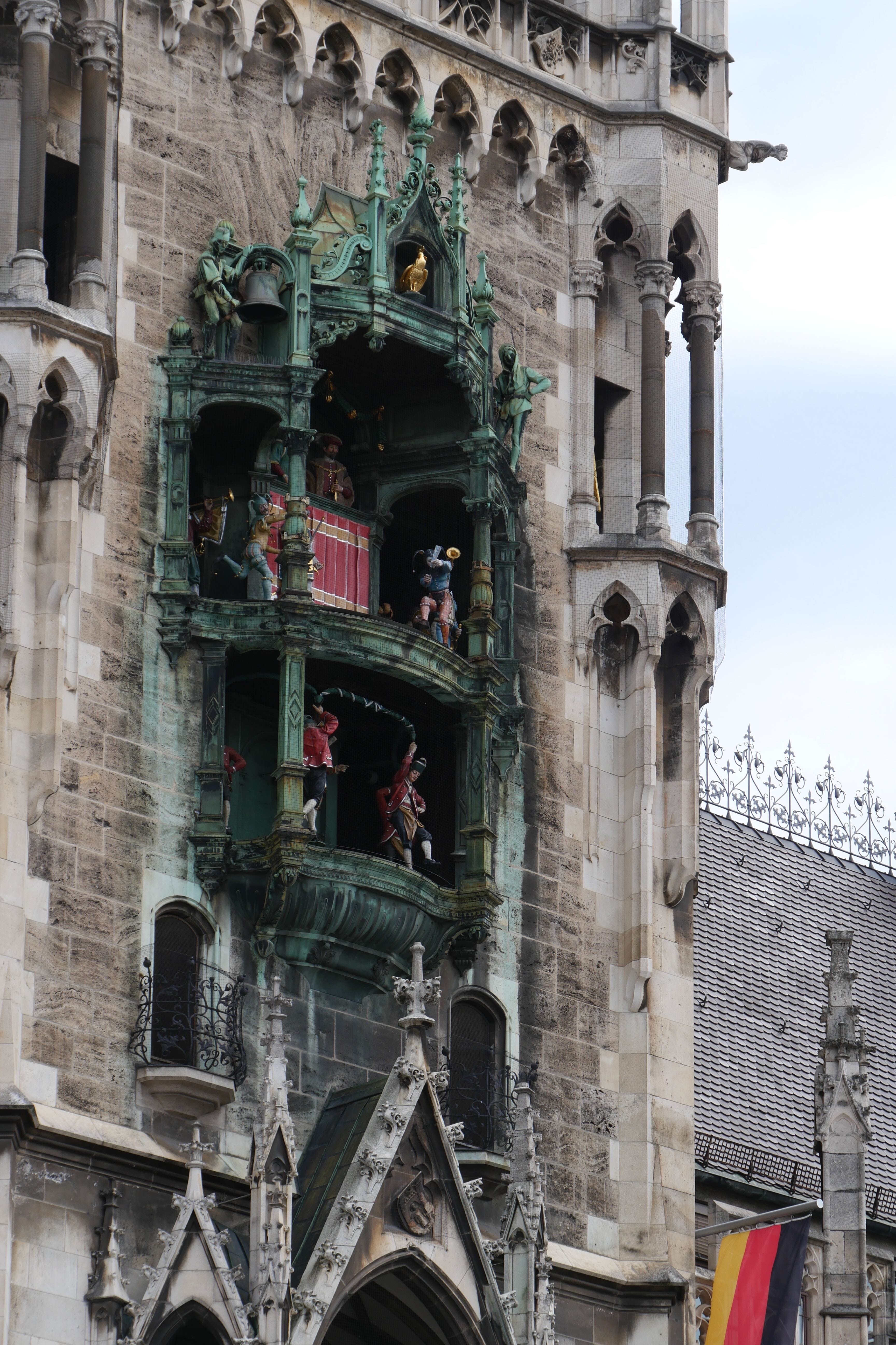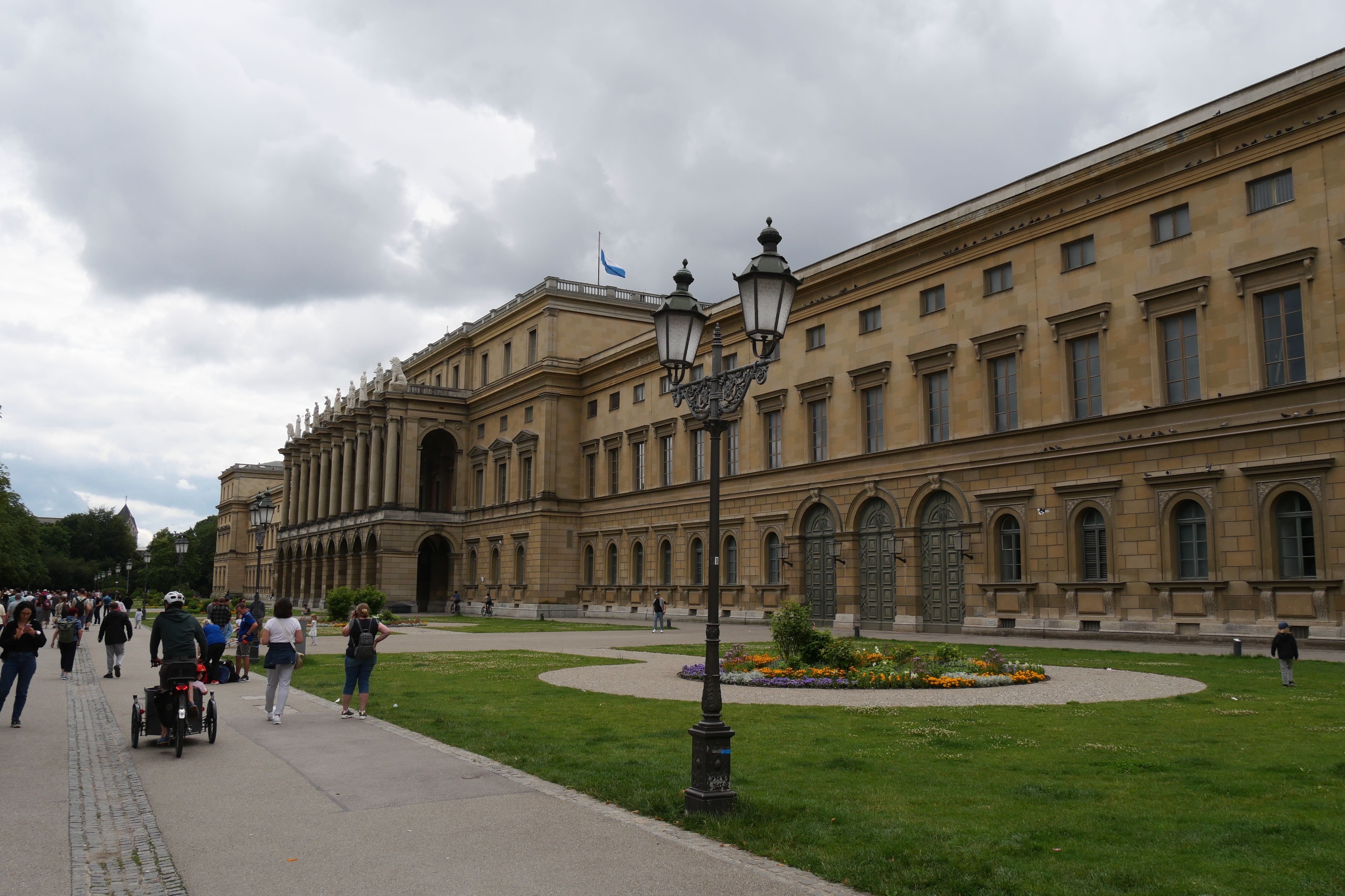 Marienplatz était un peu le point de retour de toutes les visites. On y repassera une seconde fois en direction de Frauenkirschen, église surmontée de deux tours à petite coupole. Après une visite rapide de l’intérieur, retour à Marienplatz encore, en passant à chaque fois par d’autres charmantes rues. Cette fois, on l’admire davantage et on s’attarde devant le Glockenspiel, le carillon qui se met en action tous les jours à 11h et 12h, toute l’année, et à 17h de mars à octobre. Au centre, il nous reste encore à voir Odeonsplatz et la Résidence. La place est occupée ce jour-là par des centaines de chaises, un concert de musique classique se préparant. On admirera tout de même la très jolie église de l’extérieur avant d’aller faire un tour dans Hofgarten.