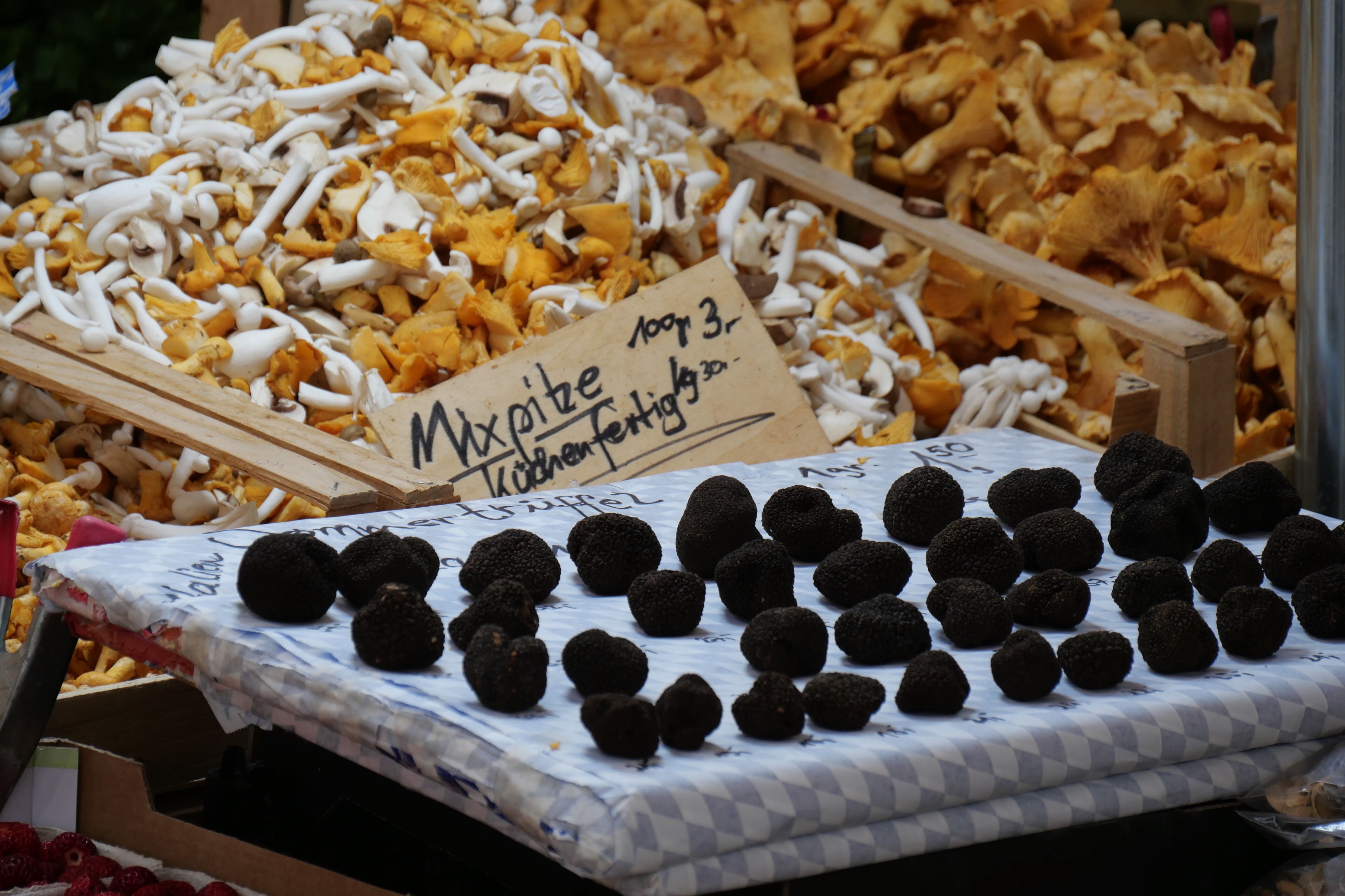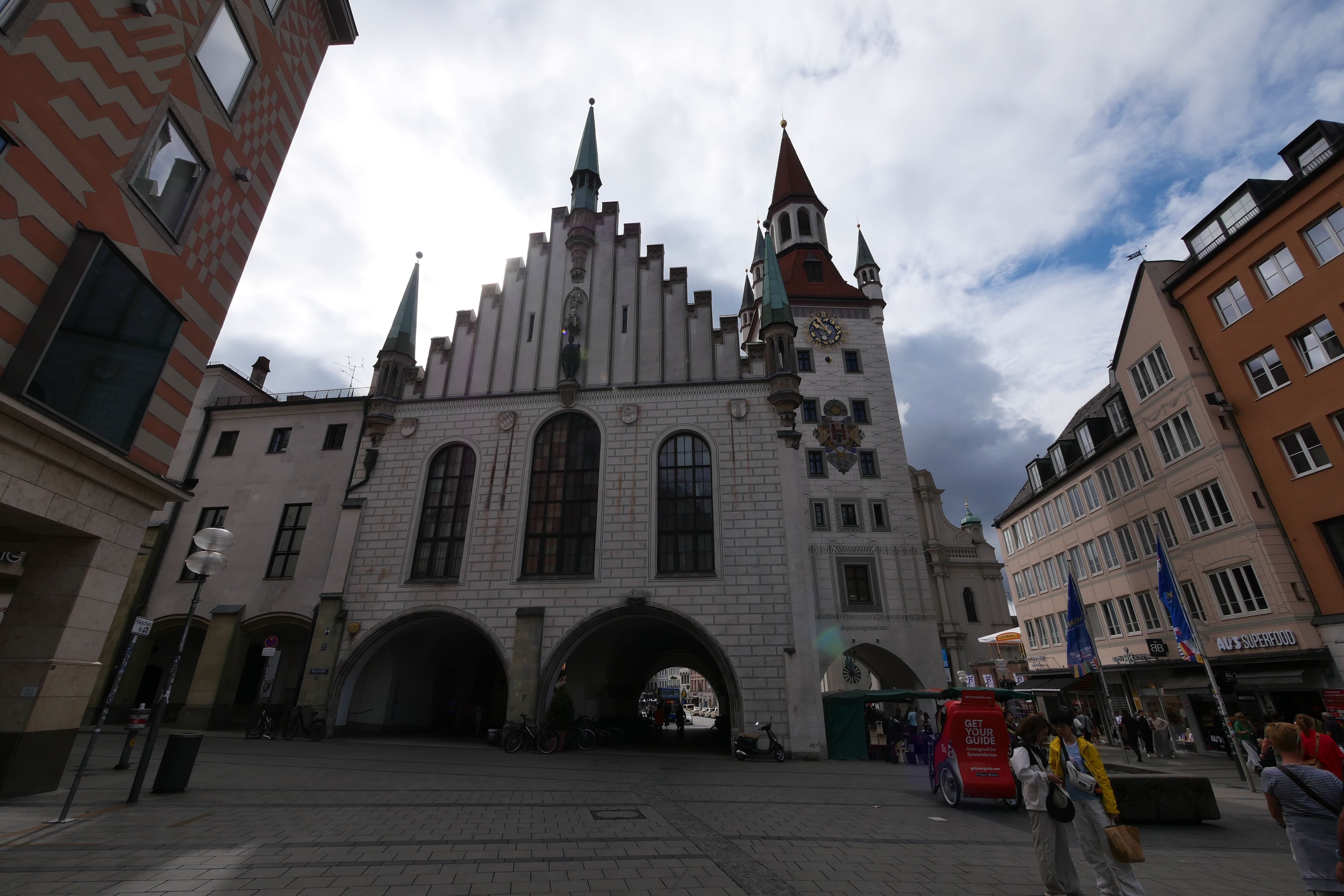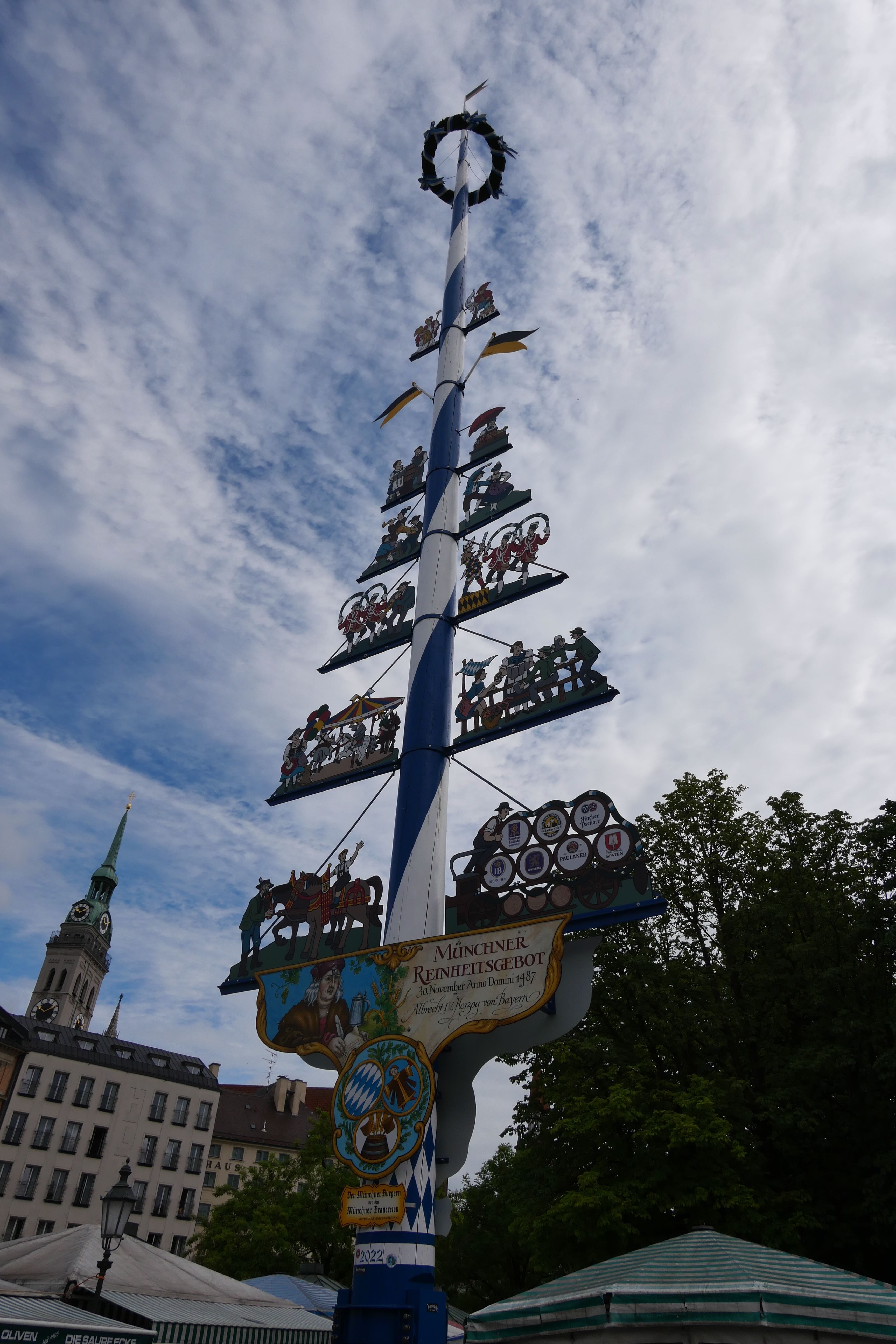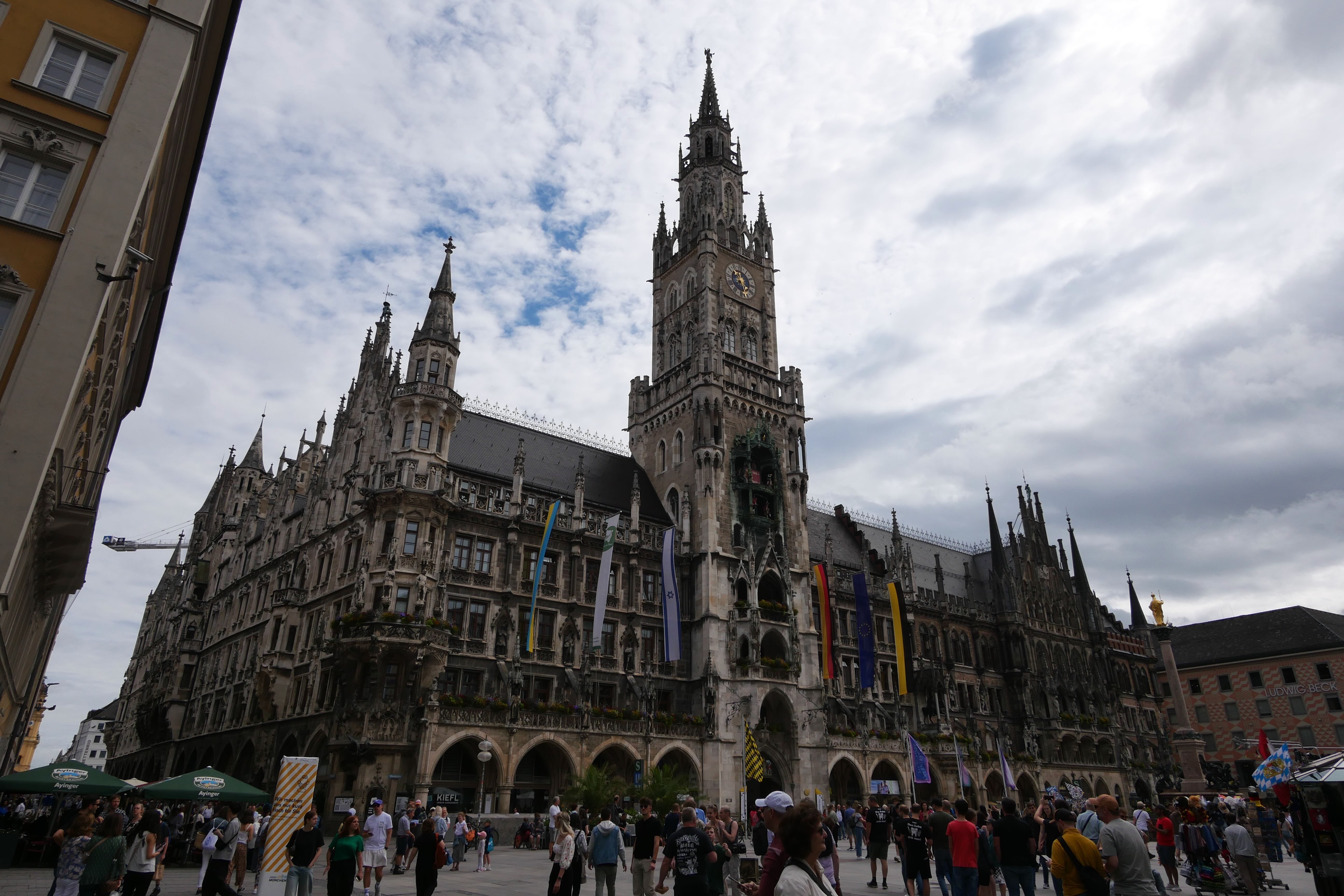Le lendemain matin, nous partons donc à la découverte de Munich. Nous prenons le petit-déjeuner dans une boulangerie à quelques pas de notre hôtel pour 12€ (au lieu de 32€ à l’hôtel). C’était bon et bien suffisant. On reprend ensuite le métro pour retourner déposer nos affaires à la voiture et partir ensuite plus légers pour visiter les principaux points d’intérêt. Nous commençons par Marienplatz où on en prend direct plein les yeux avec les ancien et nouvel Hôtel de Ville. On ne s’attarde pas trop car on y reviendra après. On prend alors la direction de Viktualienmarkt, à quelques dizaines de mètres de là, pour découvrir les stands à ciel ouvert de fruits et légumes mais aussi de divers objets artisanaux et même une terrasse, en plein milieu, où certains sont déjà à la bière et à la saucisse à 10h du matin, servis par des Bavaroises en tenue traditionnelle.
