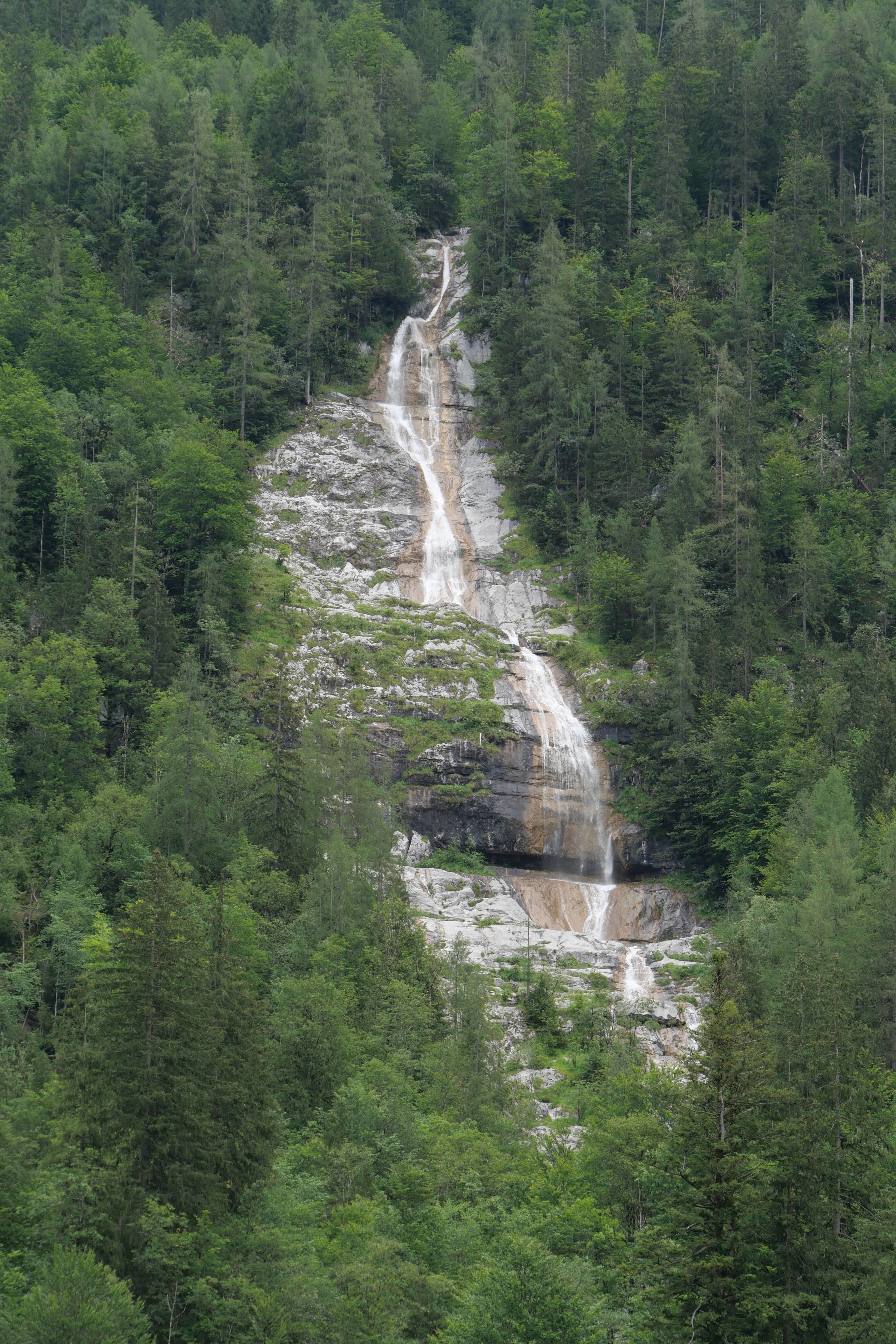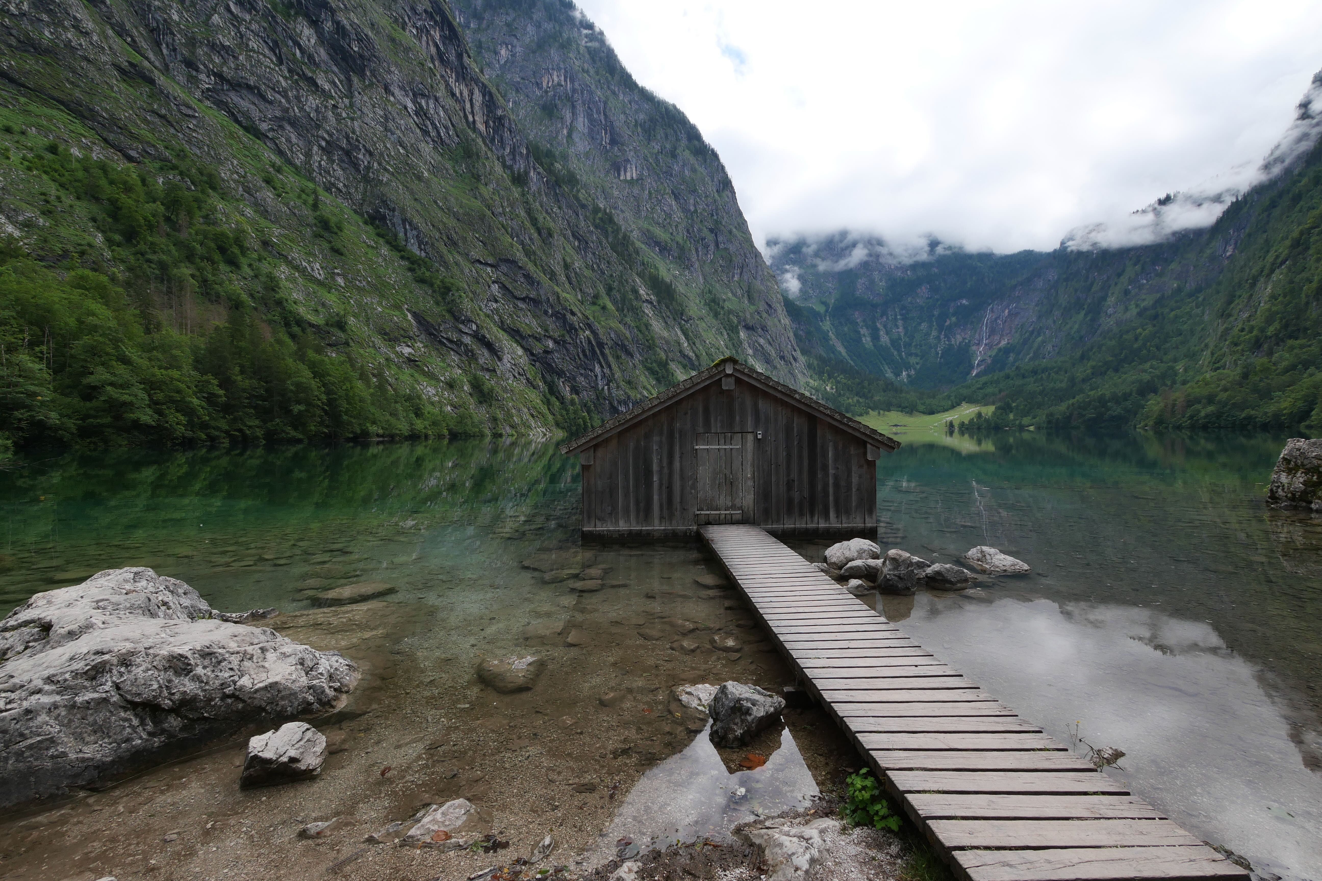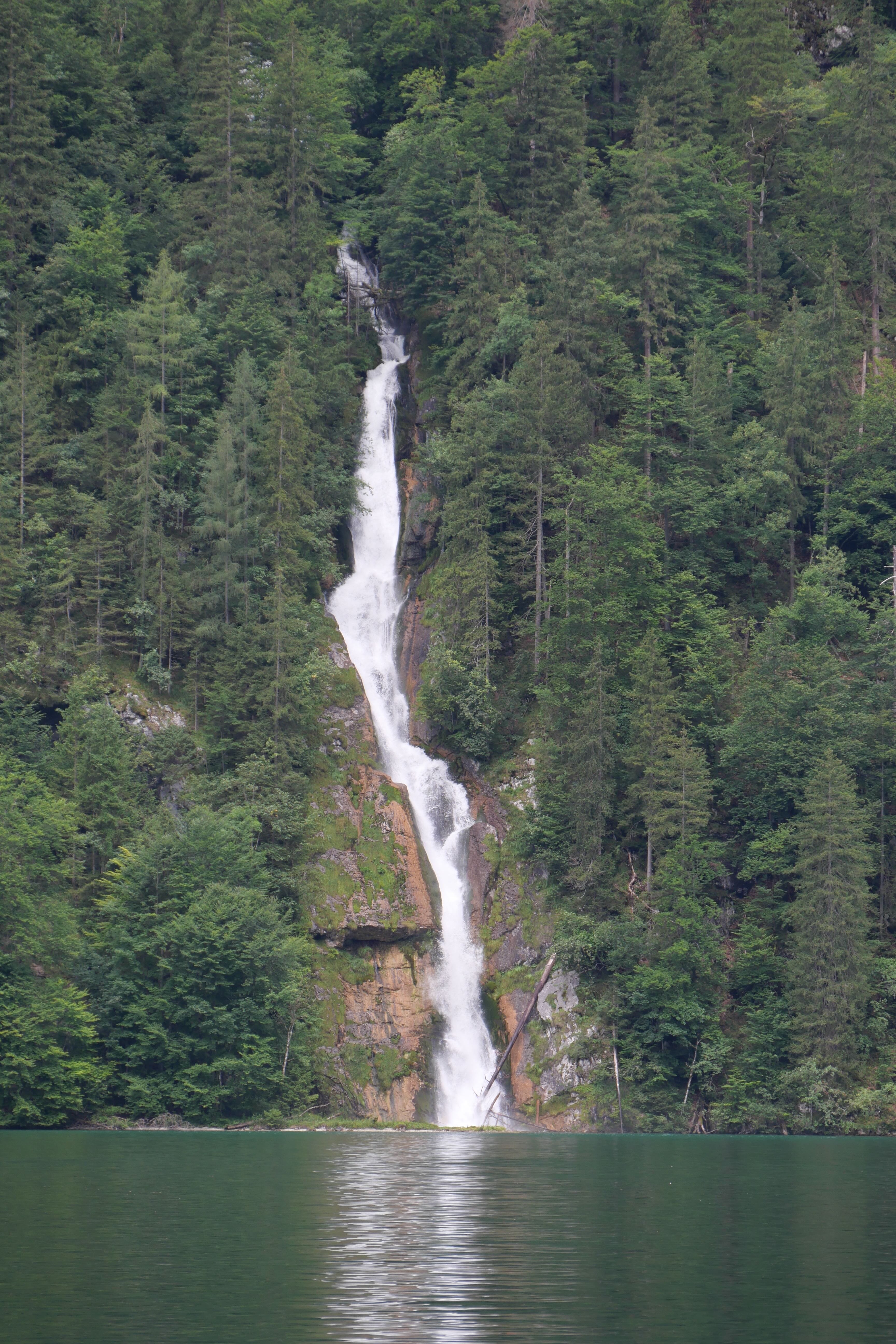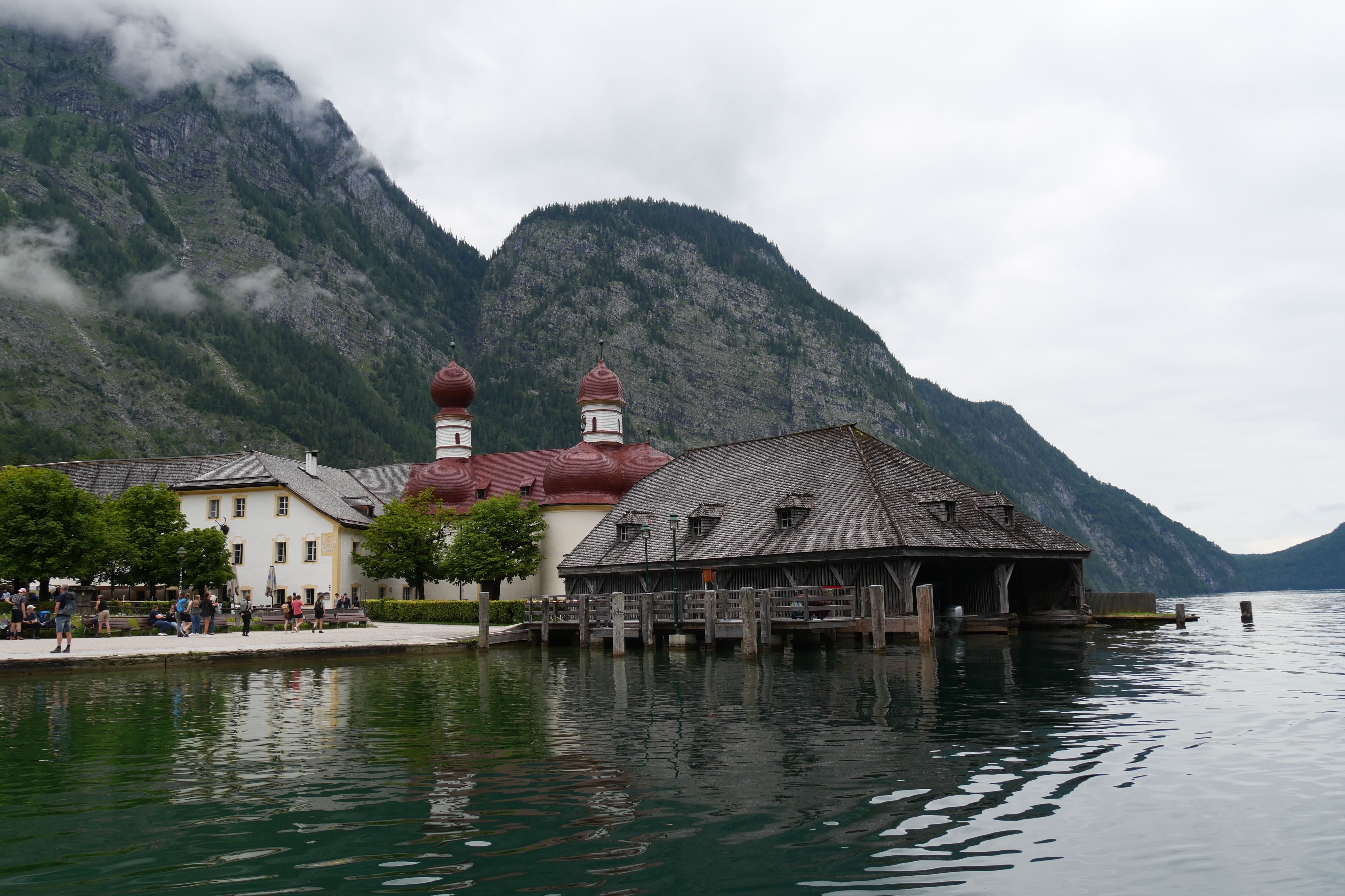 Au débarcadère, on prend le chemin nous menant à un autre petit lac : Obersee. Après une vingtaine de minutes apparaît un ponton devant une petite cabane de pêcheur sur le lac et en arrière-plan une immense cascade. Quel magnifique paysage! On s’attarde le temps de prendre quelques photos puis par manque de temps pour longer le lac, on refait le trajet en sens inverse pour reprendre le bateau et s’arrêter au retour sur l’îlot abritant l’église St Bartholomä et y prendre notre pique-nique tout en profitant de la vue. L’église ne présente pas un grand intérêt mis à part l’architecture de sa toiture que vous pouvez admirer depuis le bateau. C’est un arrêt dispensable en cas de manque de temps, si jamais. Retour enfin au point de départ pour reprendre la route et atteindre le pays objectif principal de ces vacances : la Croatie.