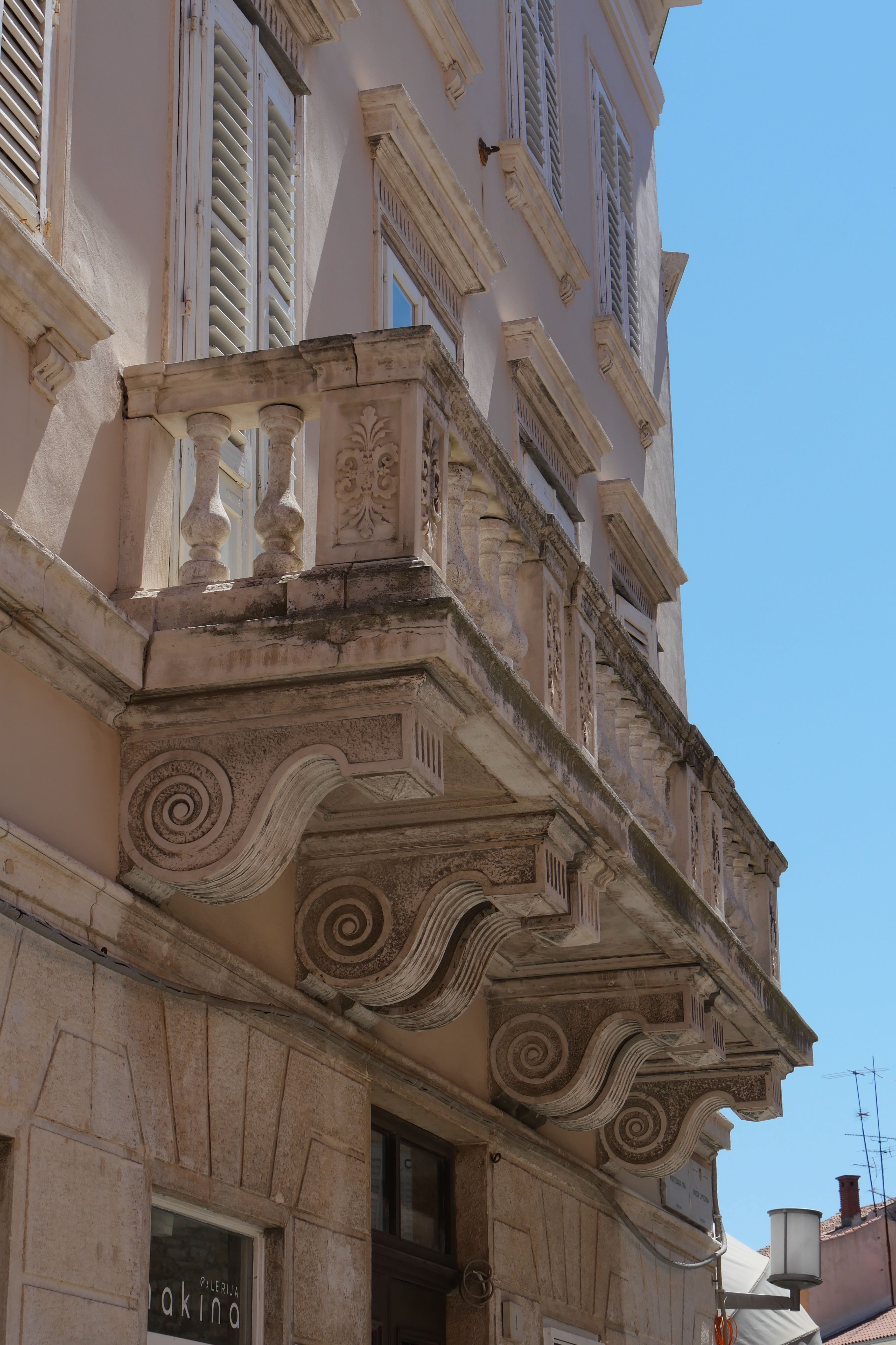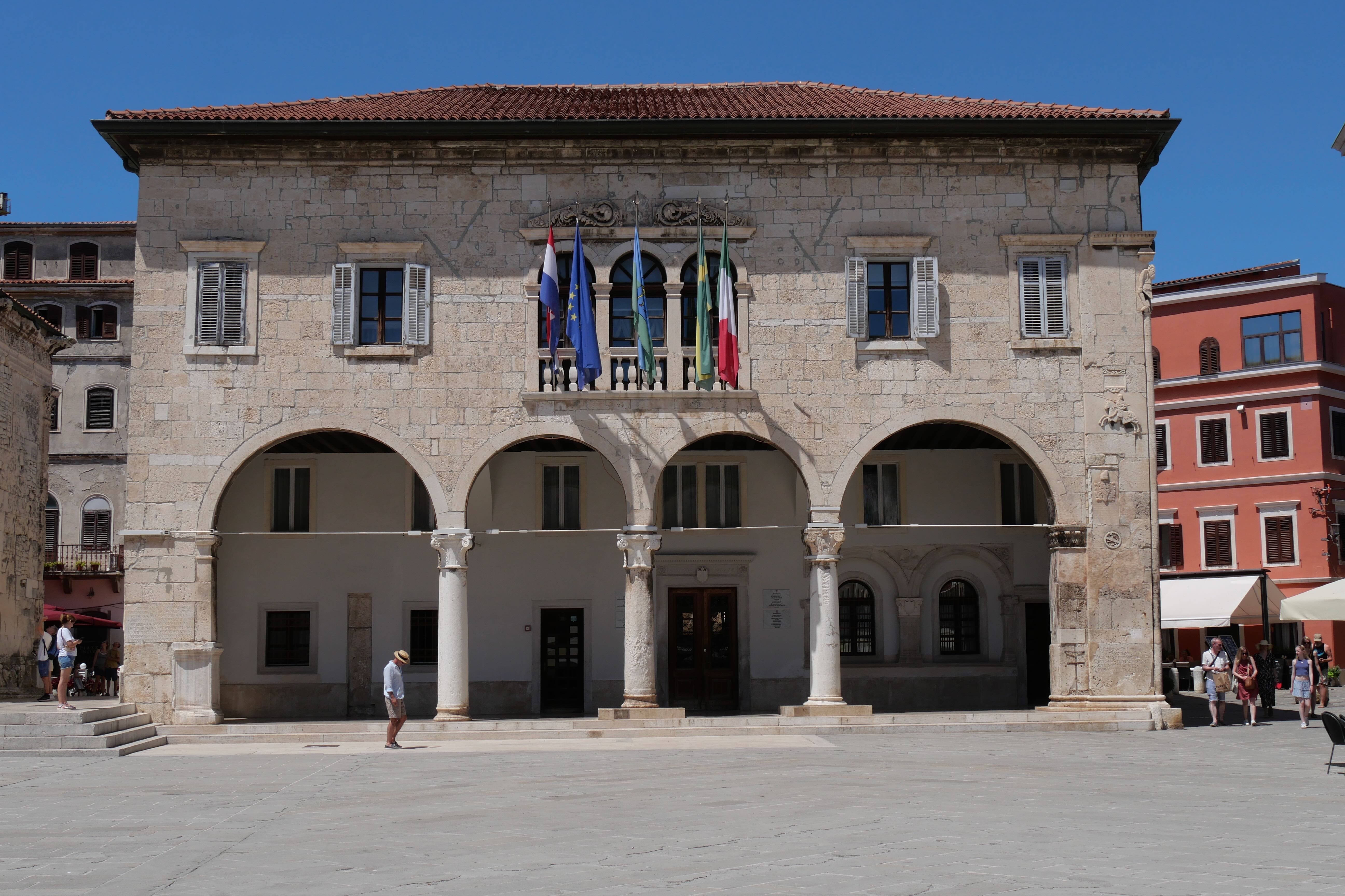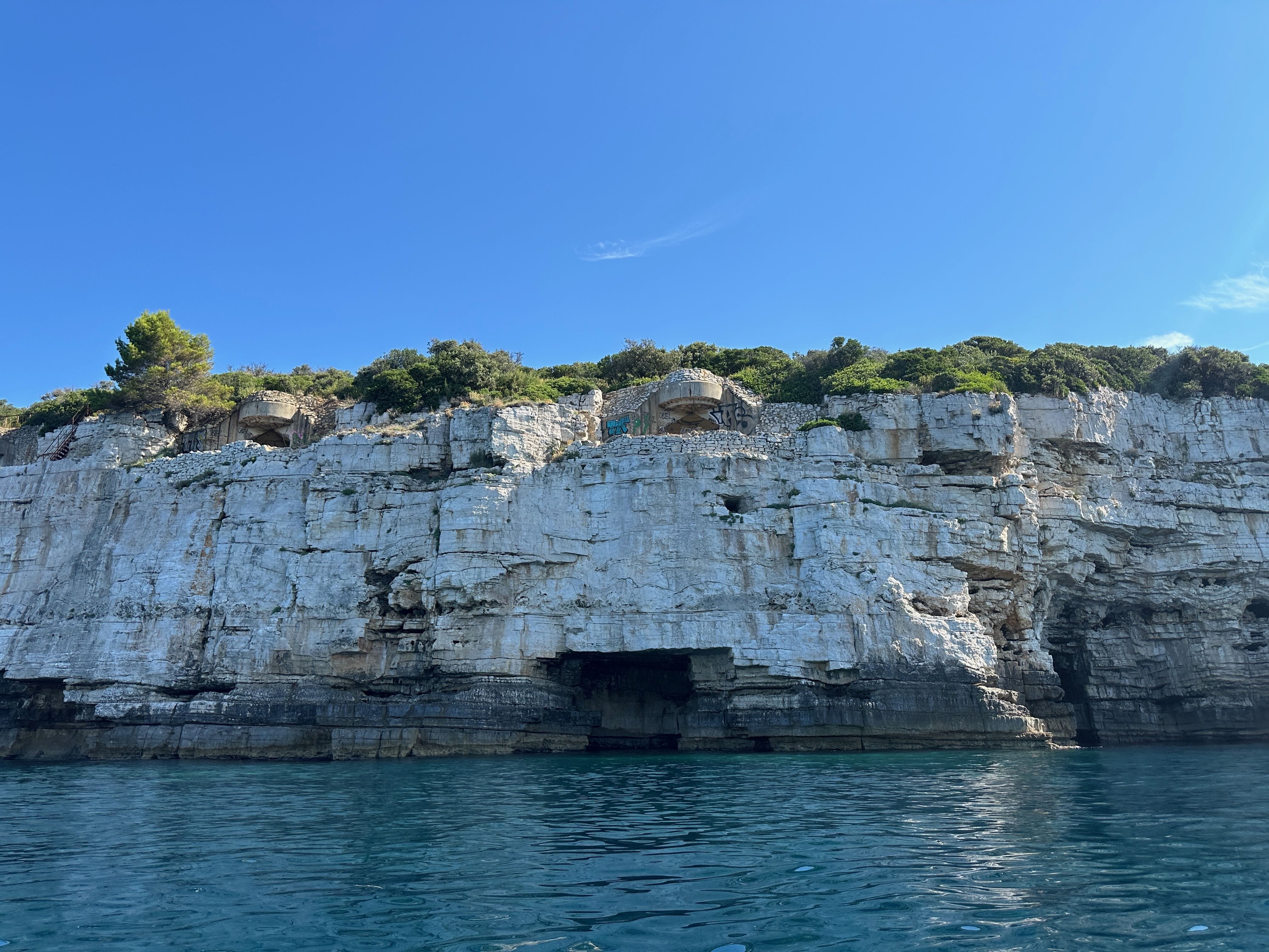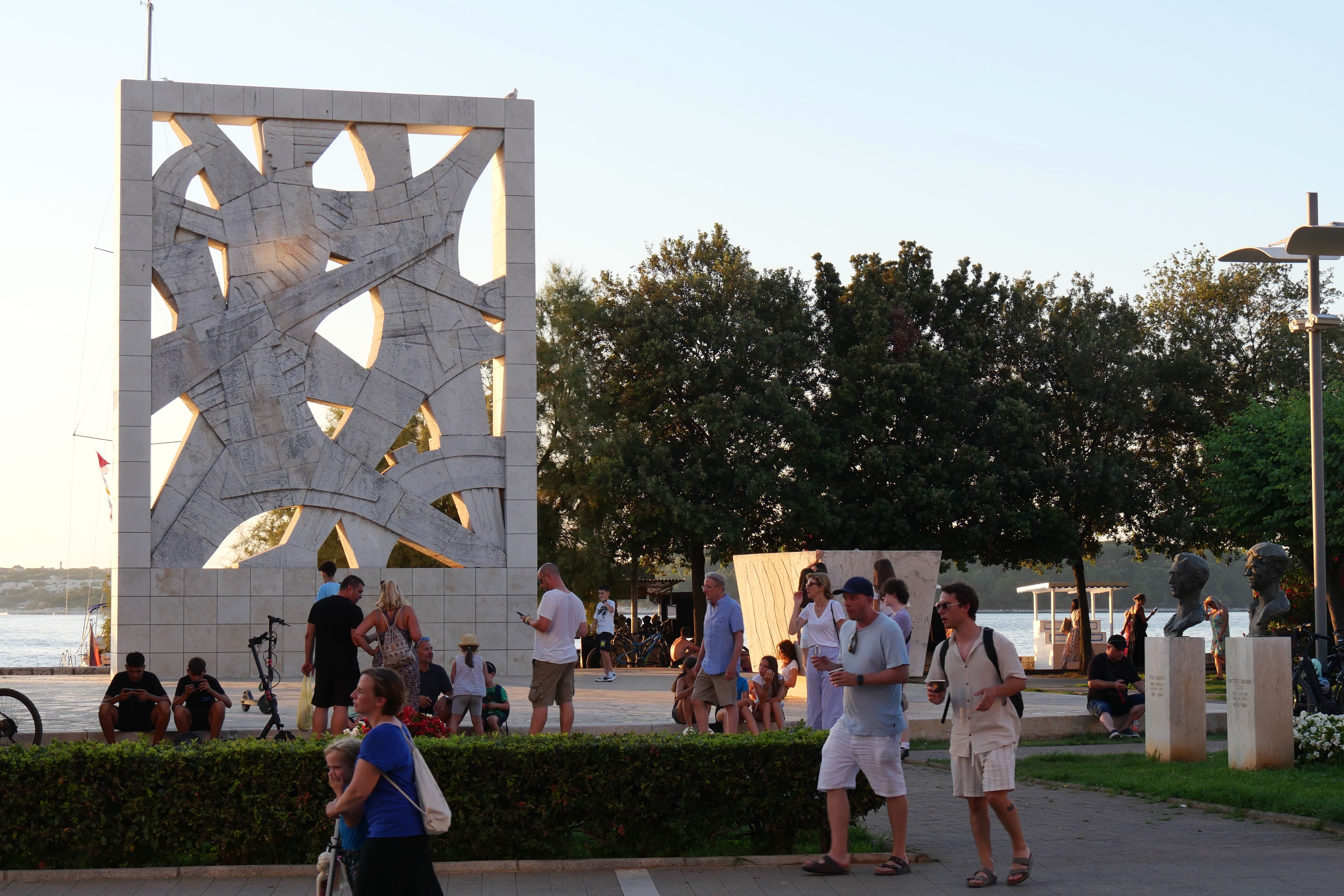 Deuxième partie de Pula, après les falaises, le centre historique. On trouvera une place sur un parking un peu particulier du nom de Emova mais on appréciera son petit prix de 2€ pour 4h (que l’on règlera grâce à l’app Bmove qui nous aura aidé plus d’une fois pendant le séjour). On n’y passera finalement pas autant de temps, la chaleur étant écrasante à ce moment de la journée. On ira droit aux essentiels. D’abord, l’amphithéâtre, à quelques minutes à peine du parking. C’est un vestige romain magnifiquement conservé. Sa situation dans la ville fait qu’il est possible de très bien voir l’intérieur à travers ses arches et cela en rend la visite, à 10€ par personne, pas forcément nécessaire. On préférera utiliser cet argent à bon escient dans les glaces de chez aROMA. On grimpe (oui ça monte un peu) ensuite vers la citadelle pour prendre un peu de hauteur sur la ville. On en évitera à nouveau la visite, encore une fois, la chaleur ne nous donne pas envie de nous éterniser. Après la descente, on se dirige vers la place du forum où se trouvent le temple d’Auguste, édifié au début du Ier siècle (probablement du vivant de ce dernier), et le bâtiment communal, qui lui a été construit à la toute fin du XIIIe siècle et dans lequel a été incorporé l’arrière d’un autre temple, celui de Diane, n’ayant pas survécu à l’assaut des années. Dernier point d’intérêt à passer (d’après les informations glanées ça et là), l’Arc des Sergii, un arc de triomphe commémorant trois frères et ayant été construit probablement vers 29-27 avant JC.