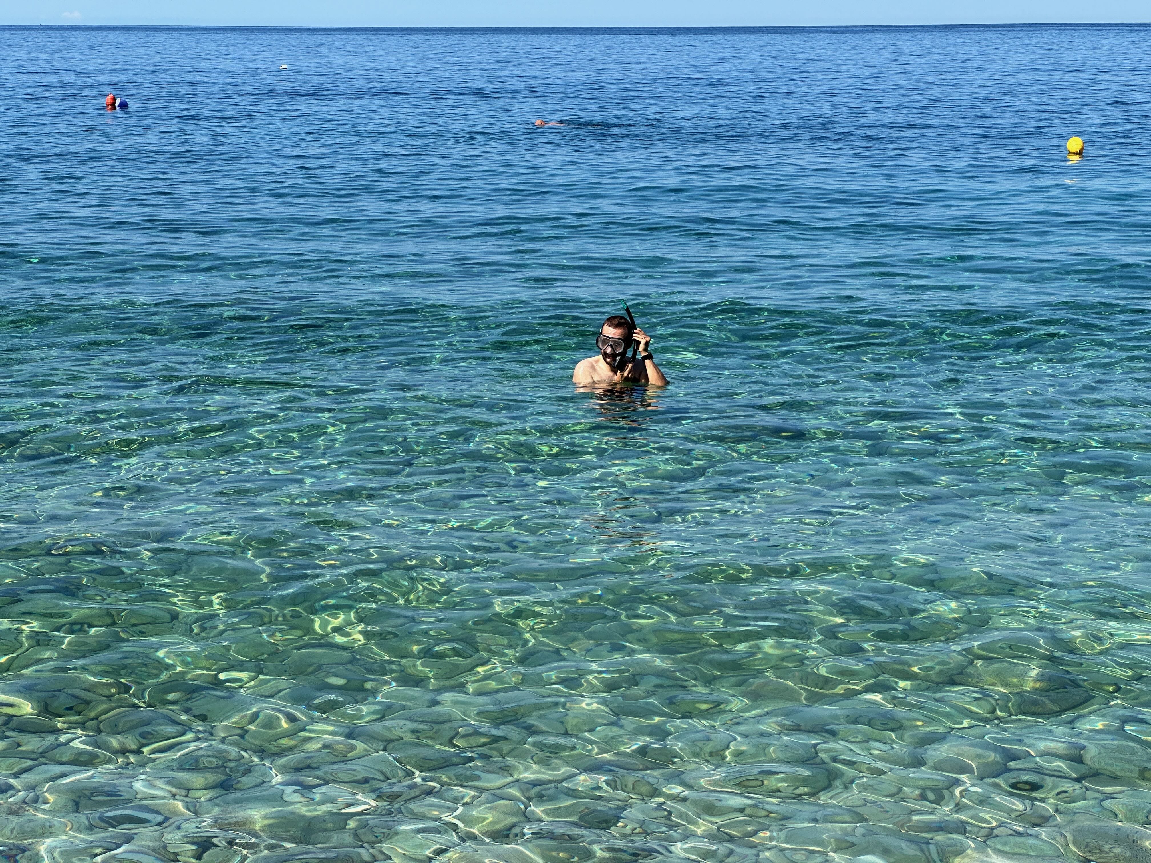 Sur la route du retour, on décide de s’arrêter à Cuvi Beach pour une baignade et un test du masque de snorkeling nouvellement acheté après qu’Il se soit découvert une nouvelle passion. L’endroit au milieu d’une pinède est agréable (pensez à avoir 1€ pour participer à l’entretien des toilettes et de la douche) même si on regrettera que la qualité de l’eau ne soit pas égale à celle du matin.